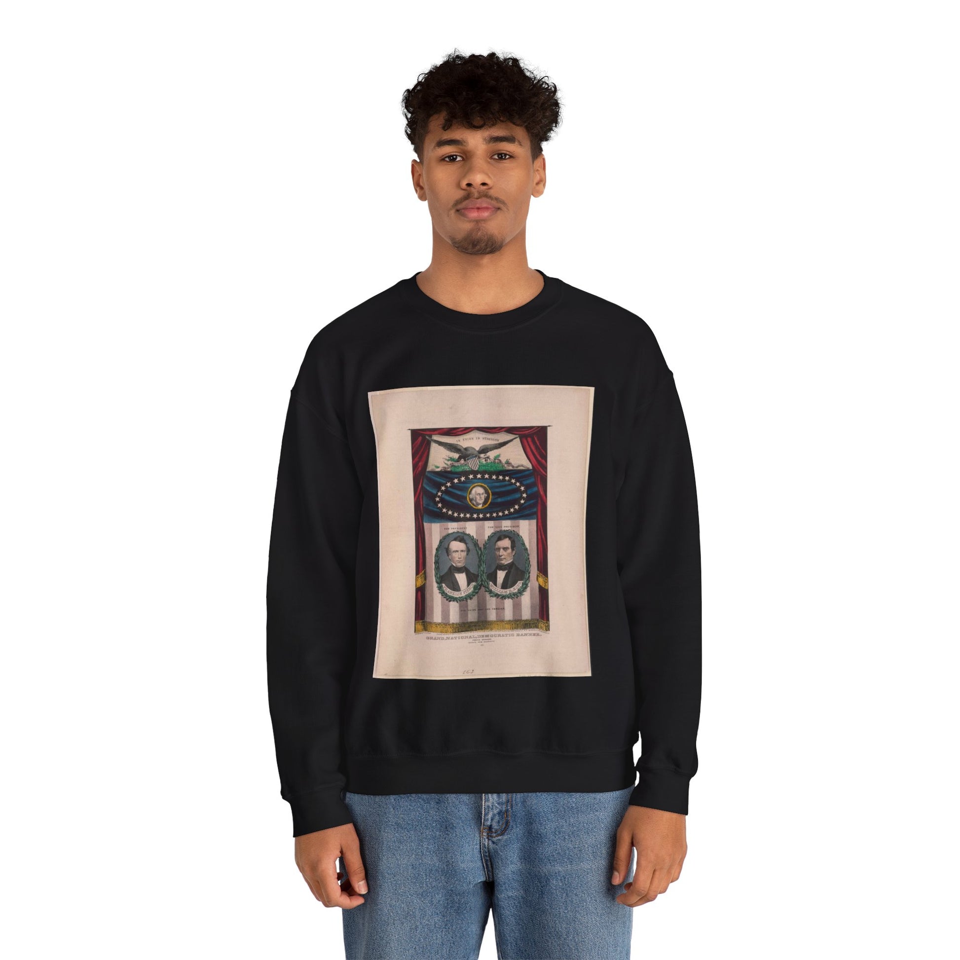 Grand, national, democratic banner - press onward - portraits from daguerreotype / lith. & pub. by N. Currier. Black Heavy Blend Adult Crew Neck SweatShirt