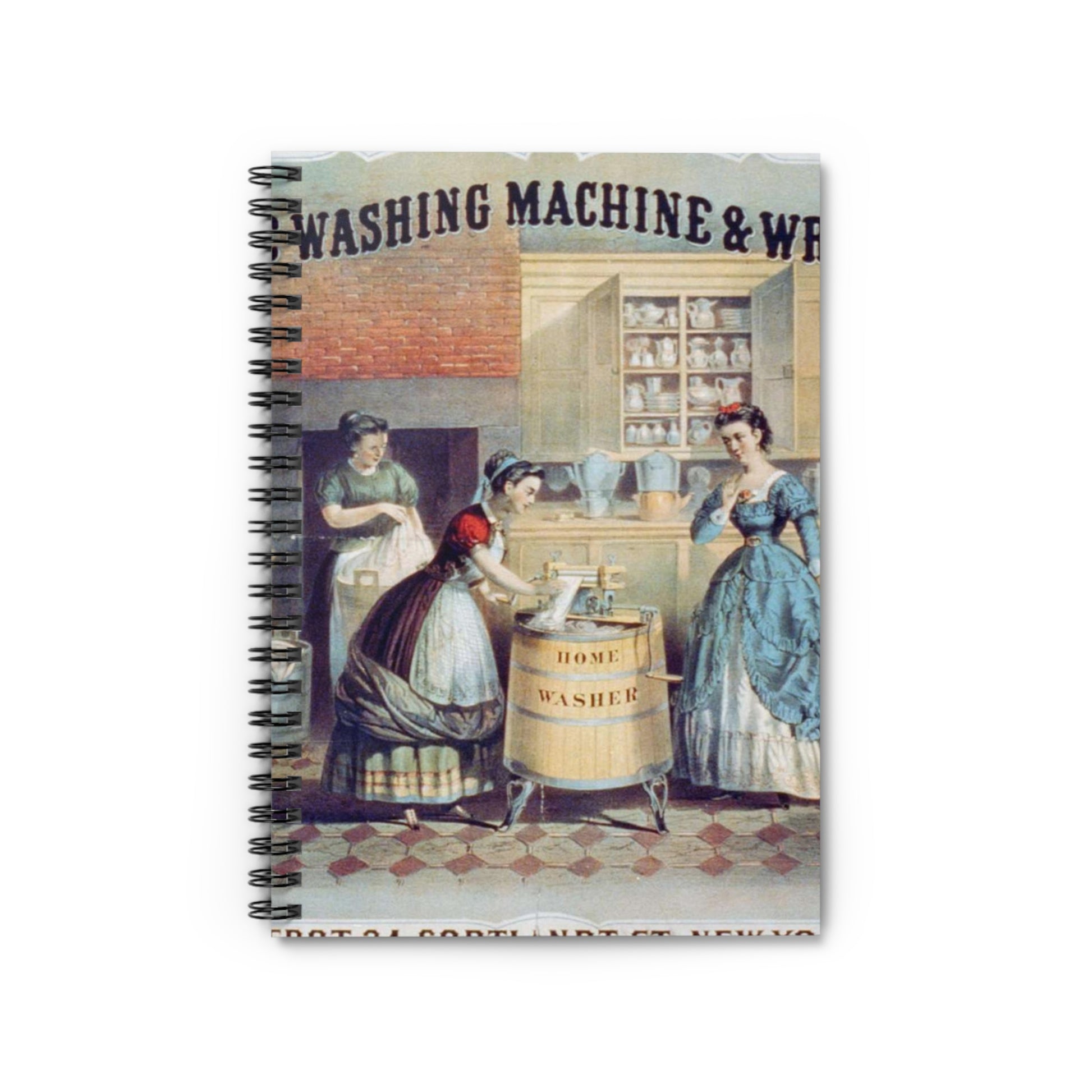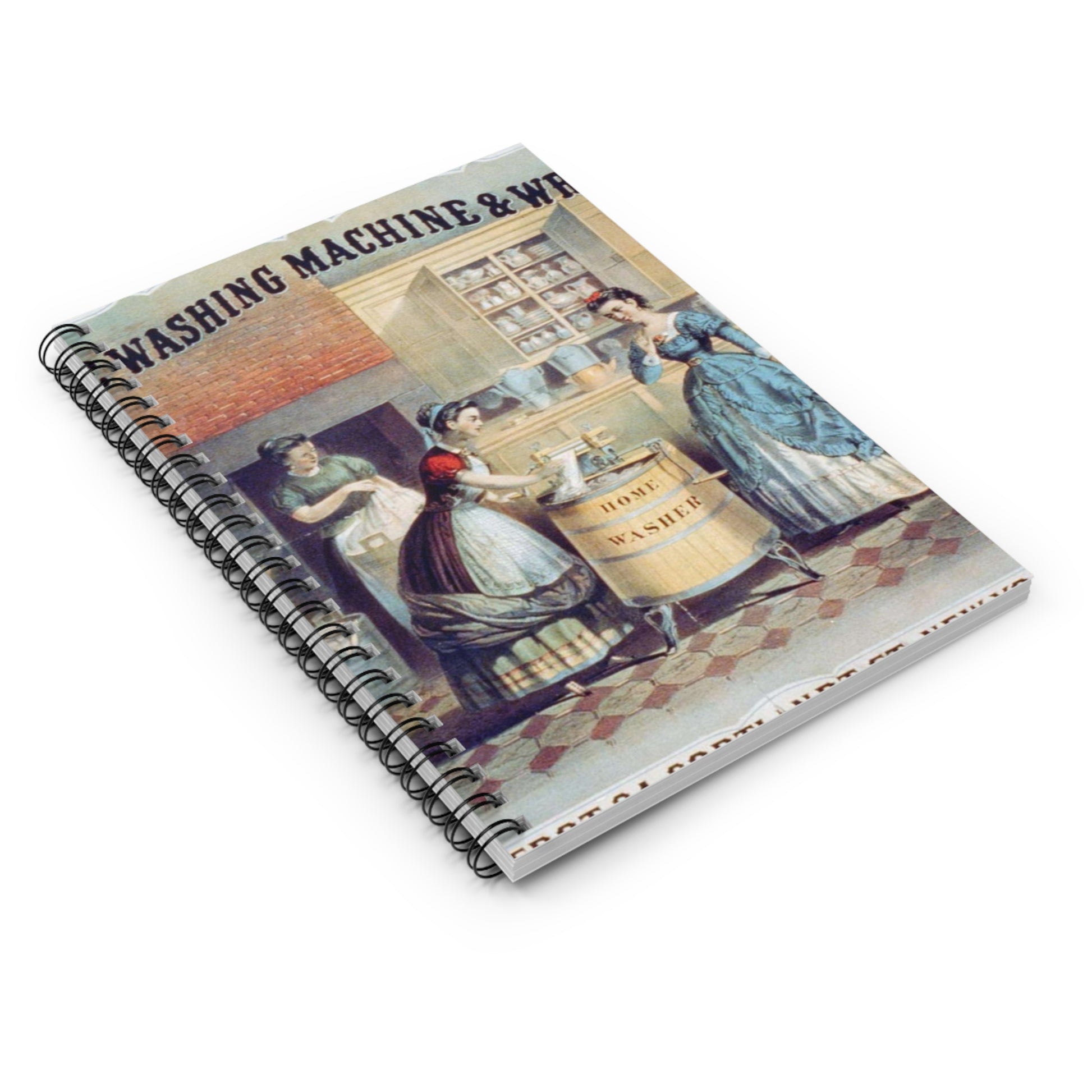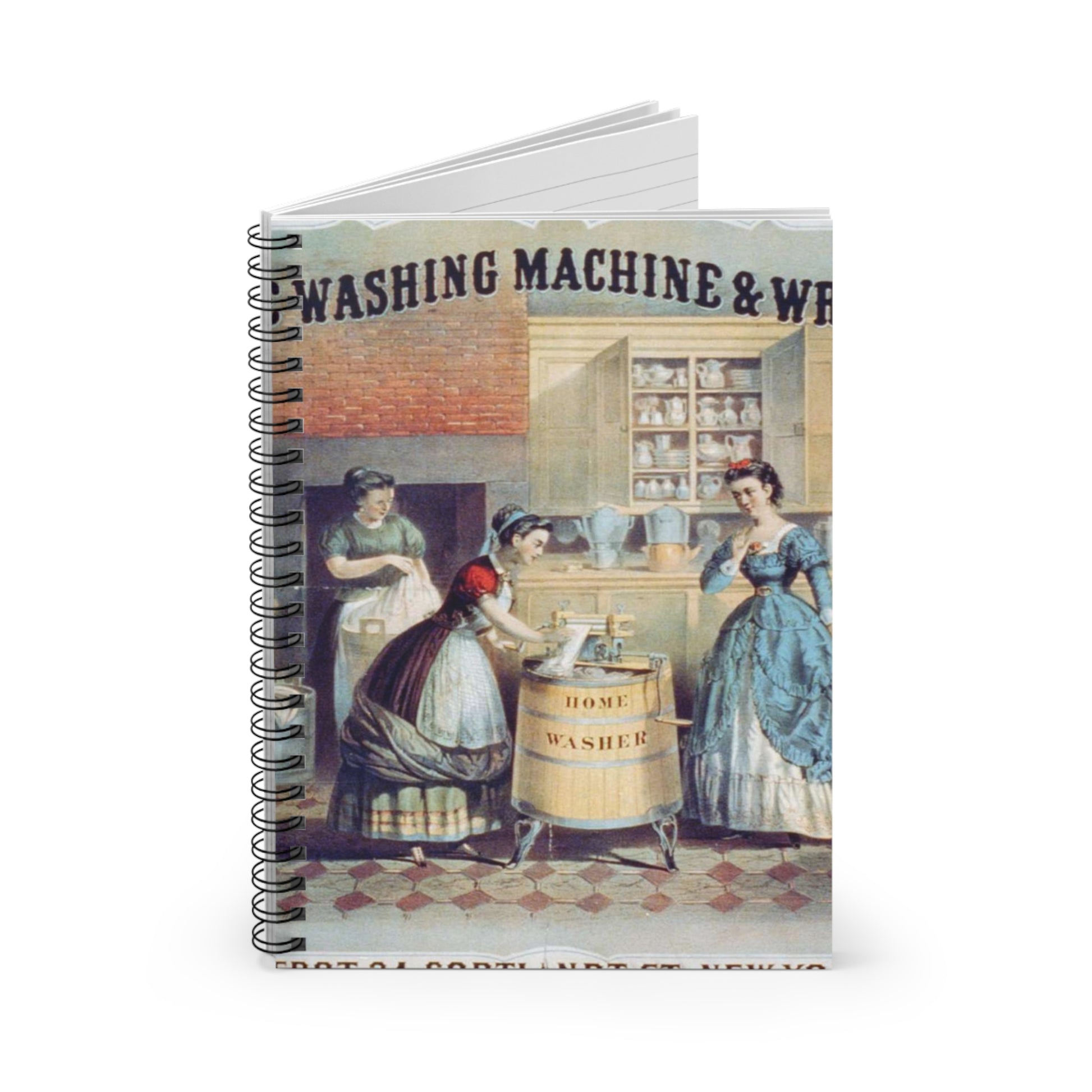 Home washing machine & wringer - A painting of women washing machines in a kitchen Spiral Bound Ruled Notebook with Printed Cover