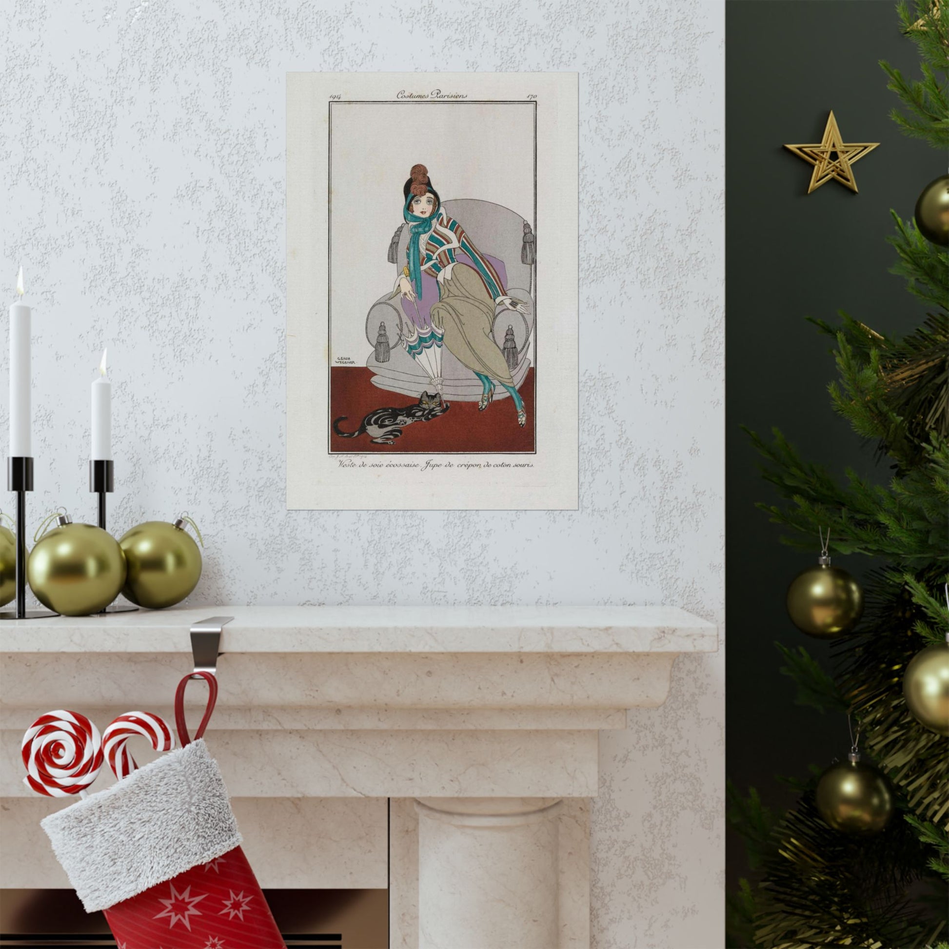 Jacket and skirt (Veste de soie écossaise. Jupe de crépon de coton souris) (CBL WEp 0946) High Quality Matte Wall Art Poster for Home, Office, Classroom