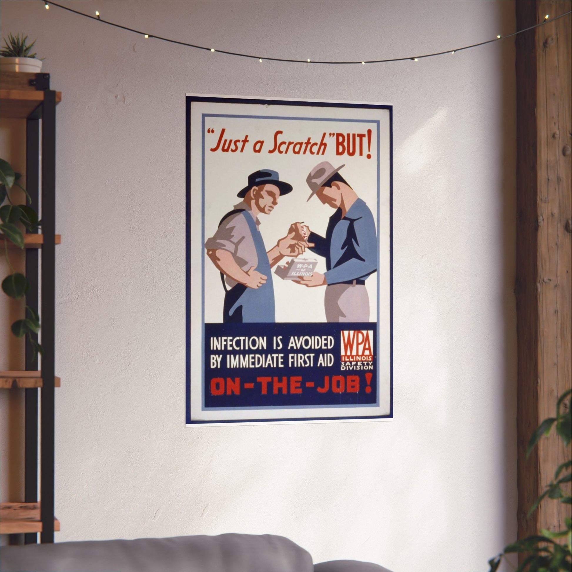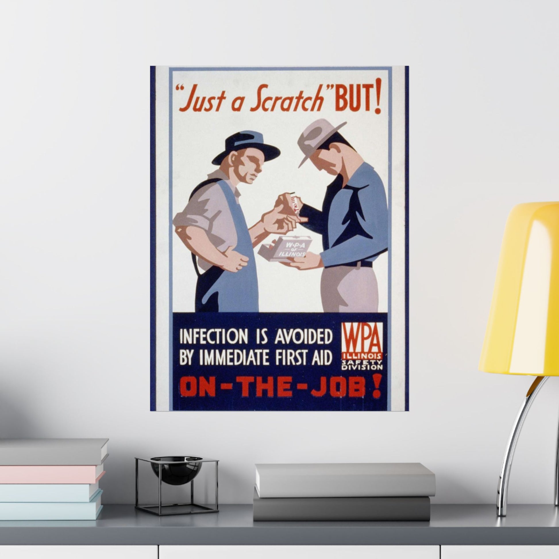 "Just a scratch" But! Infection is avoided by immediate first aid on-the-job! High Quality Matte Wall Art Poster for Home, Office, Classroom