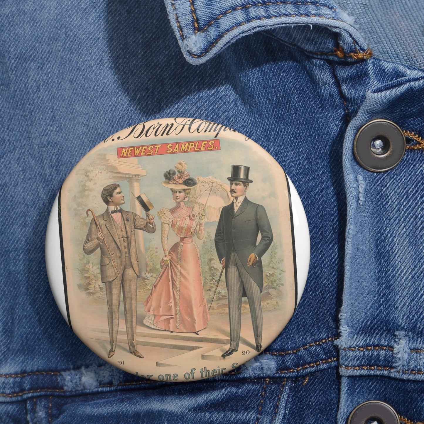 Just received, M. Born & Company's newest samples, order one of their suits, and be in style, you need not take it, if it does not please you Pin Buttons with Crisp Design