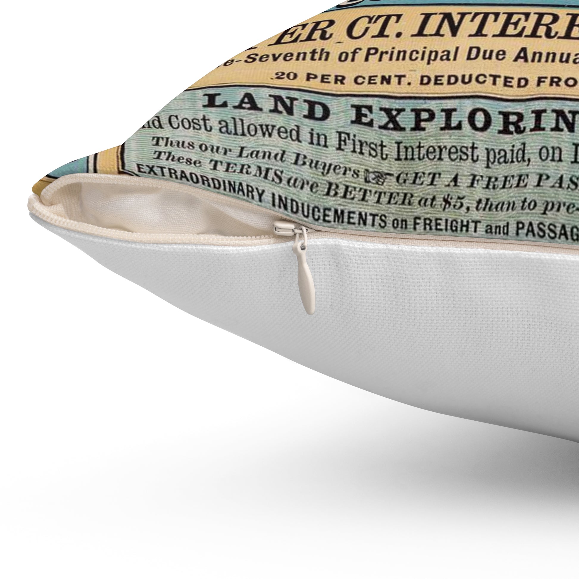 Millions of acres. Iowa and Nebraska. Land for sale on 10 years credit by the Burlington & Missouri River R. R. Co. at 6 per ct interest and low prices ... Buffalo. N. Y. Commercial advertiser printing house [1872]. Decorative Accent Square Pillow