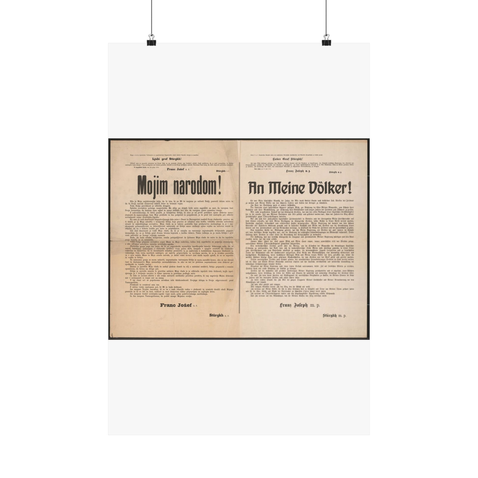 Mojim narodom! | An Meine Völker! - Schreiben von Kaiser Franz Joseph - Kriegserklärung - Mehrsprachiges Plakat High Quality Matte Wall Art Poster for Home, Office, Classroom
