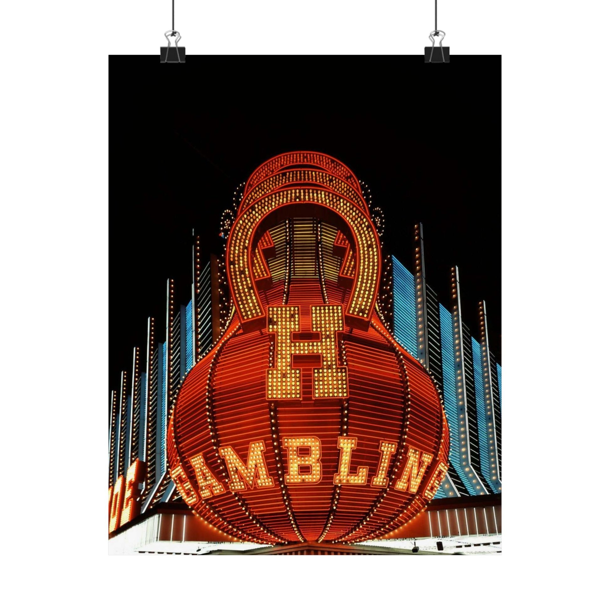 Neon sign at the Horseshoe Casino, Las Vegas, Nevada High Quality Matte Wall Art Poster for Home, Office, Classroom