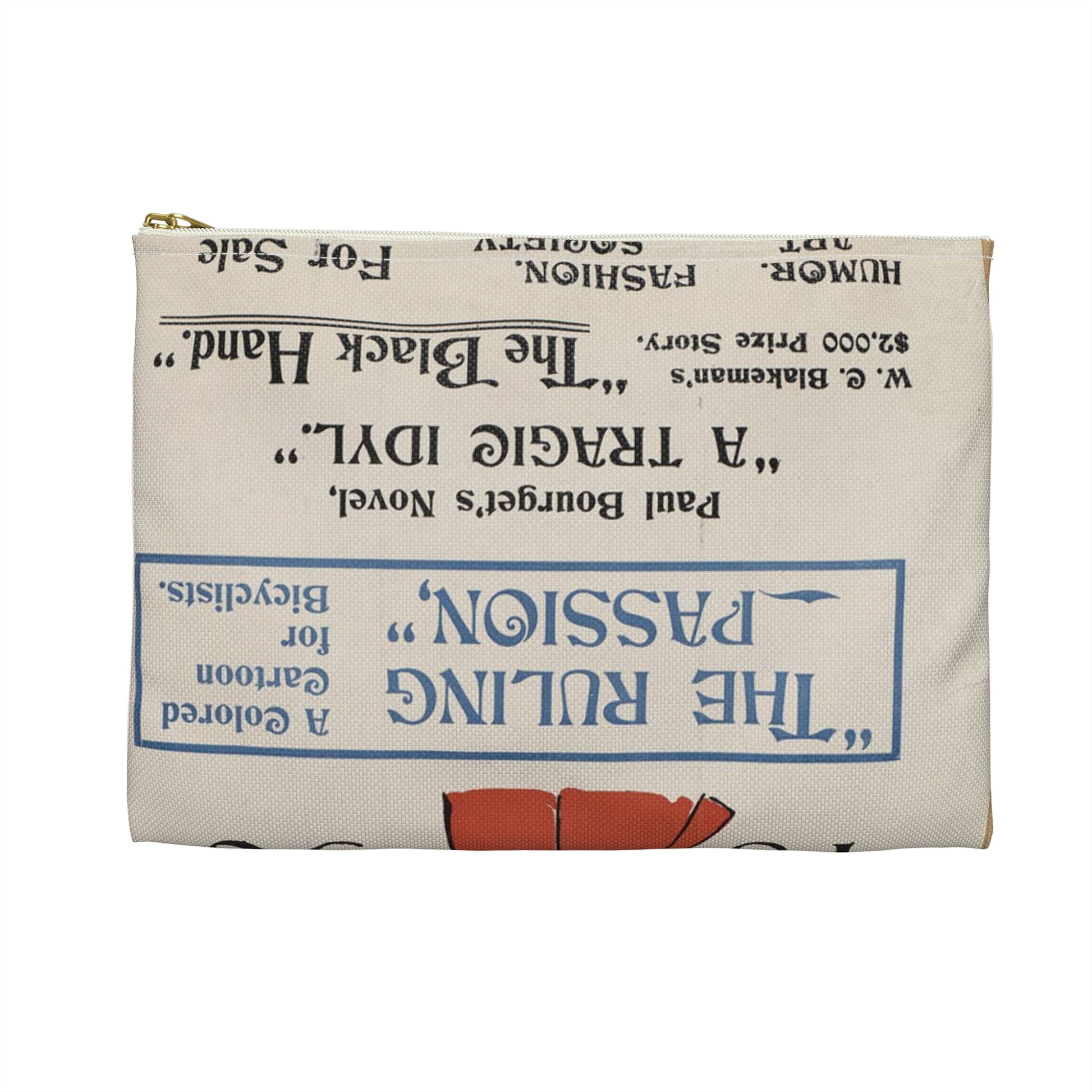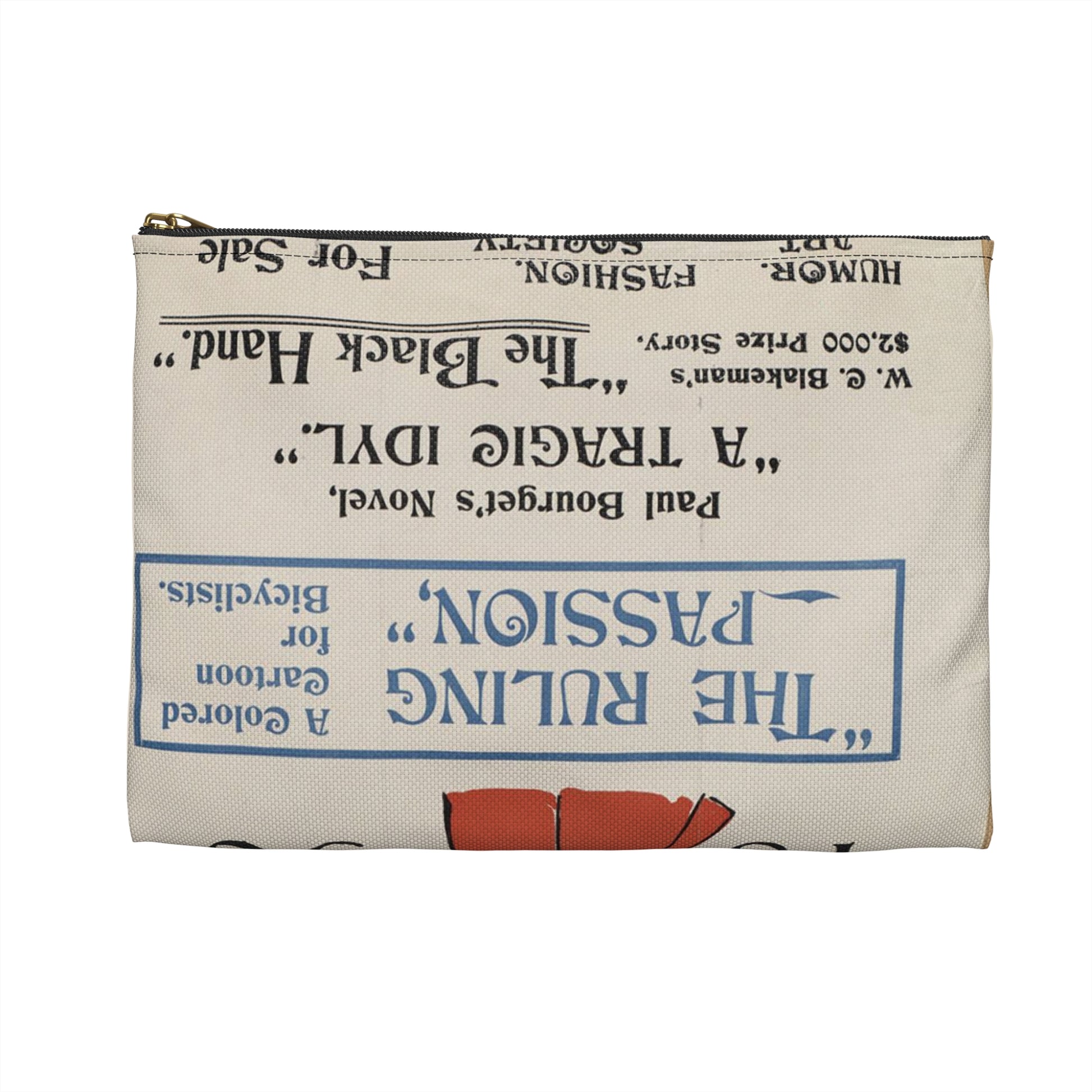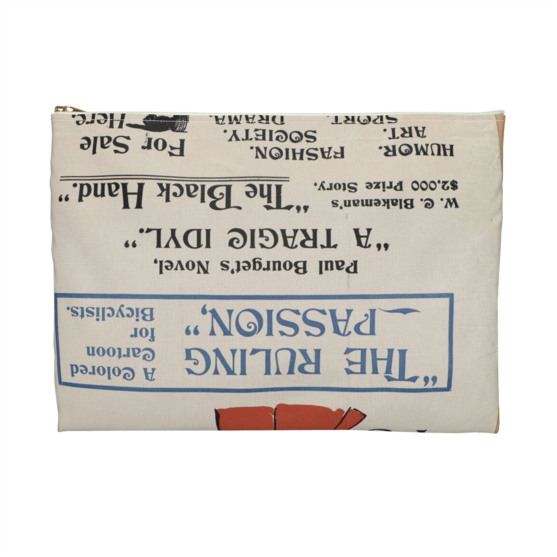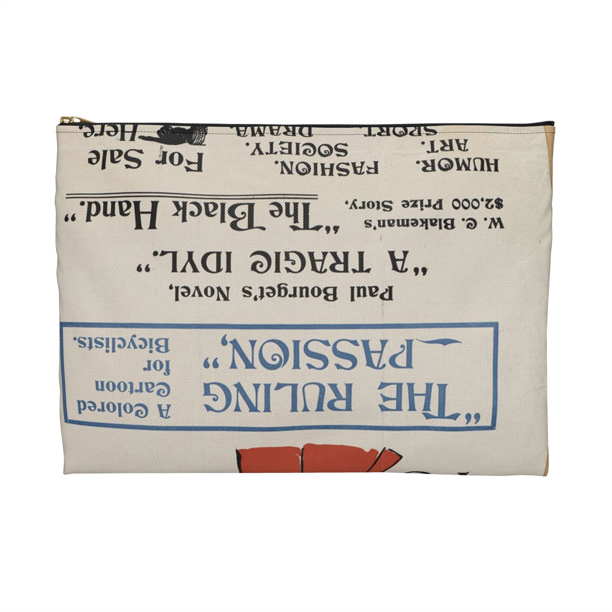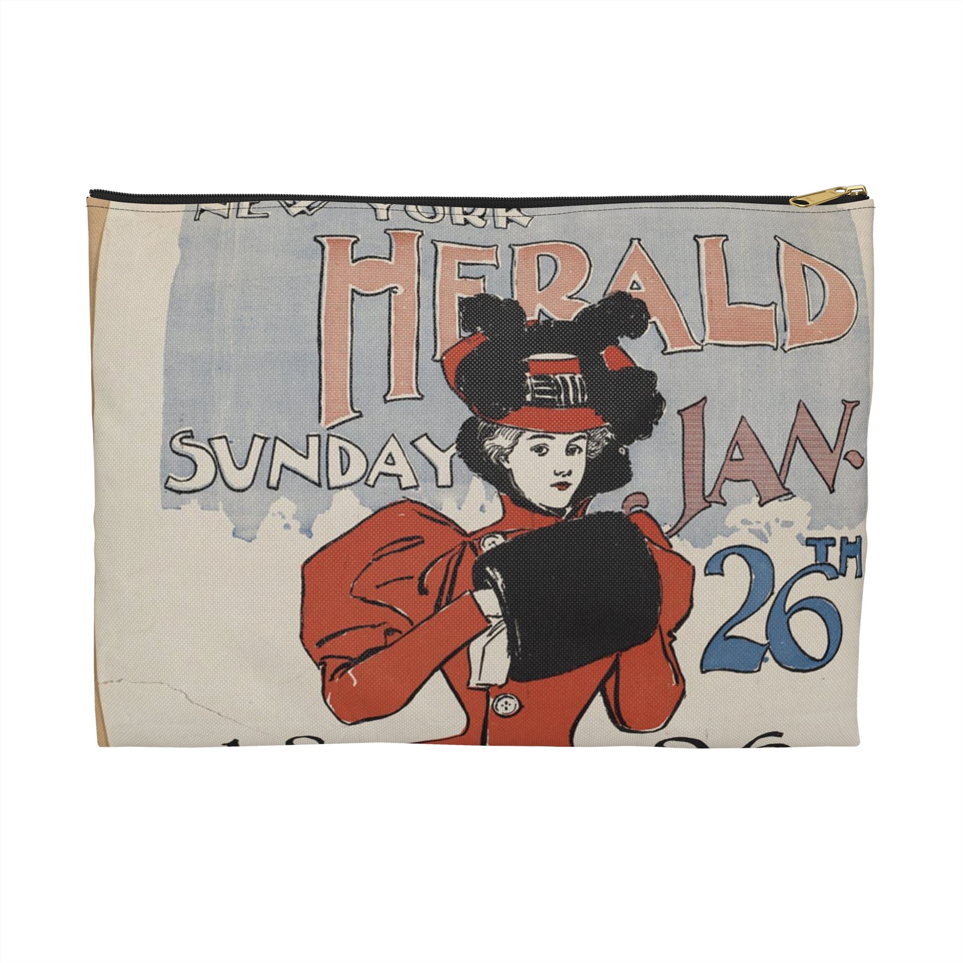 New York herald, Sunday Jan. 26th, 1896 Large Organizer Pouch with Black Zipper