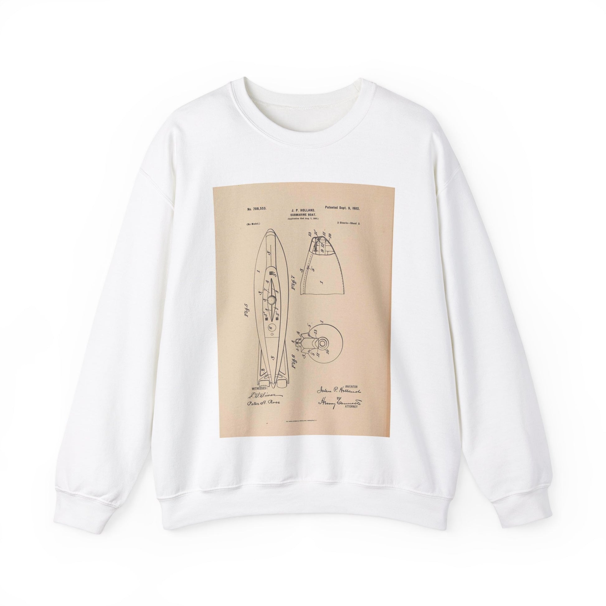 Patent drawing - Drawing for a Submarine Boat Public domain image White Heavy Blend Adult Crew Neck SweatShirt