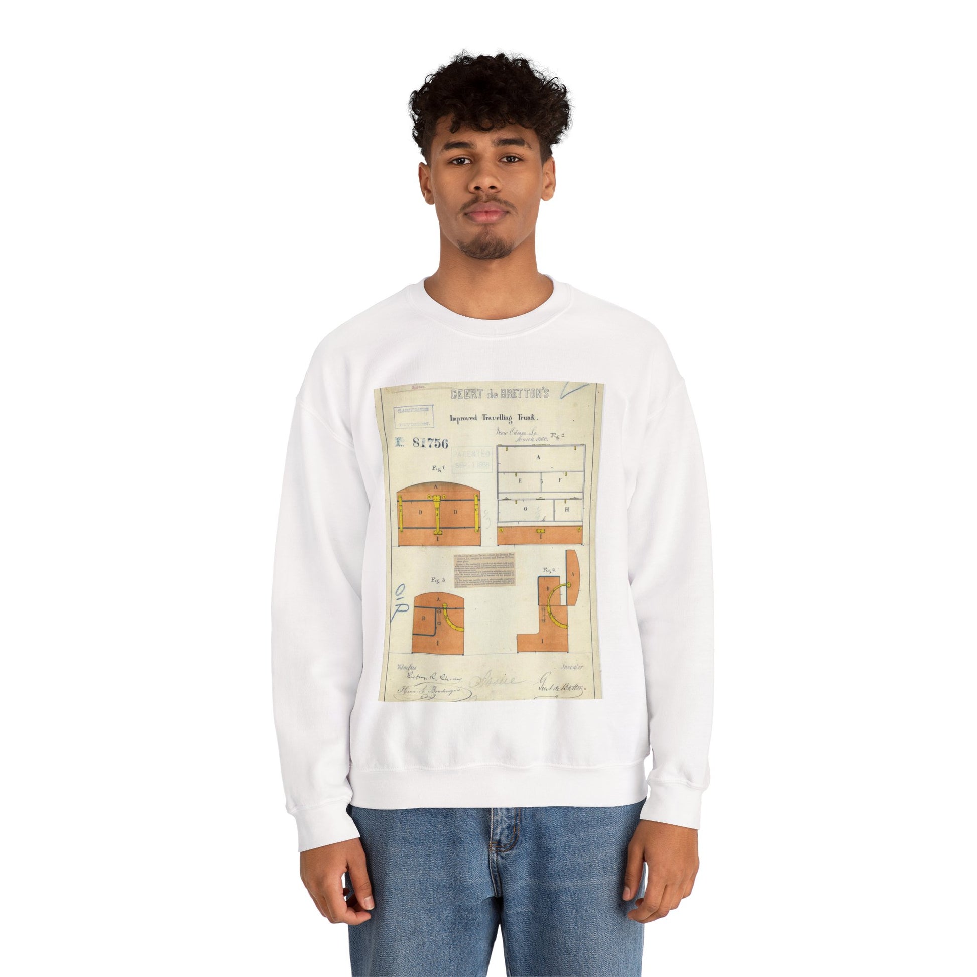 Patent drawing - Drawing of an Improved Traveling Trunk Public domain image White Heavy Blend Adult Crew Neck SweatShirt