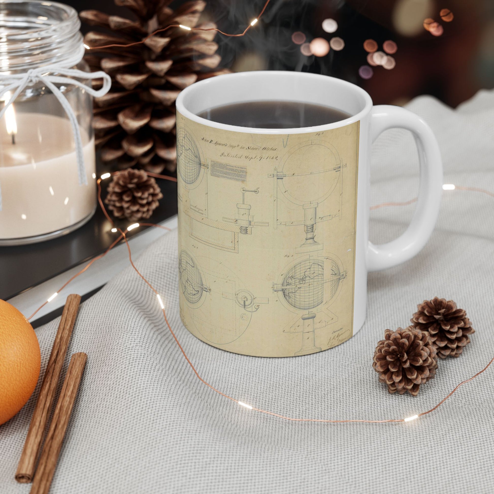 Patent drawing - Drawing of an Improvement in School Globes Public domain image Beautiful Novelty Ceramic Coffee Mug 11oz