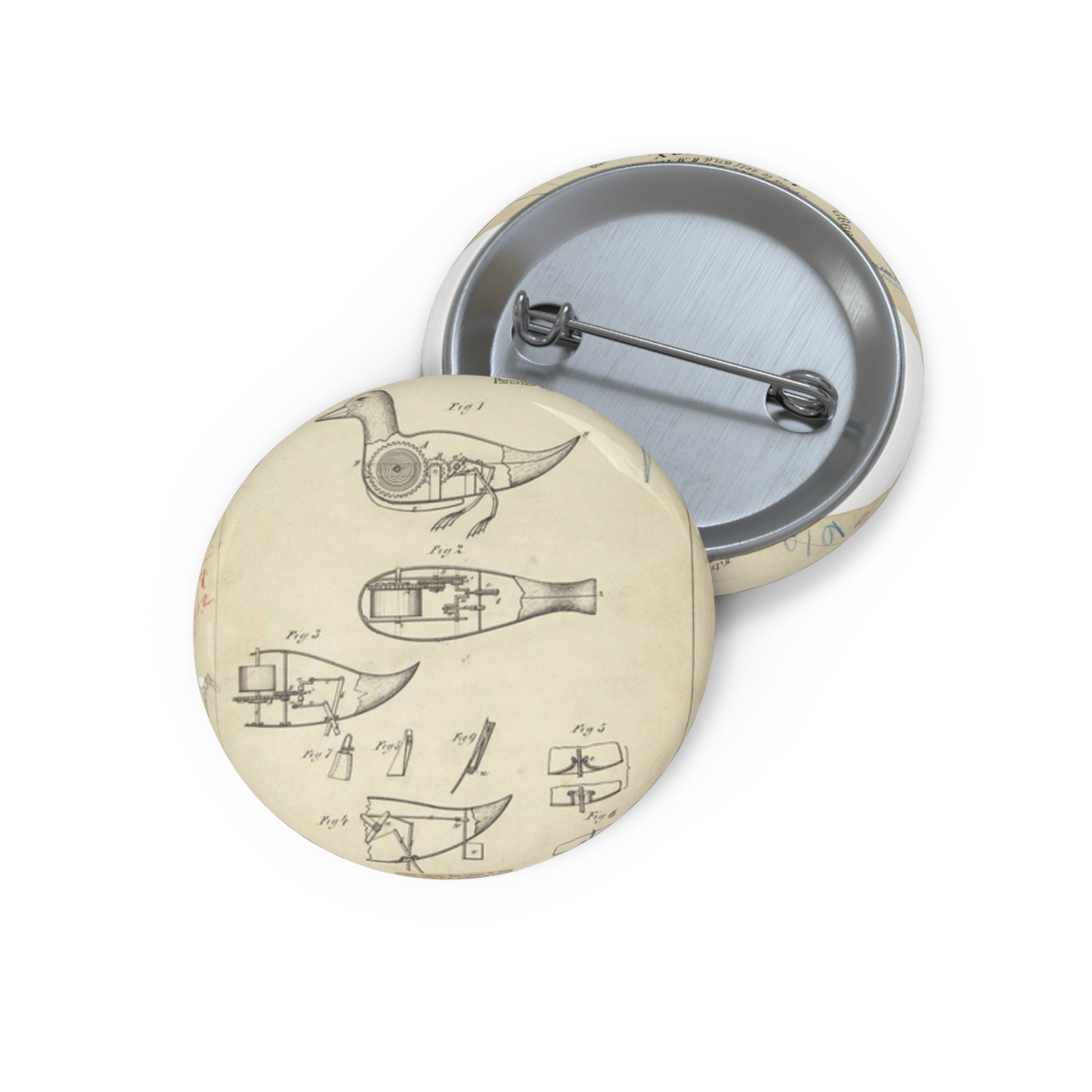 Patent drawing - Drawing of Aquatic Toy Public domain image Pin Buttons with Crisp Design
