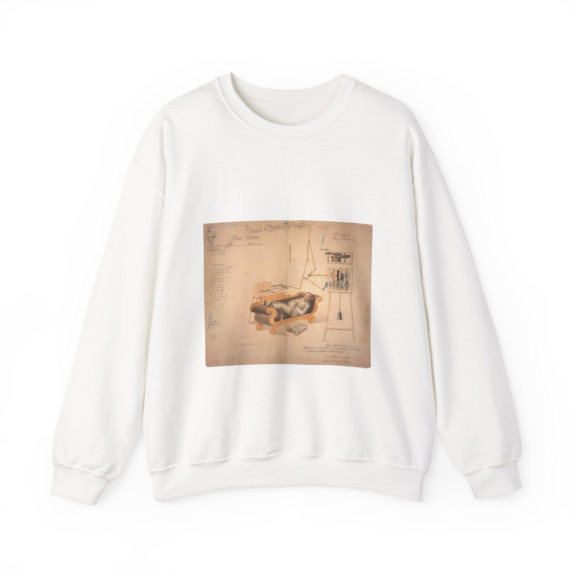 Patent drawing - Drawing of Fan Moved by Mechanism Public domain image White Heavy Blend Adult Crew Neck SweatShirt