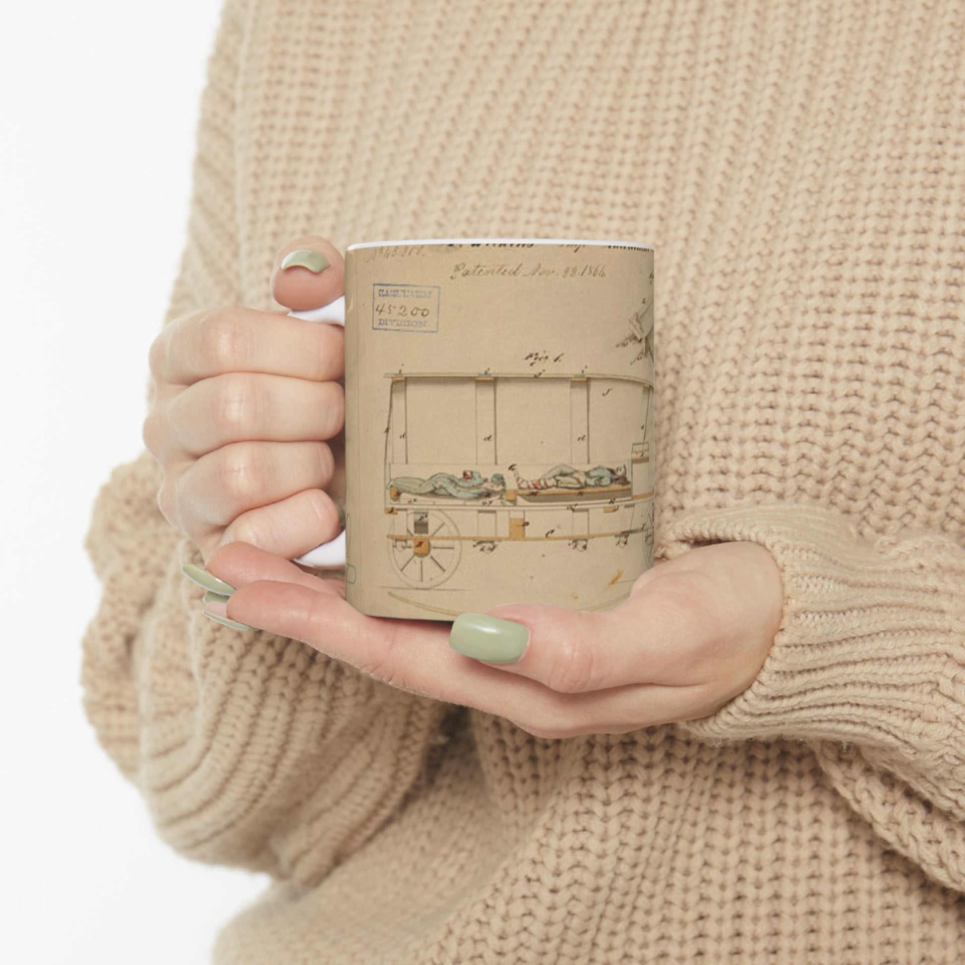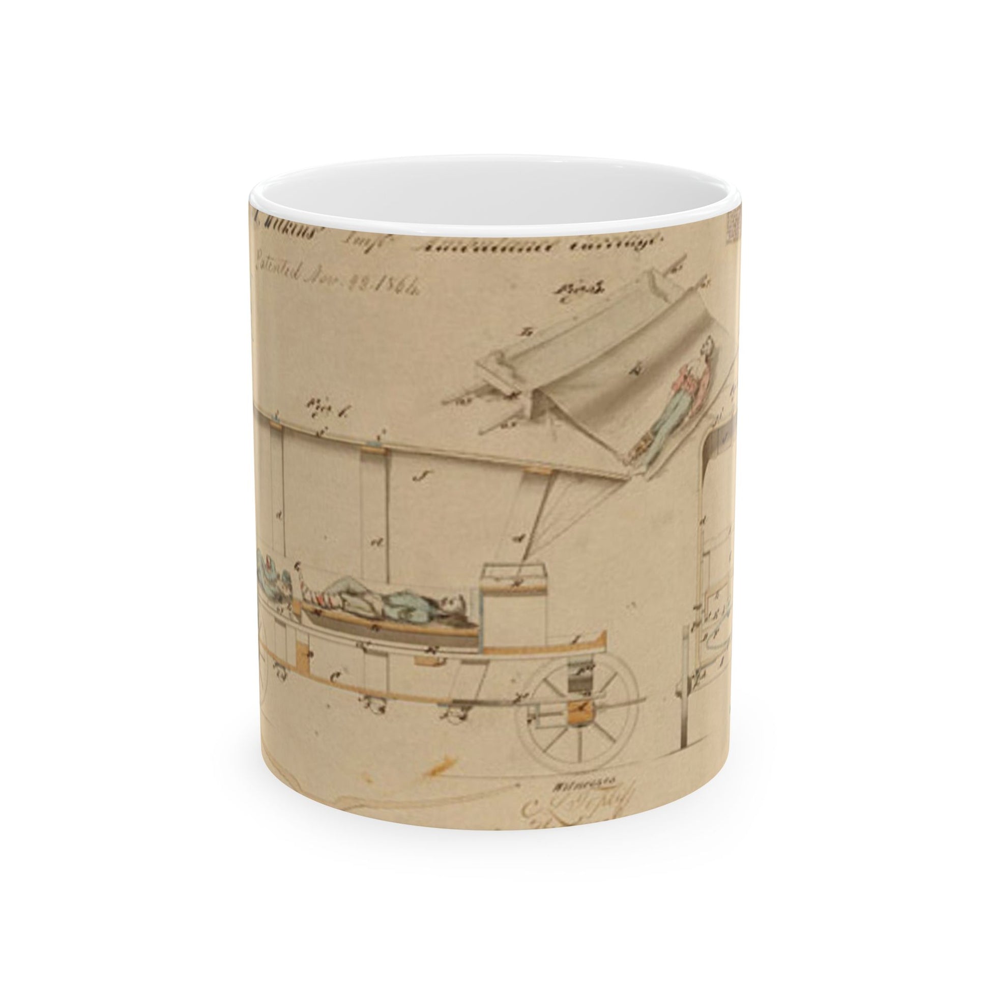 Patent drawing - Drawing of Improved Ambulance Carriage Public domain image Beautiful Novelty Ceramic Coffee Mug 11oz
