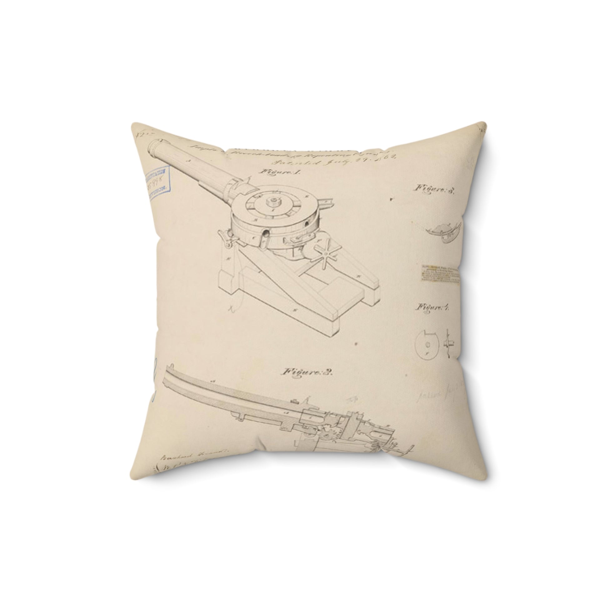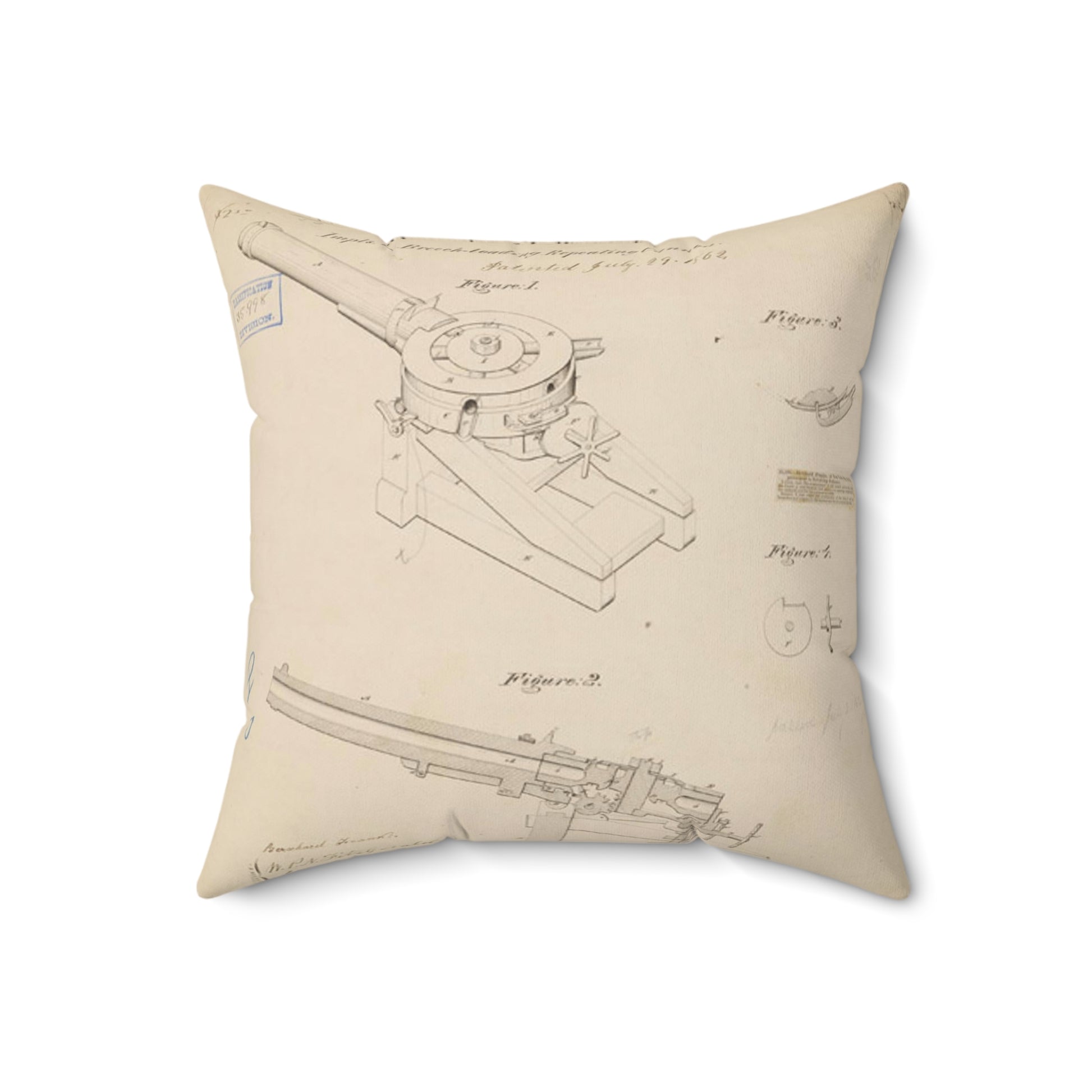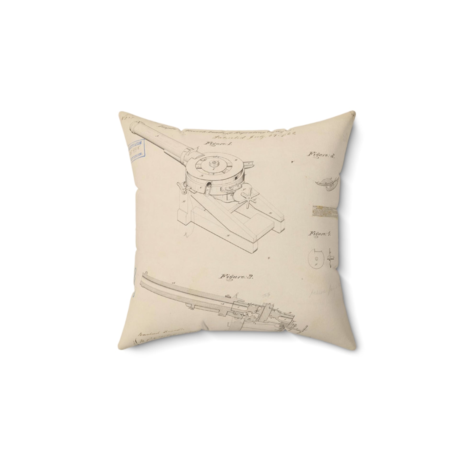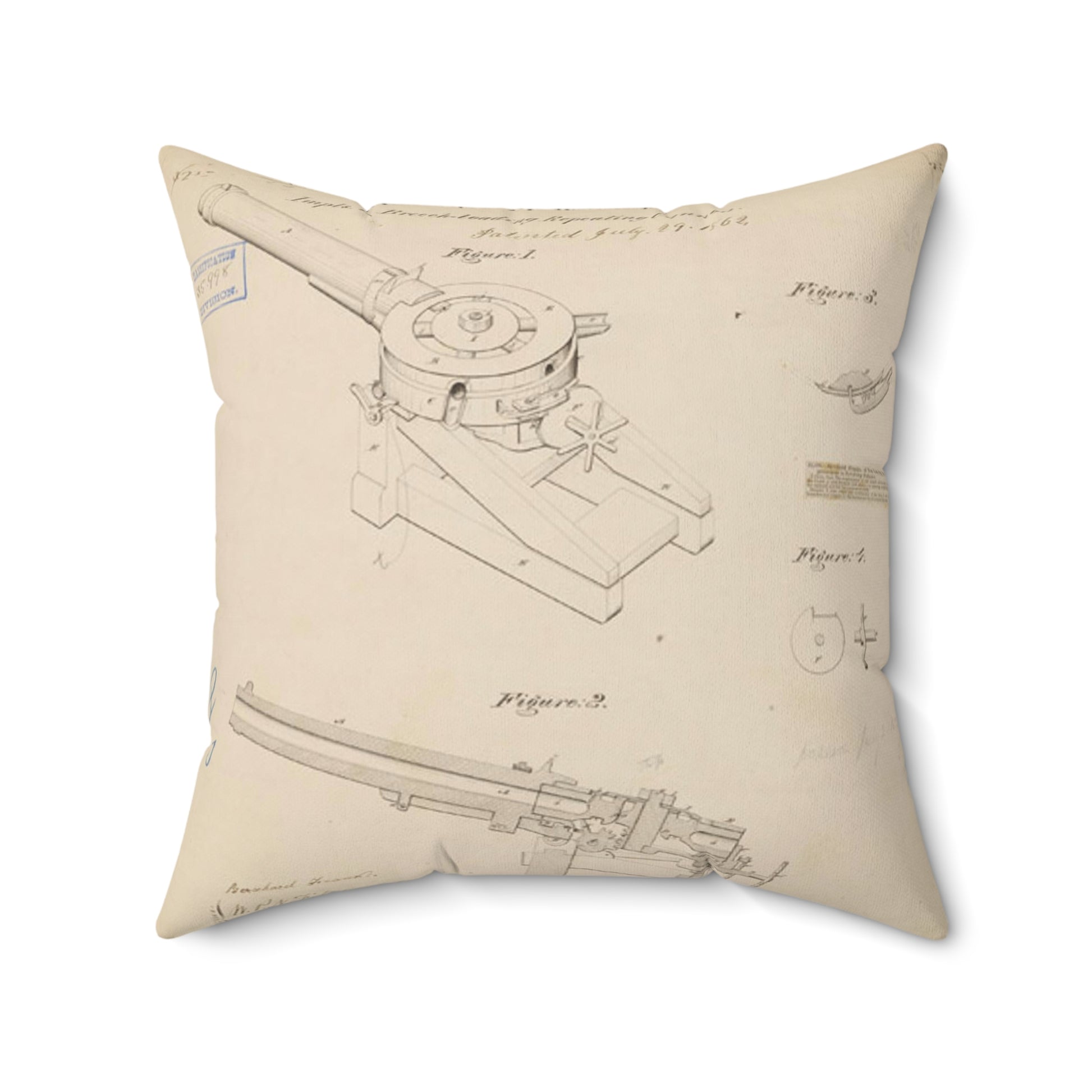 Patent drawing - Drawing of Improvements in Breech-Loading Repeating Cannon Public domain image Decorative Accent Square Pillow