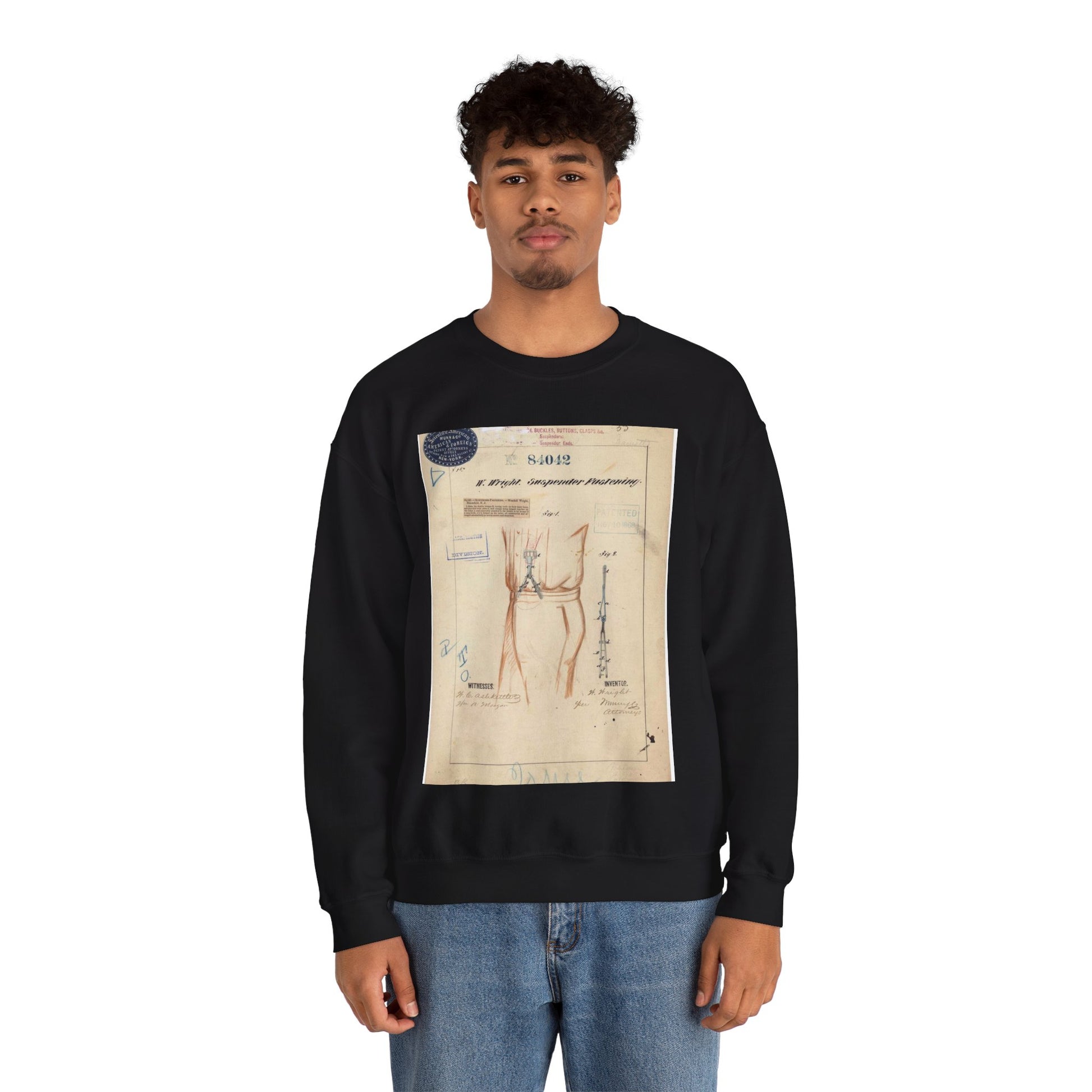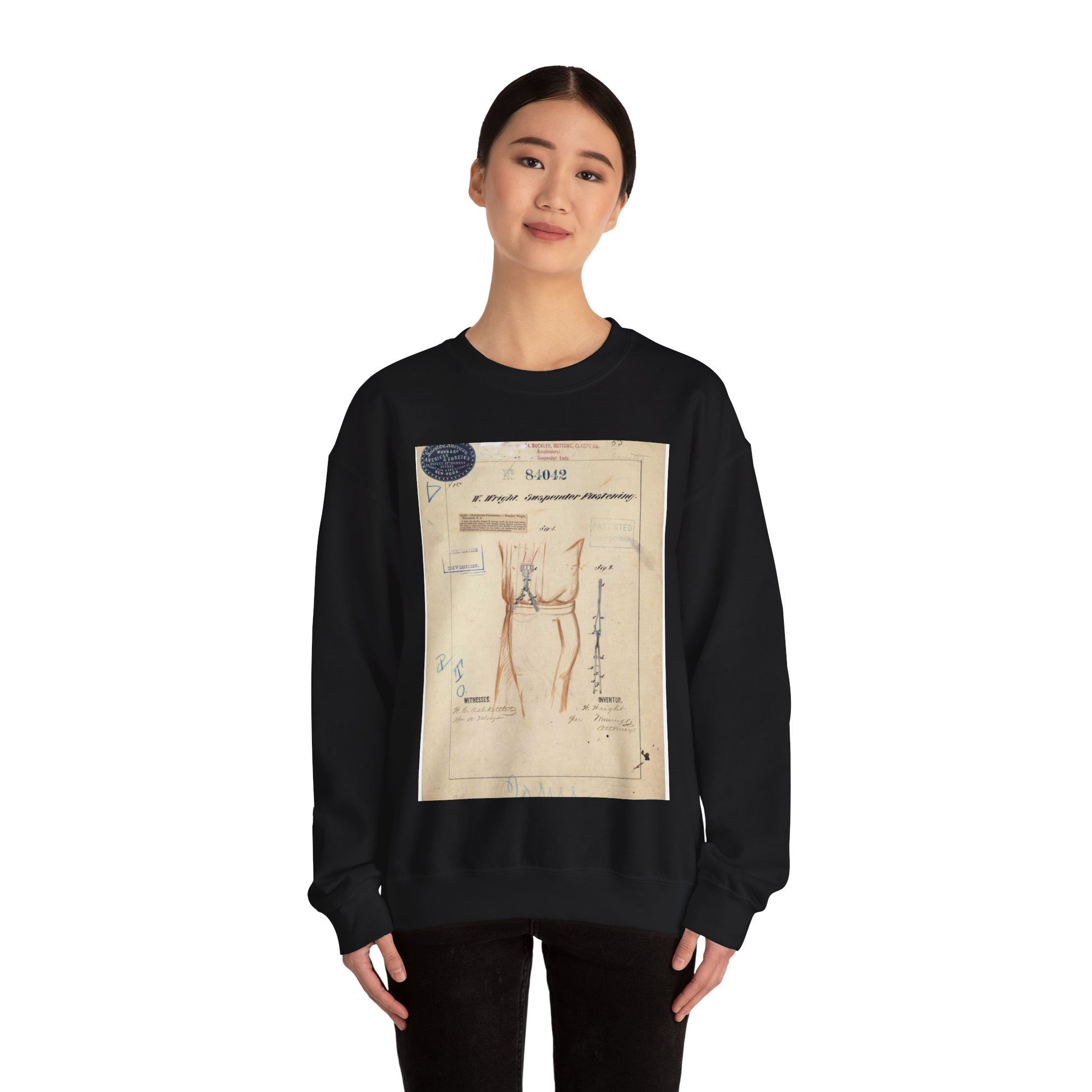 Patent drawing - Drawing of Suspender Fastening Public domain image Black Heavy Blend Adult Crew Neck SweatShirt