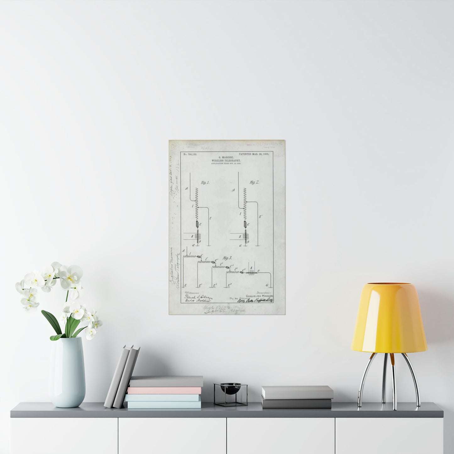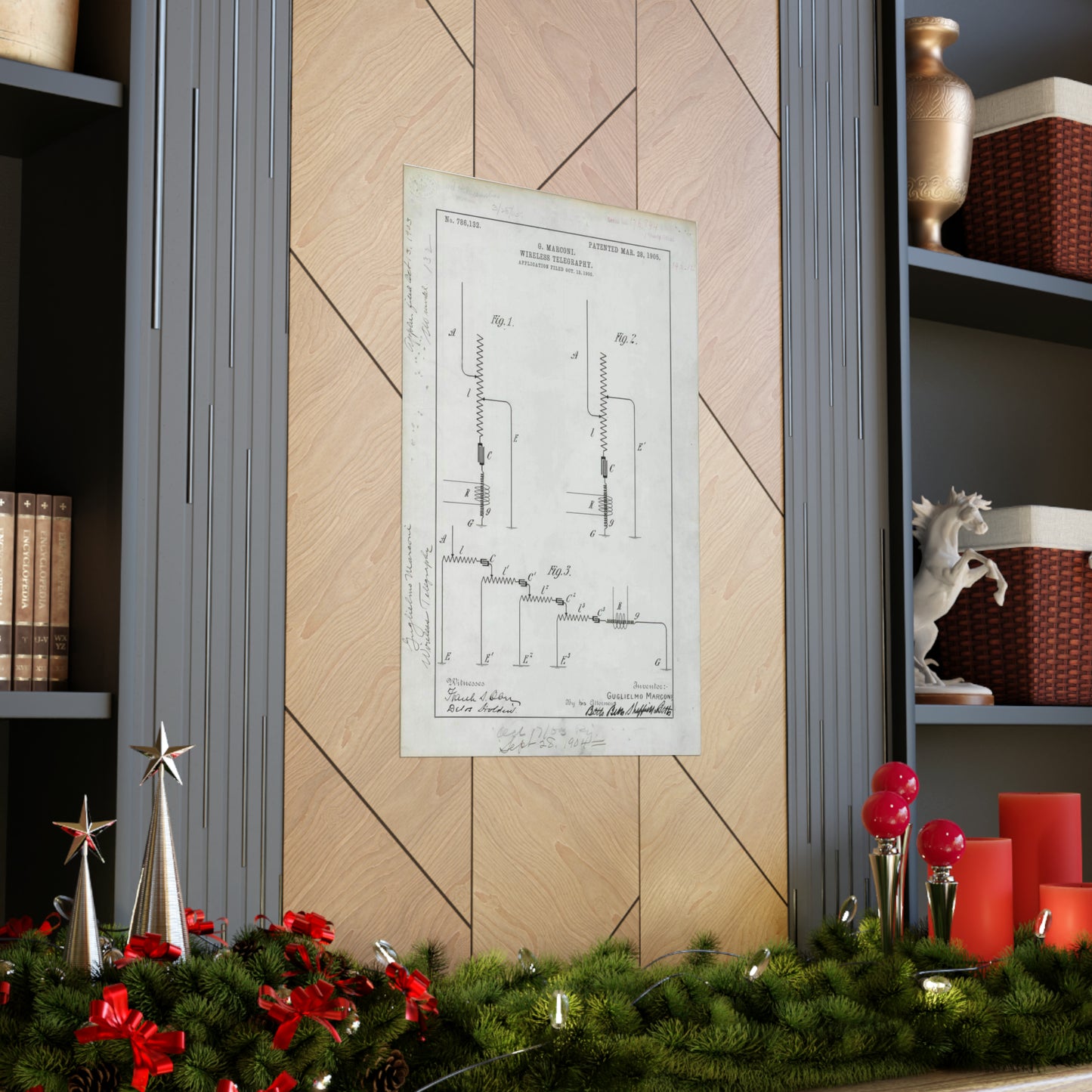 Patent drawing - for G. Marconi's Wireless Telegraphy Public domain image High Quality Matte Wall Art Poster for Home, Office, Classroom