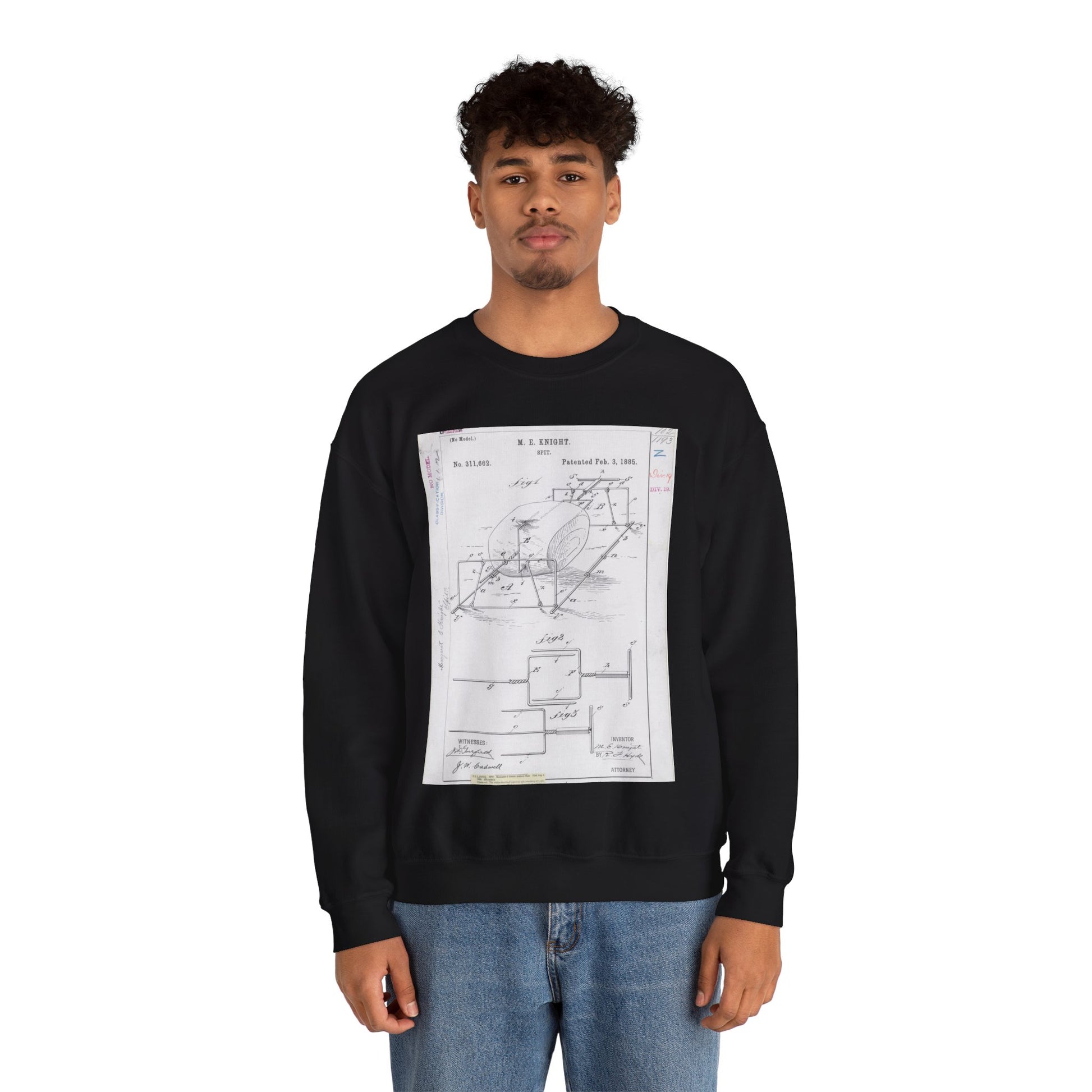 Patent drawing - for M. E. Knight's Spit Public domain image Black Heavy Blend Adult Crew Neck SweatShirt
