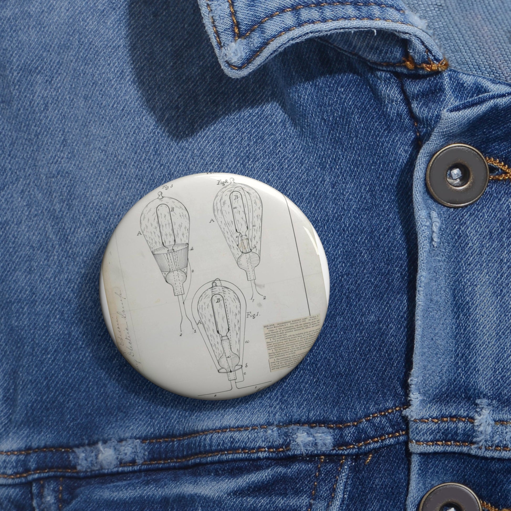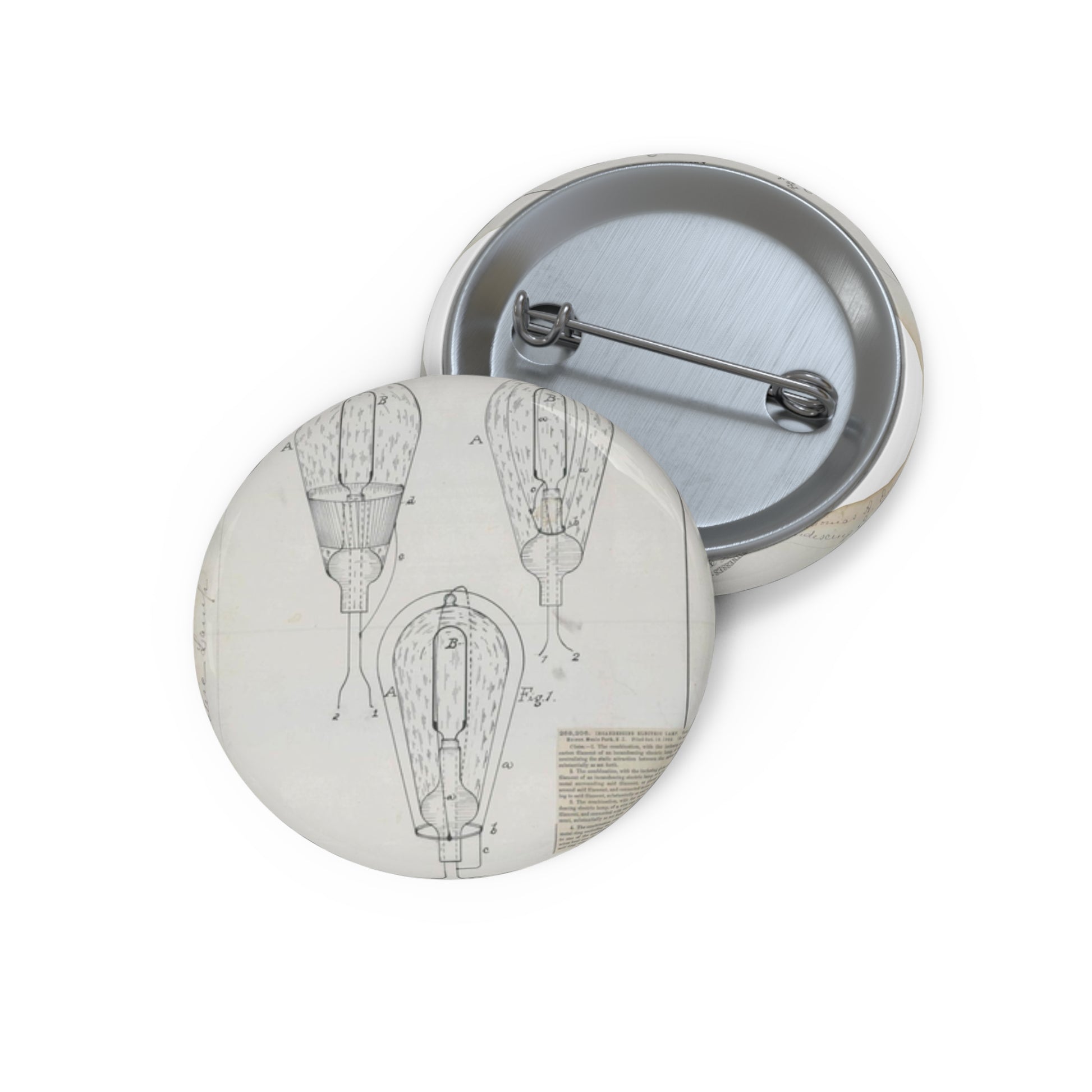 Patent drawing - for T. A. Edison's Incandescing Electric Lamp Public domain image Pin Buttons with Crisp Design