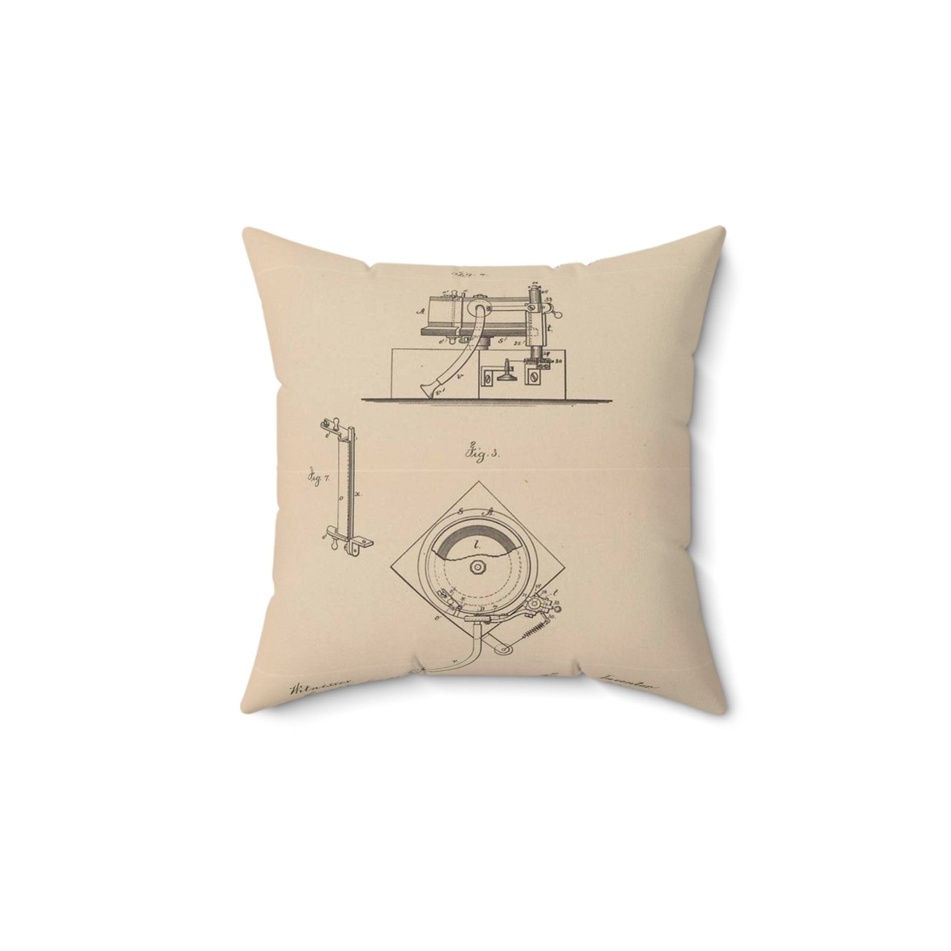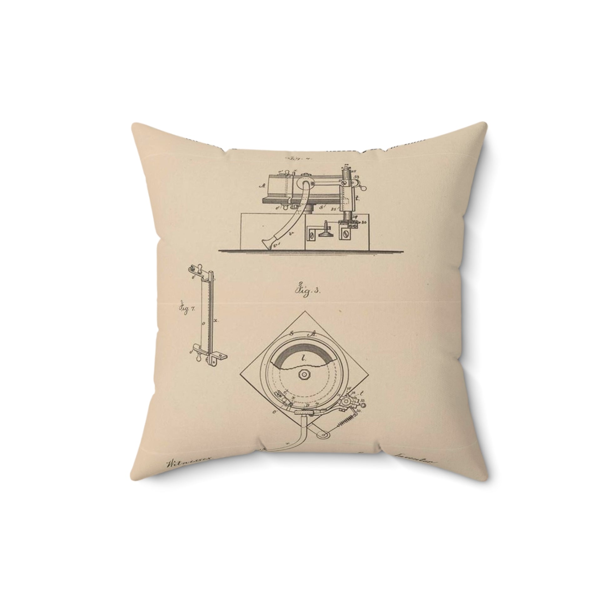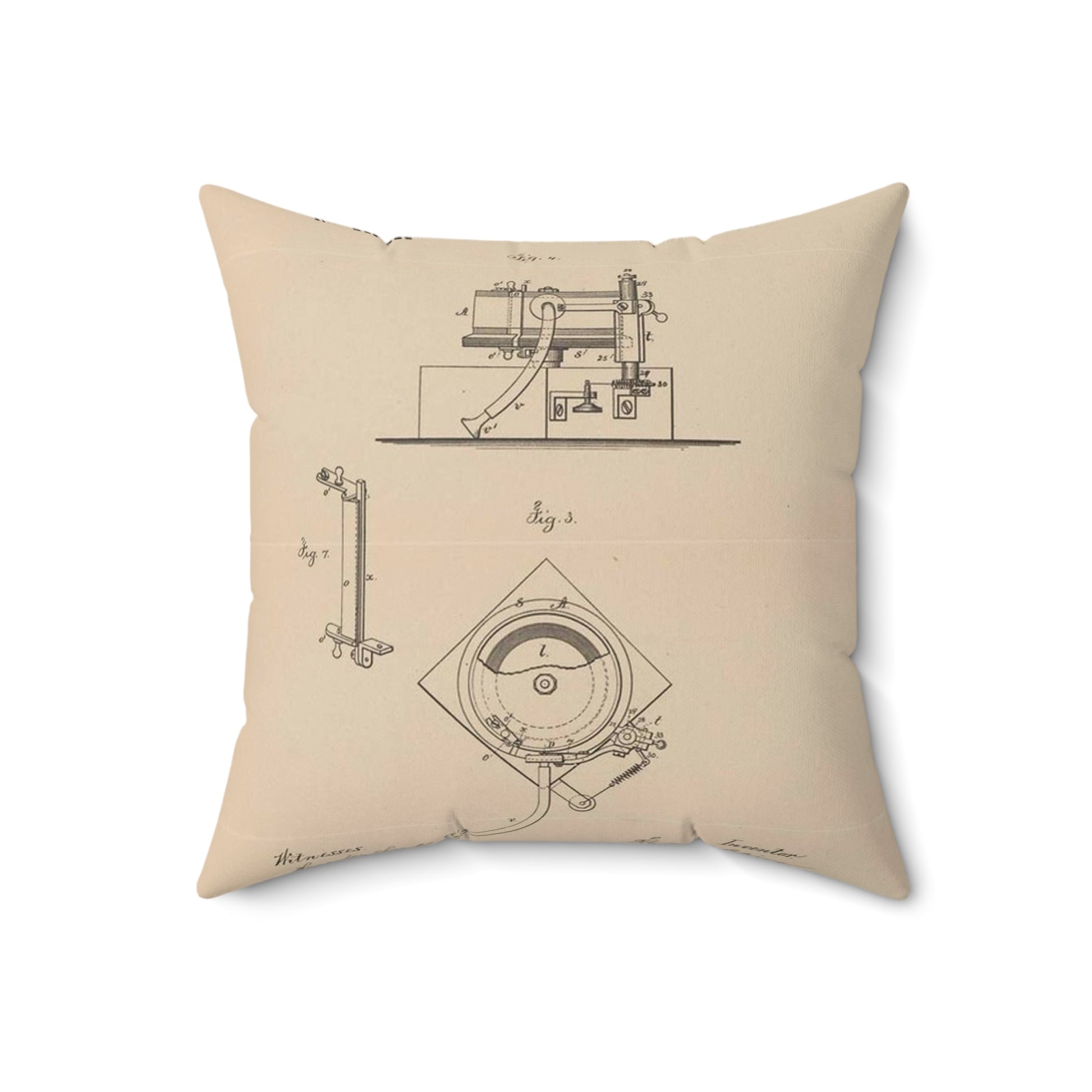 Patent Drawing of Engine - Drawing for a Phonograph Public domain image Decorative Accent Square Pillow
