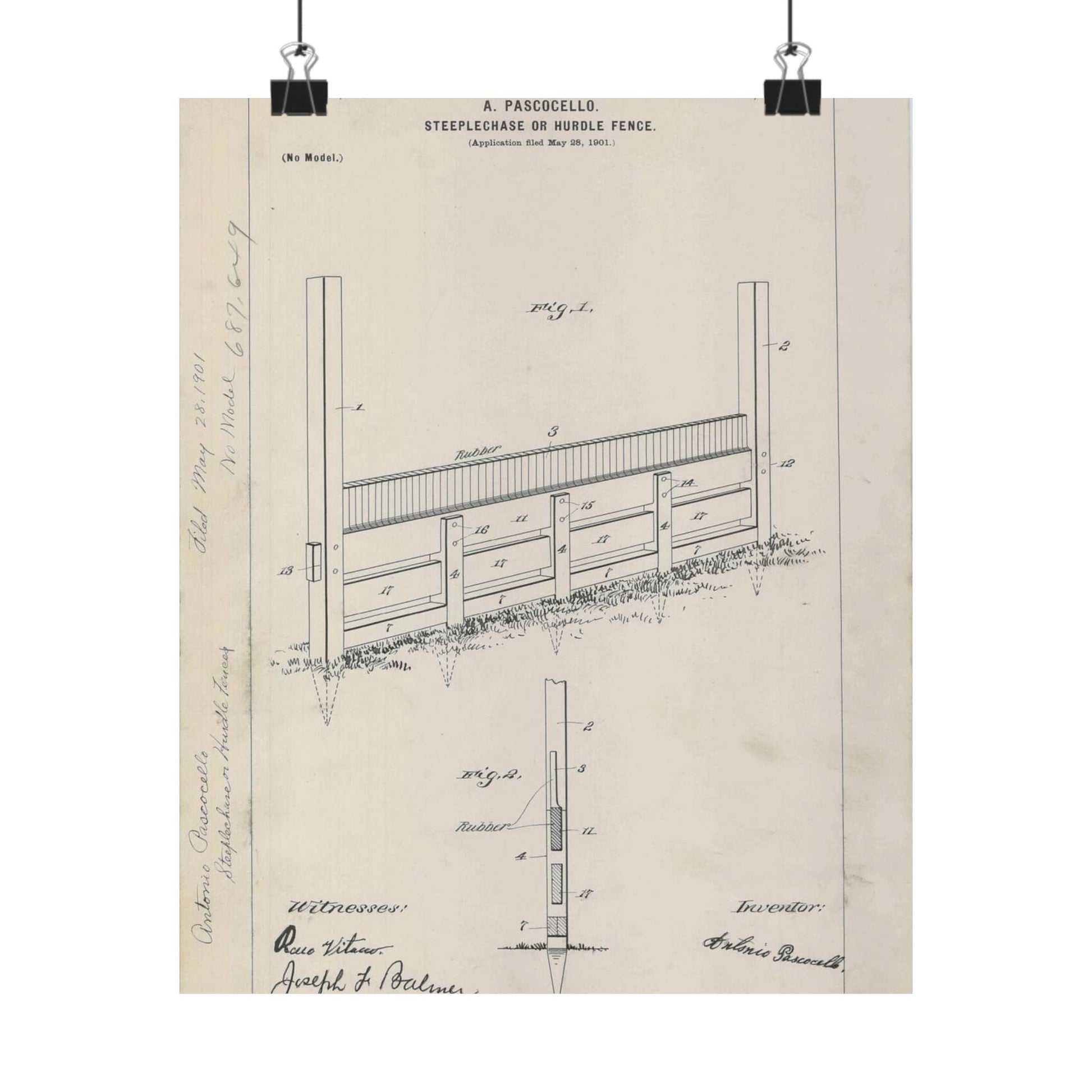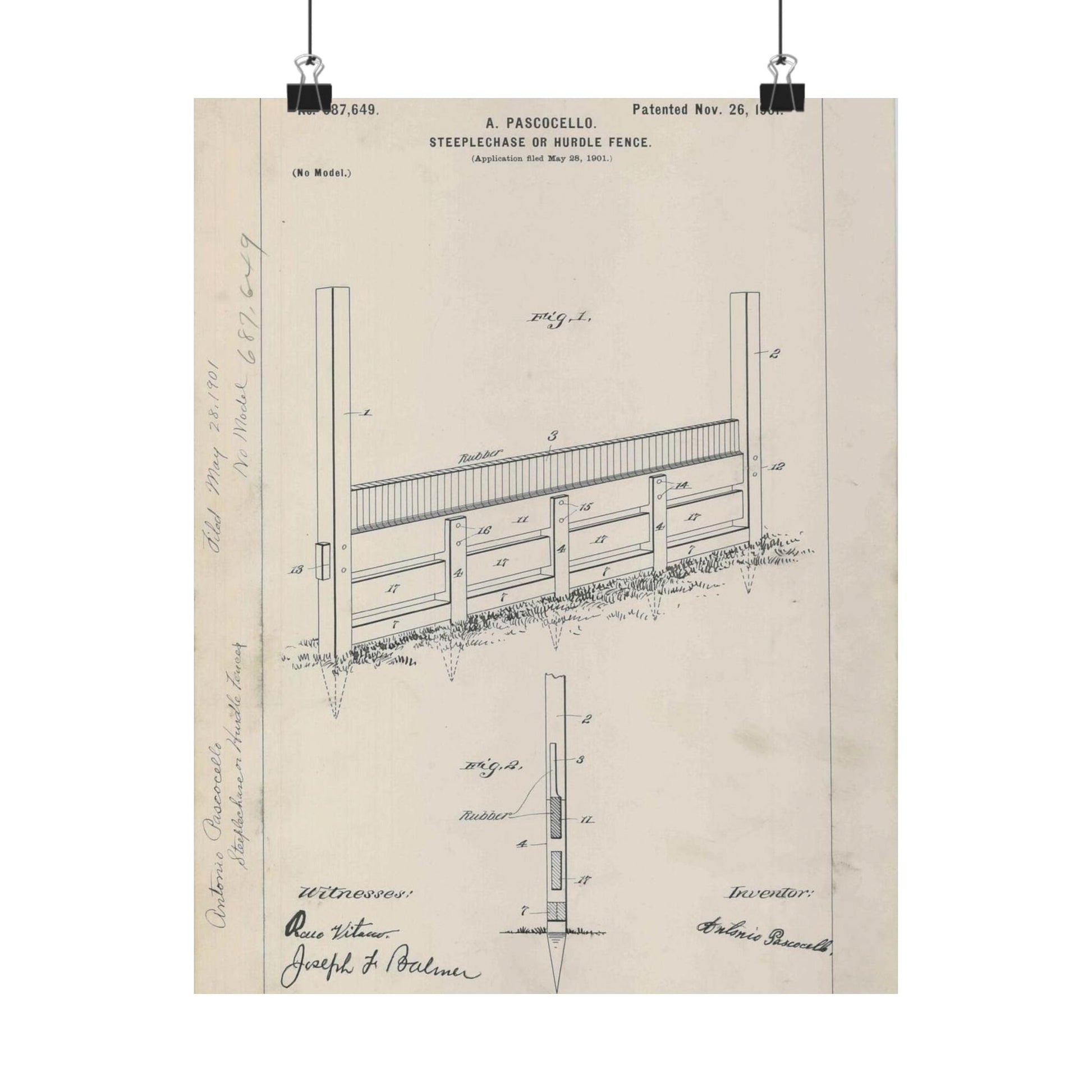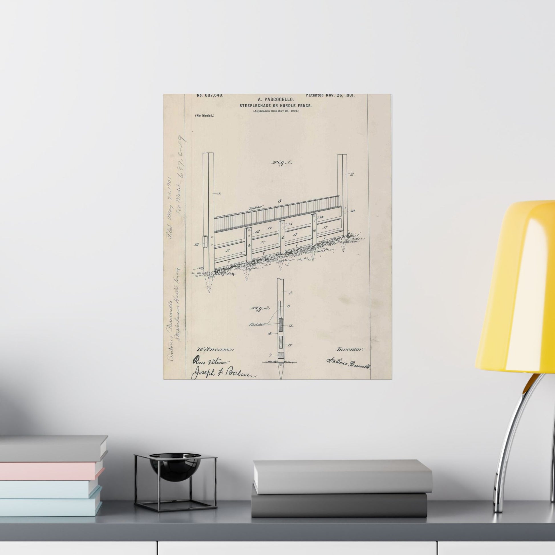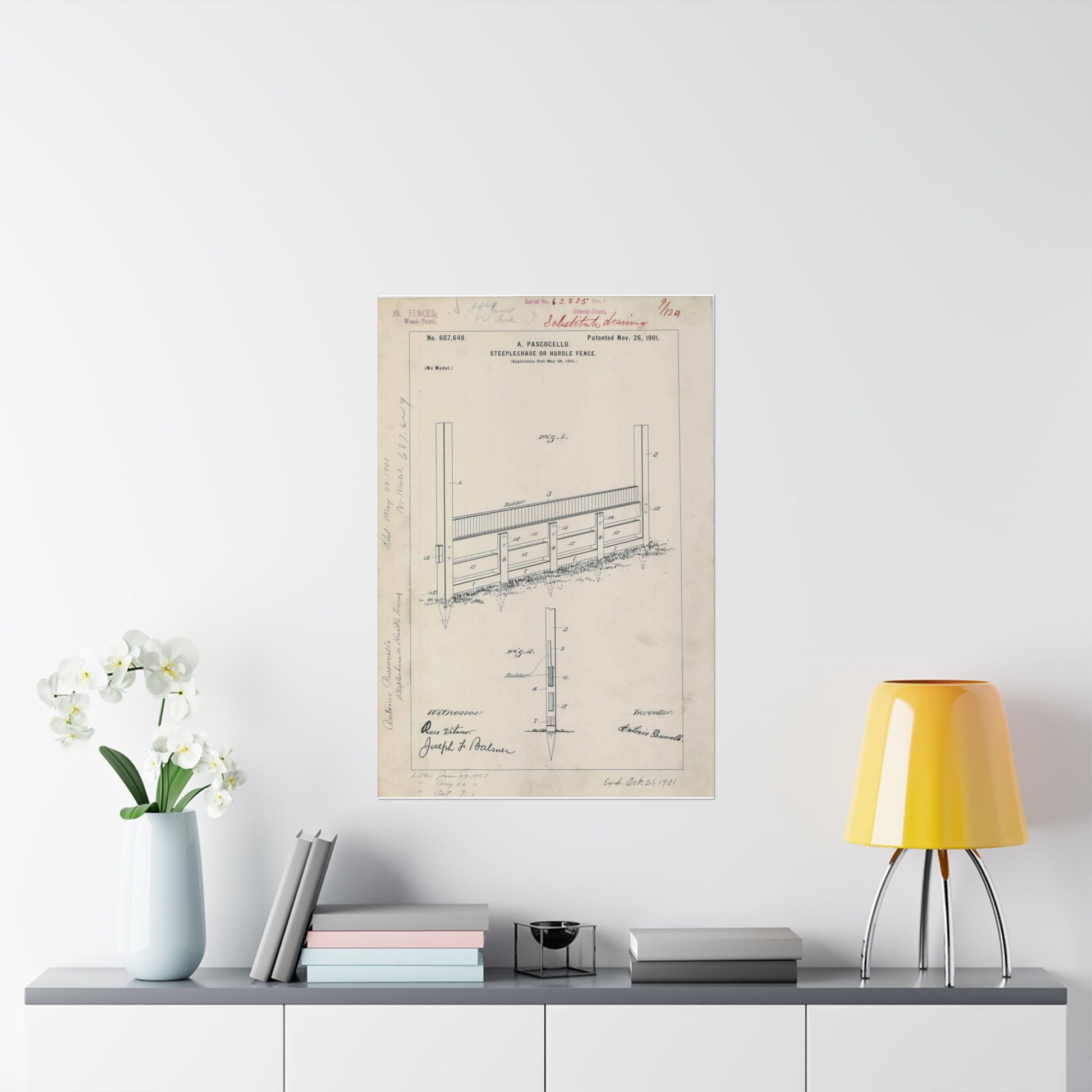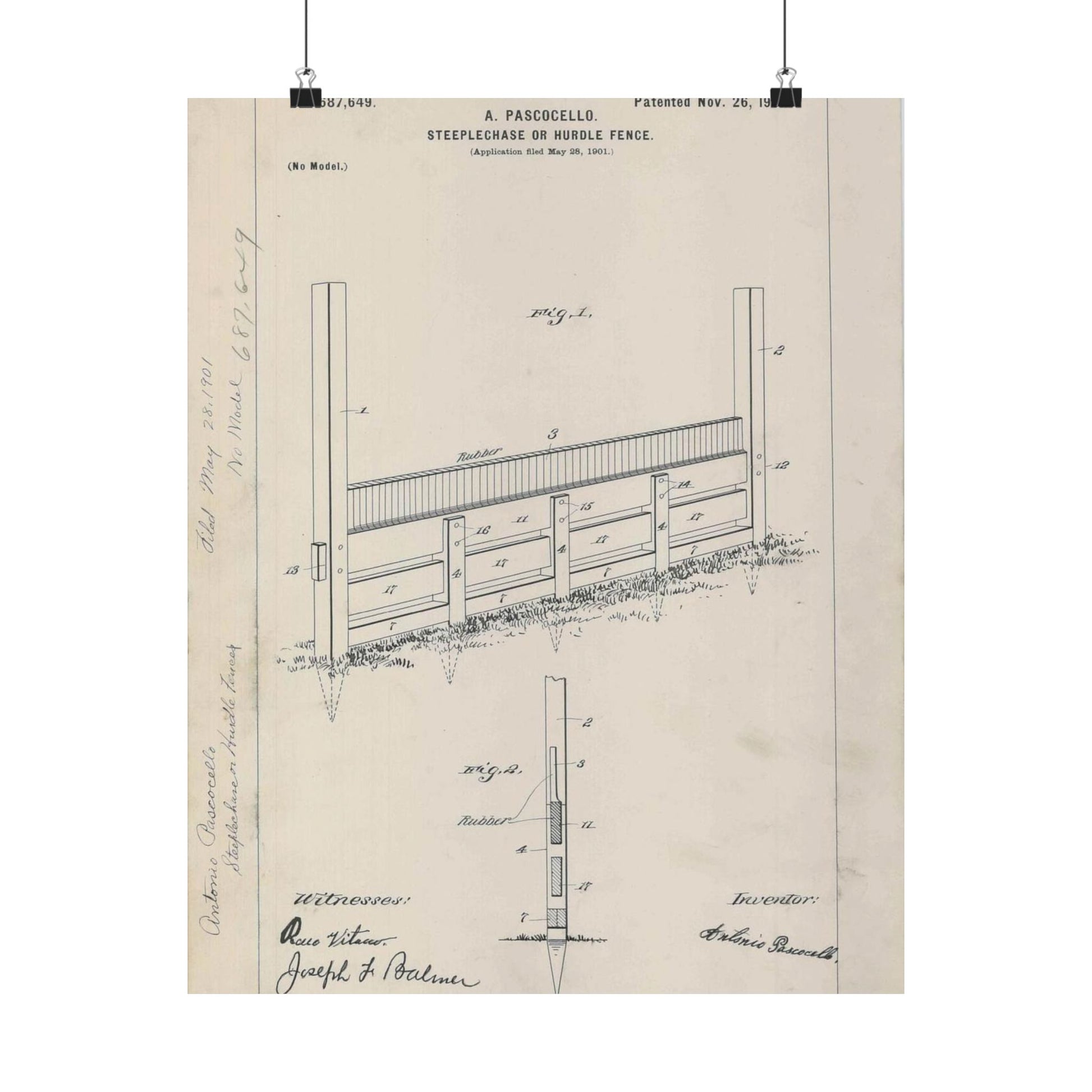 Patent Drawing of Engine - for A. Pascocello' Steeplechase or Hurdle Fence Public domain image High Quality Matte Wall Art Poster for Home, Office, Classroom