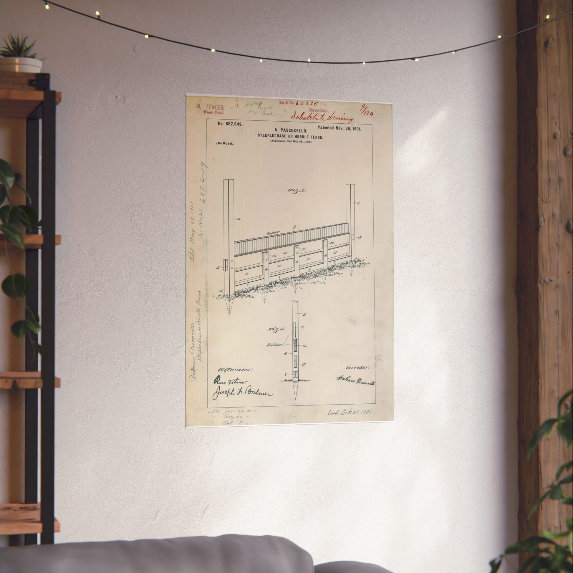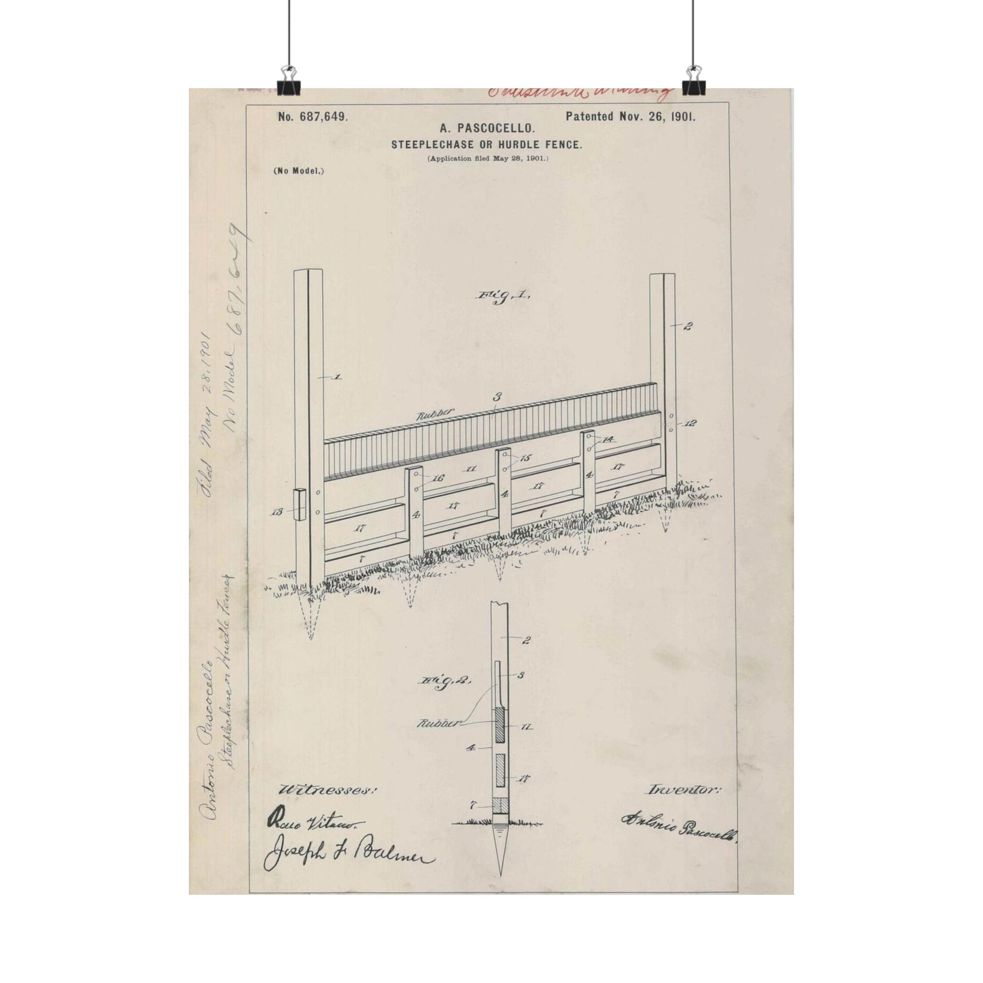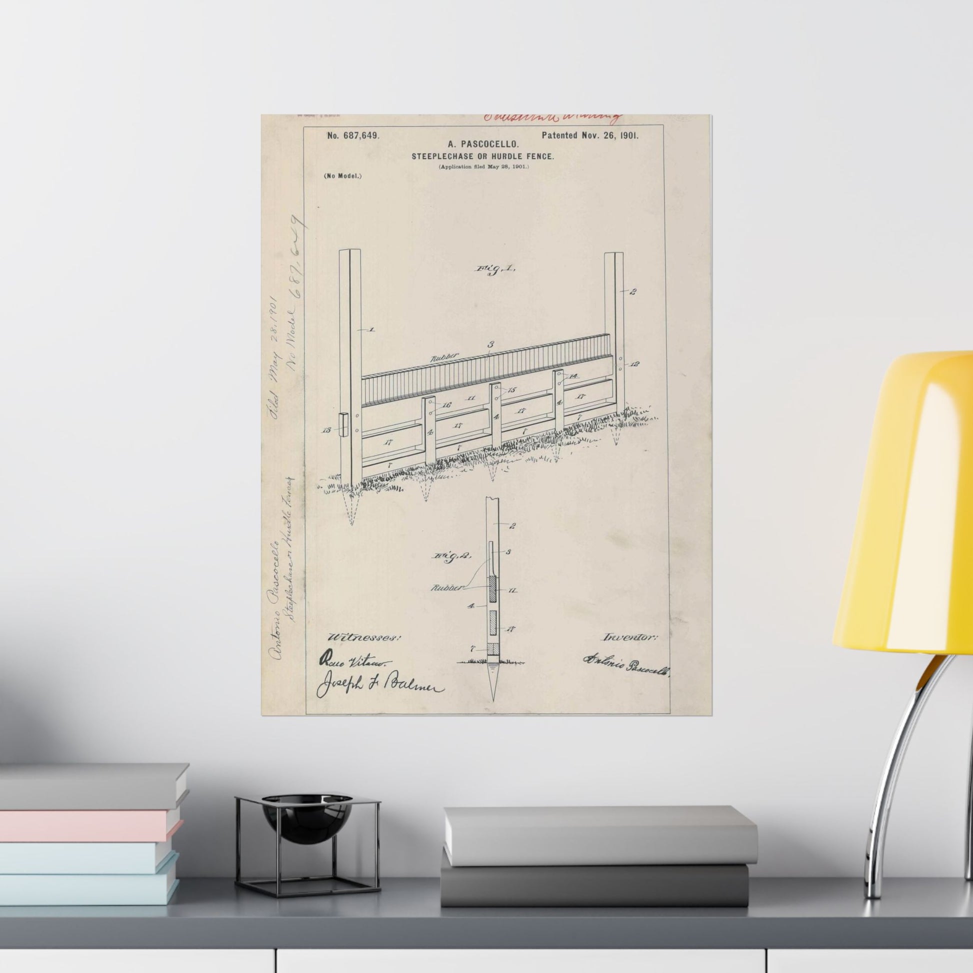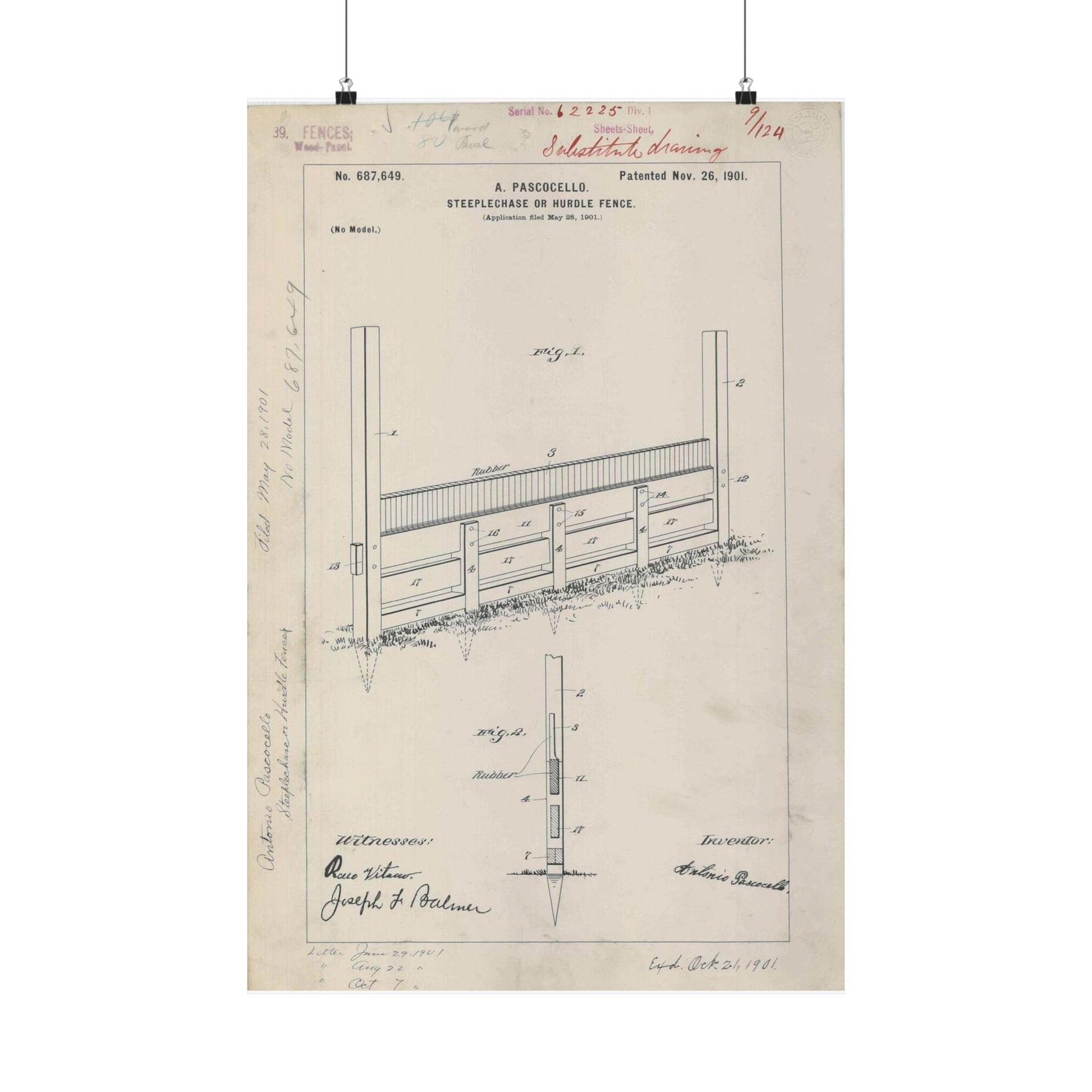 Patent Drawing of Engine - for A. Pascocello' Steeplechase or Hurdle Fence Public domain image High Quality Matte Wall Art Poster for Home, Office, Classroom