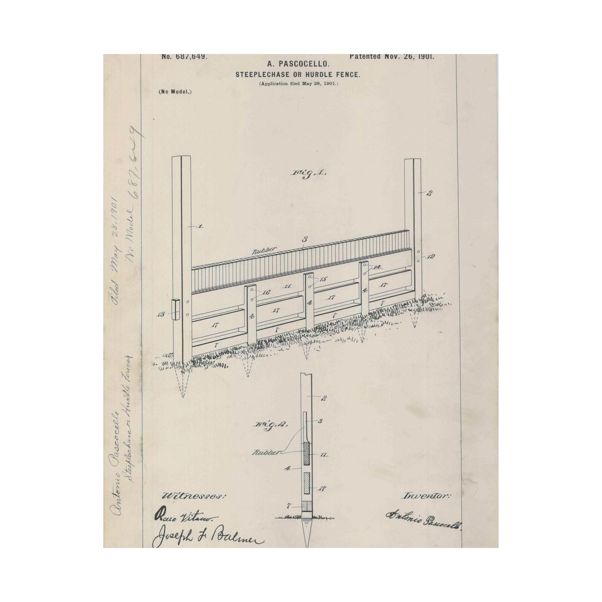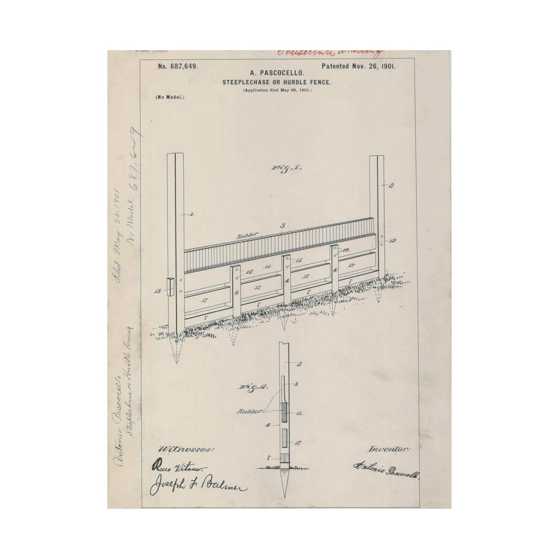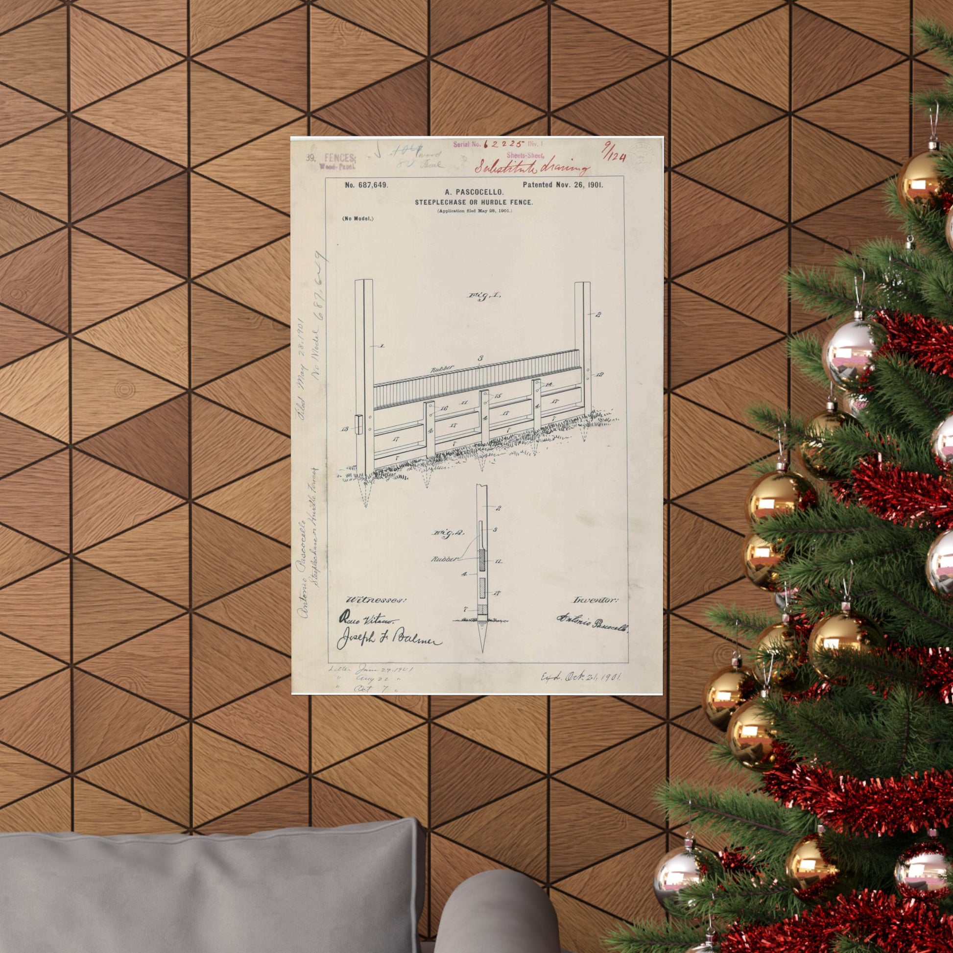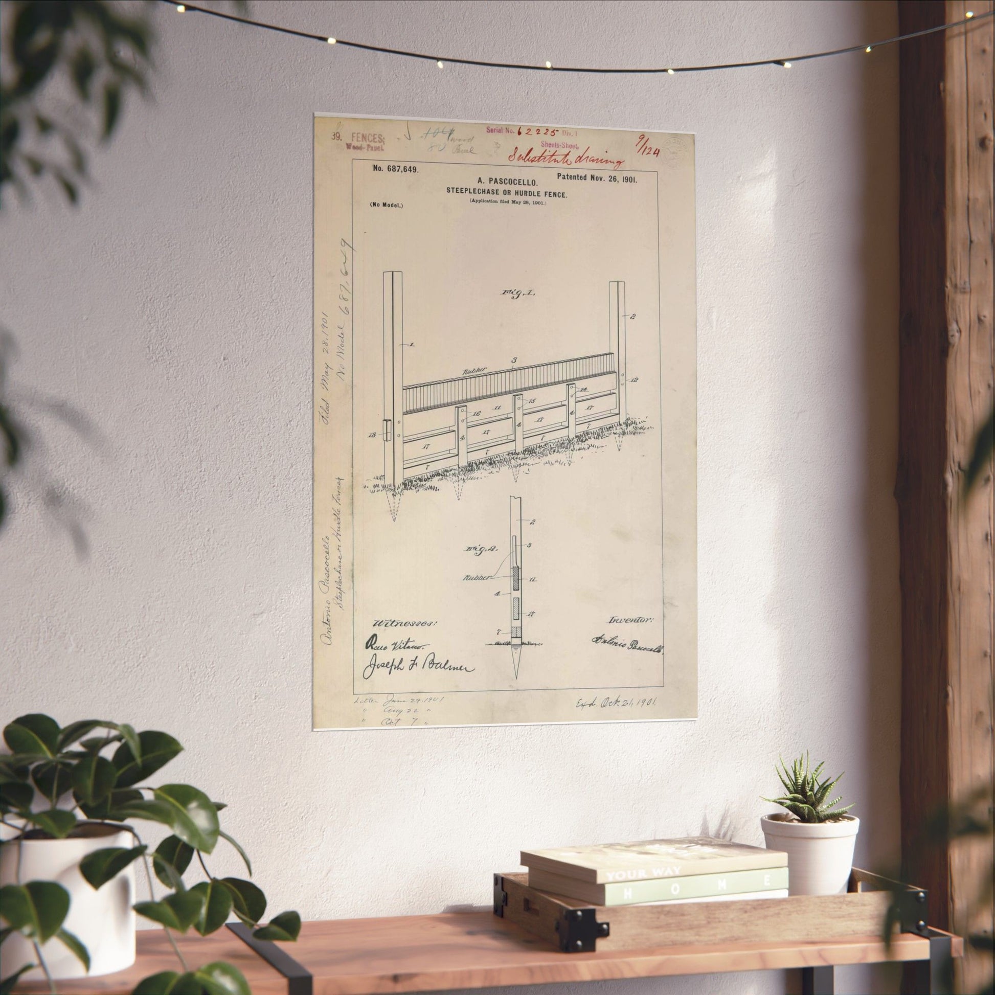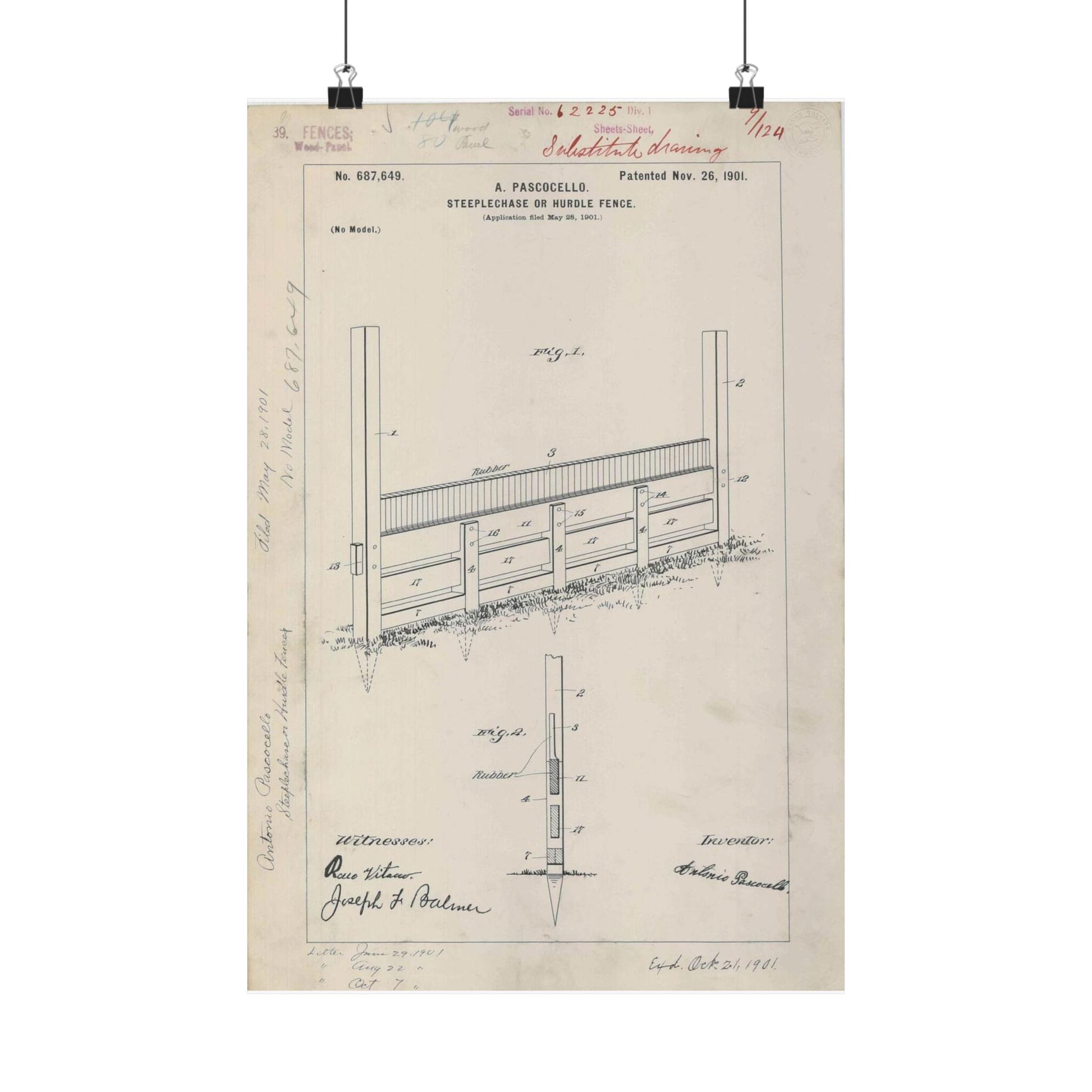 Patent Drawing of Engine - for A. Pascocello' Steeplechase or Hurdle Fence Public domain image High Quality Matte Wall Art Poster for Home, Office, Classroom