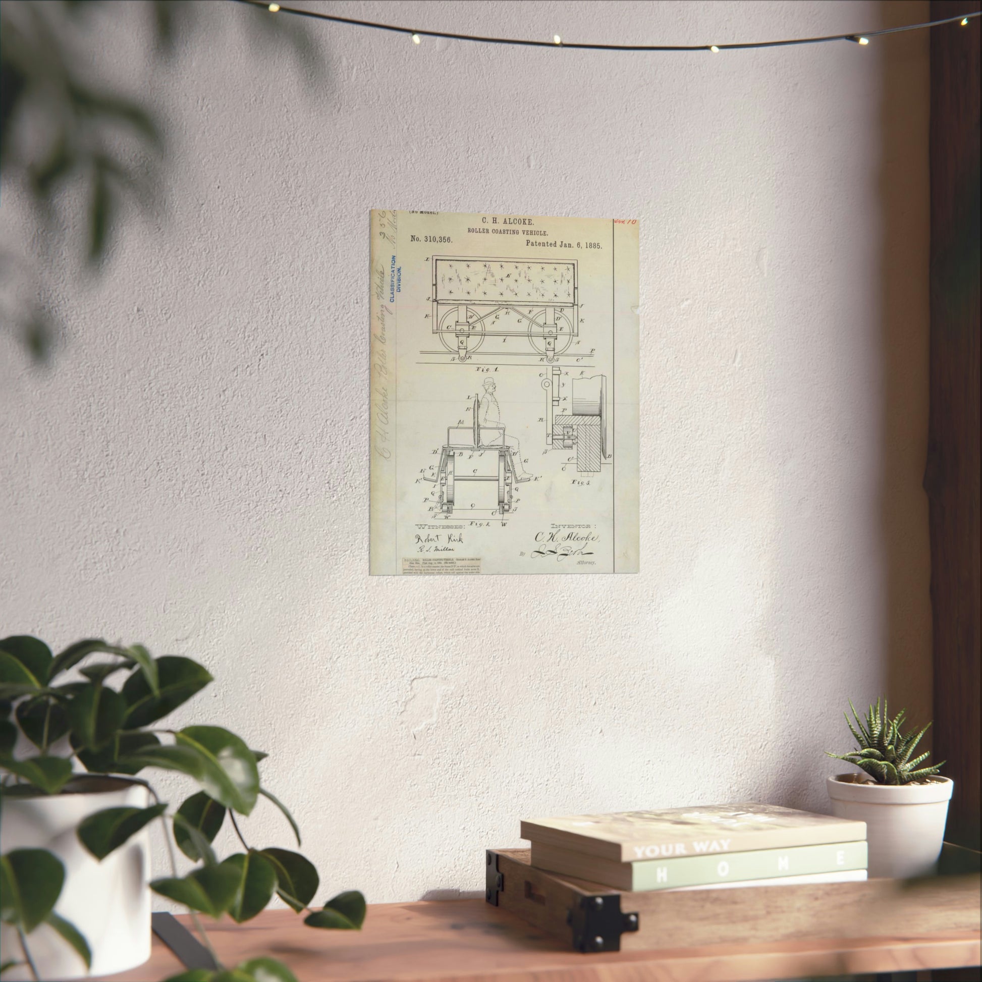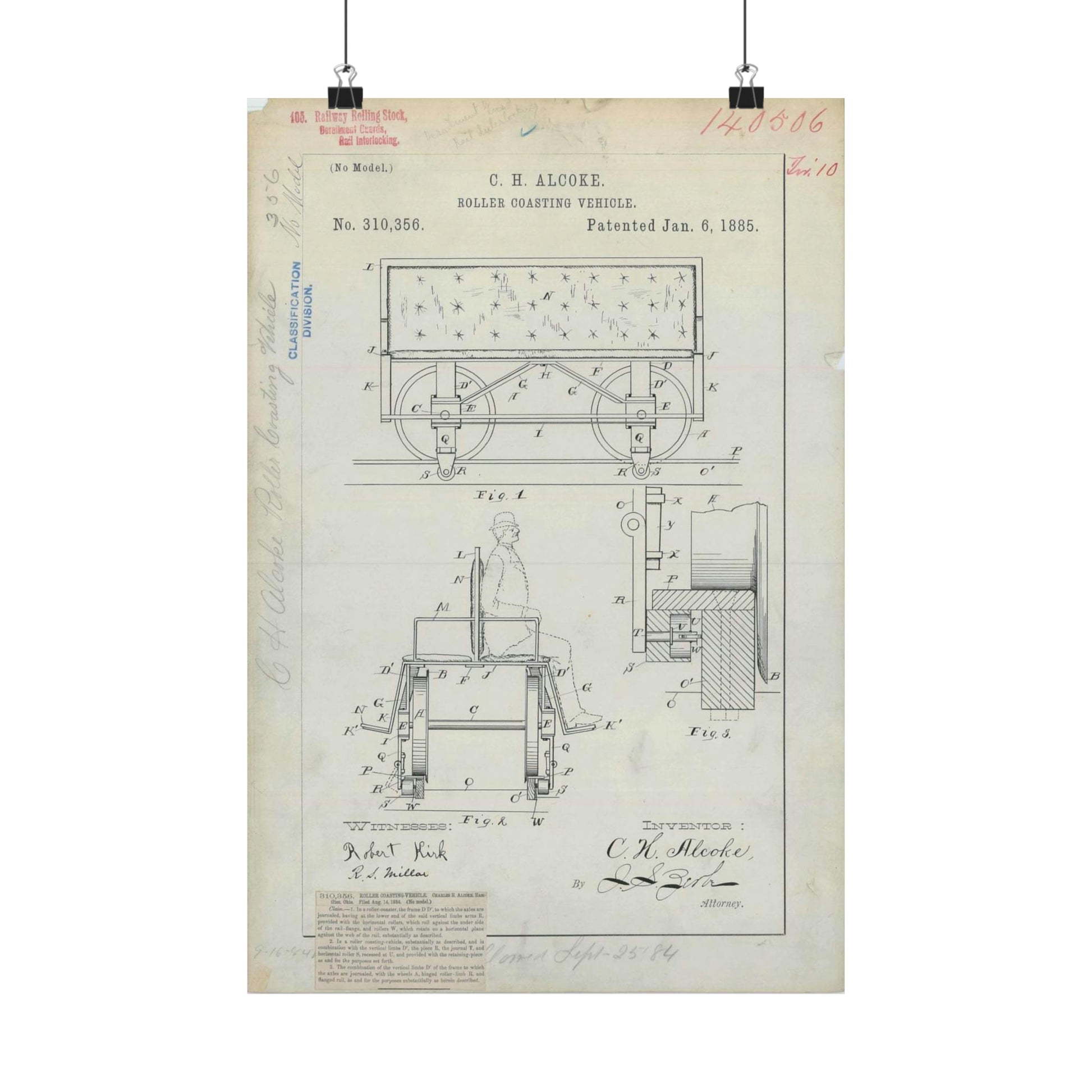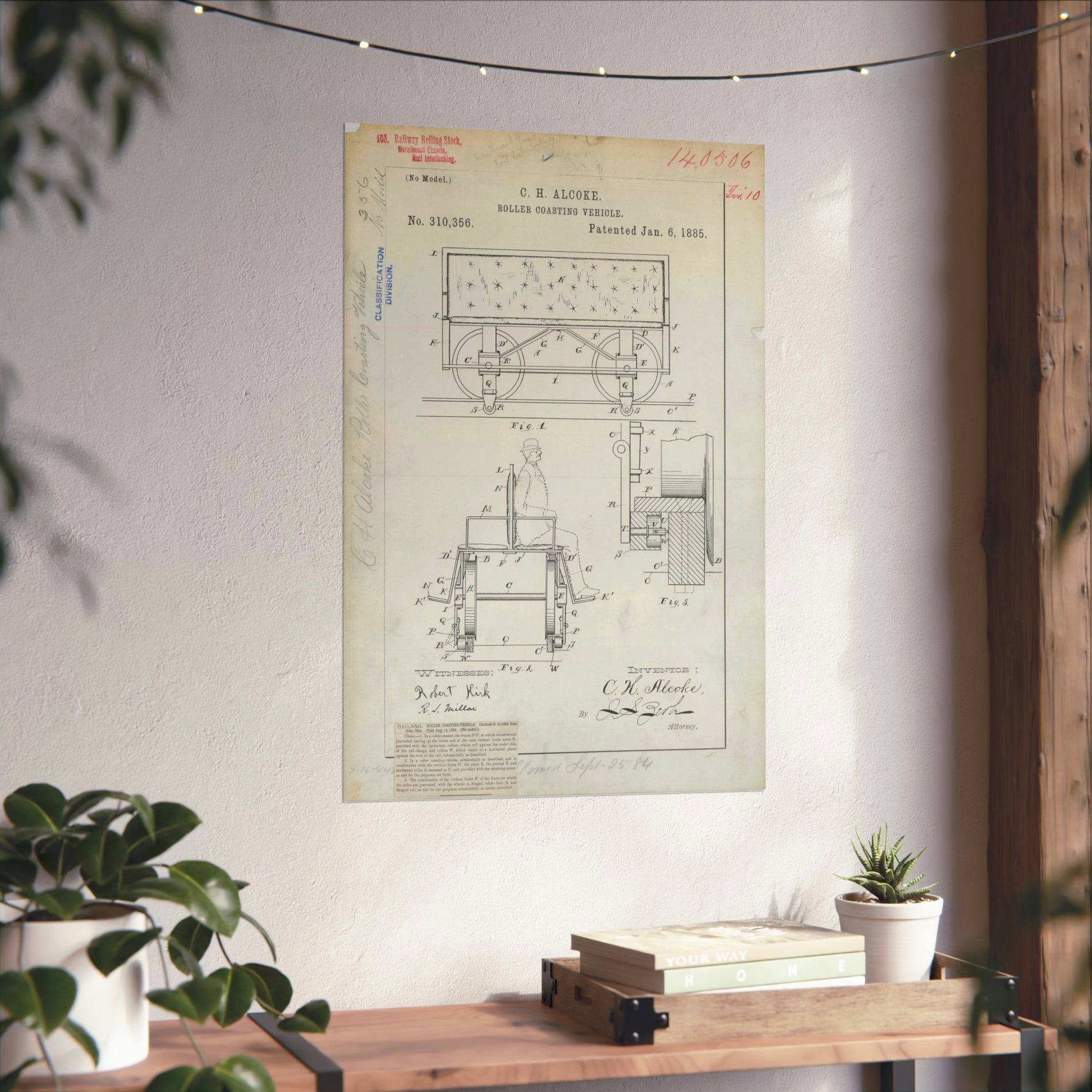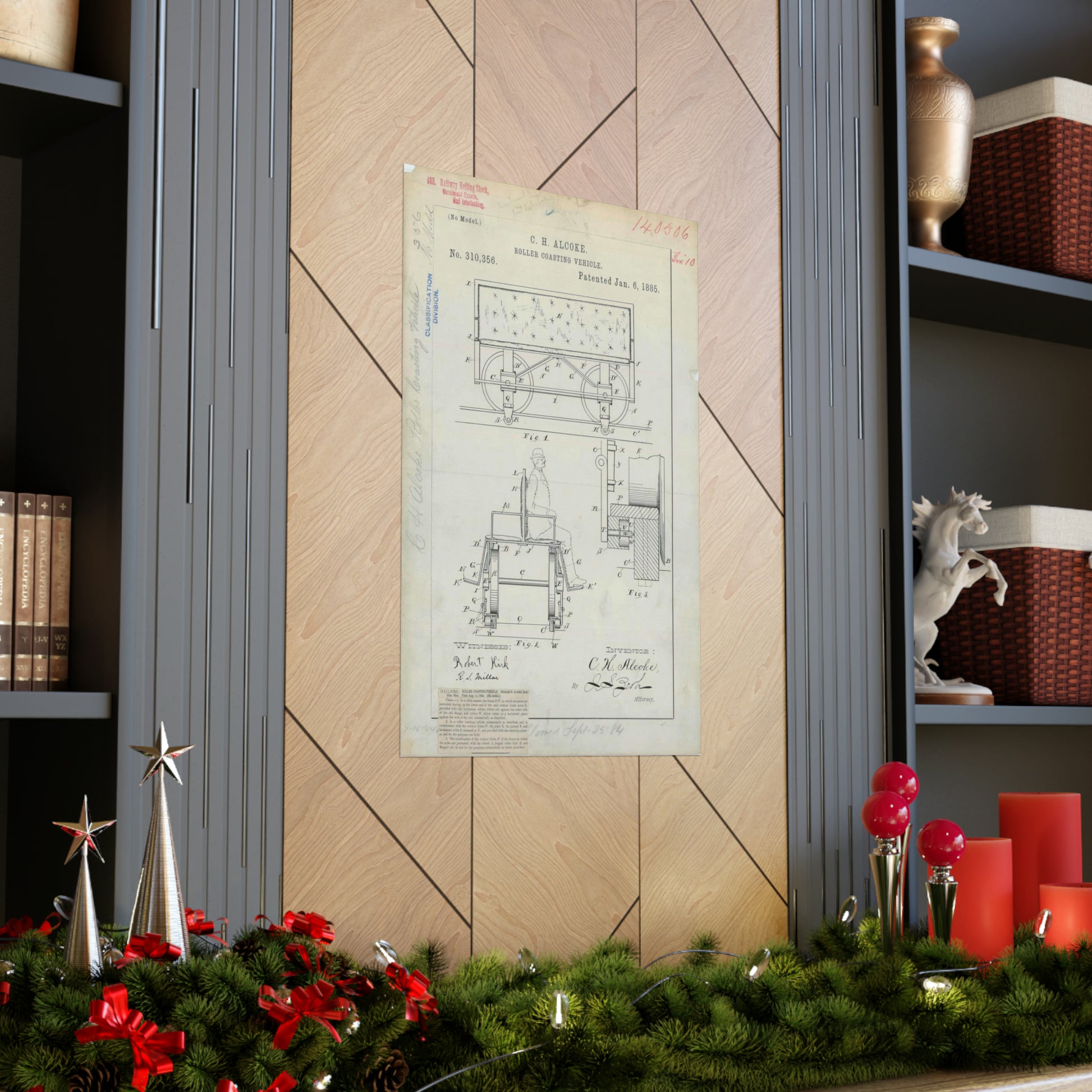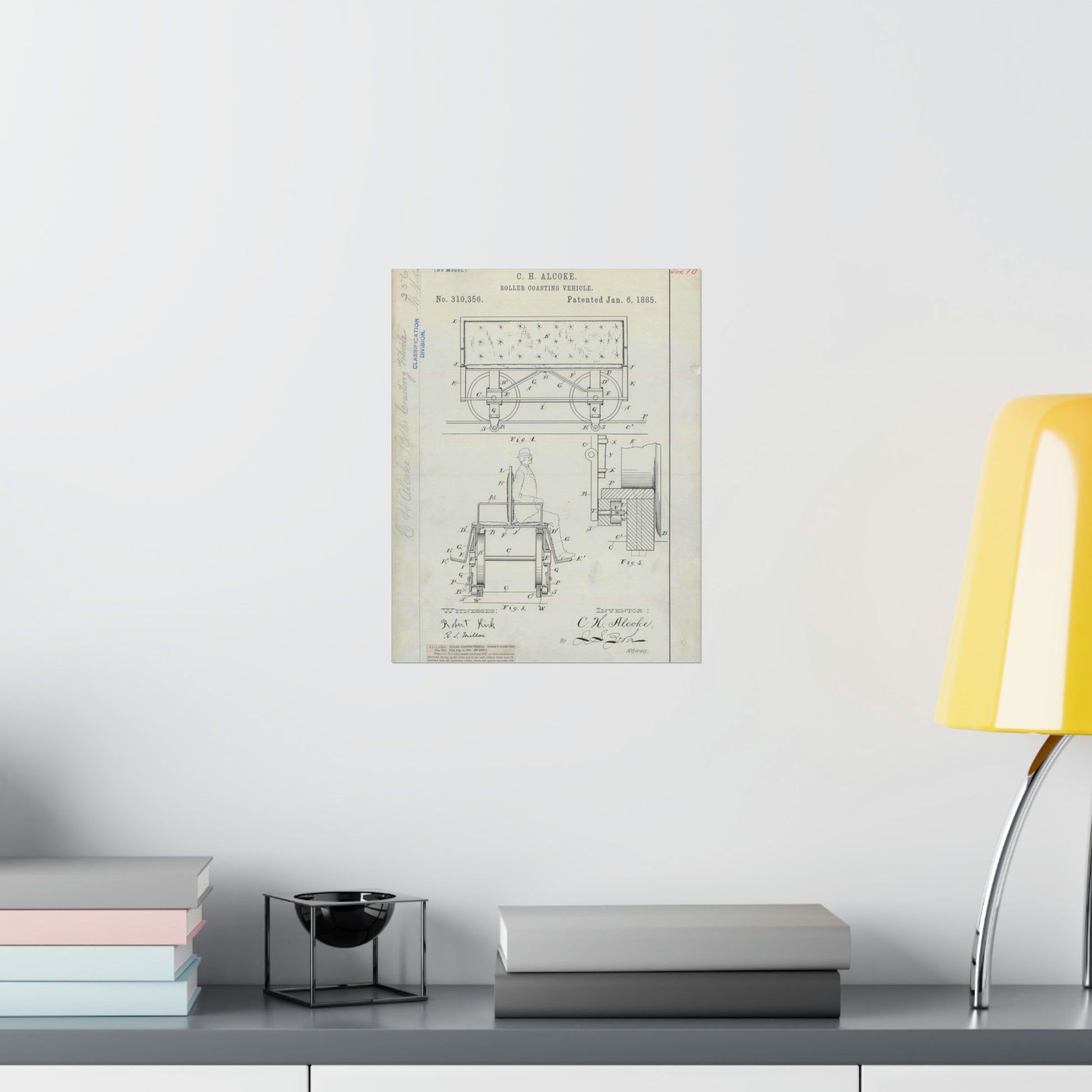 Patent Drawing of Engine - for C. H. Alcoke's Roller Coasting Vehicle Public domain image High Quality Matte Wall Art Poster for Home, Office, Classroom