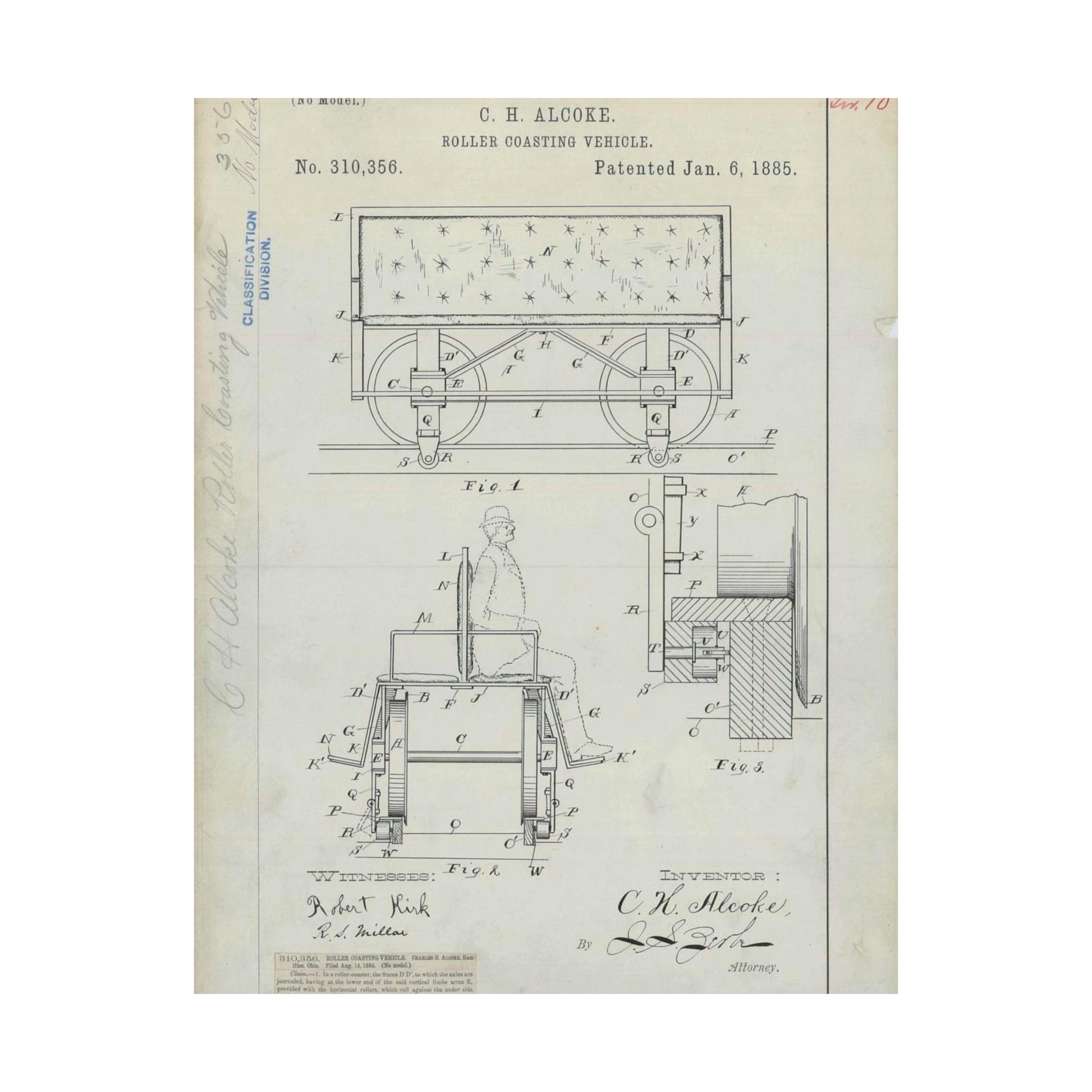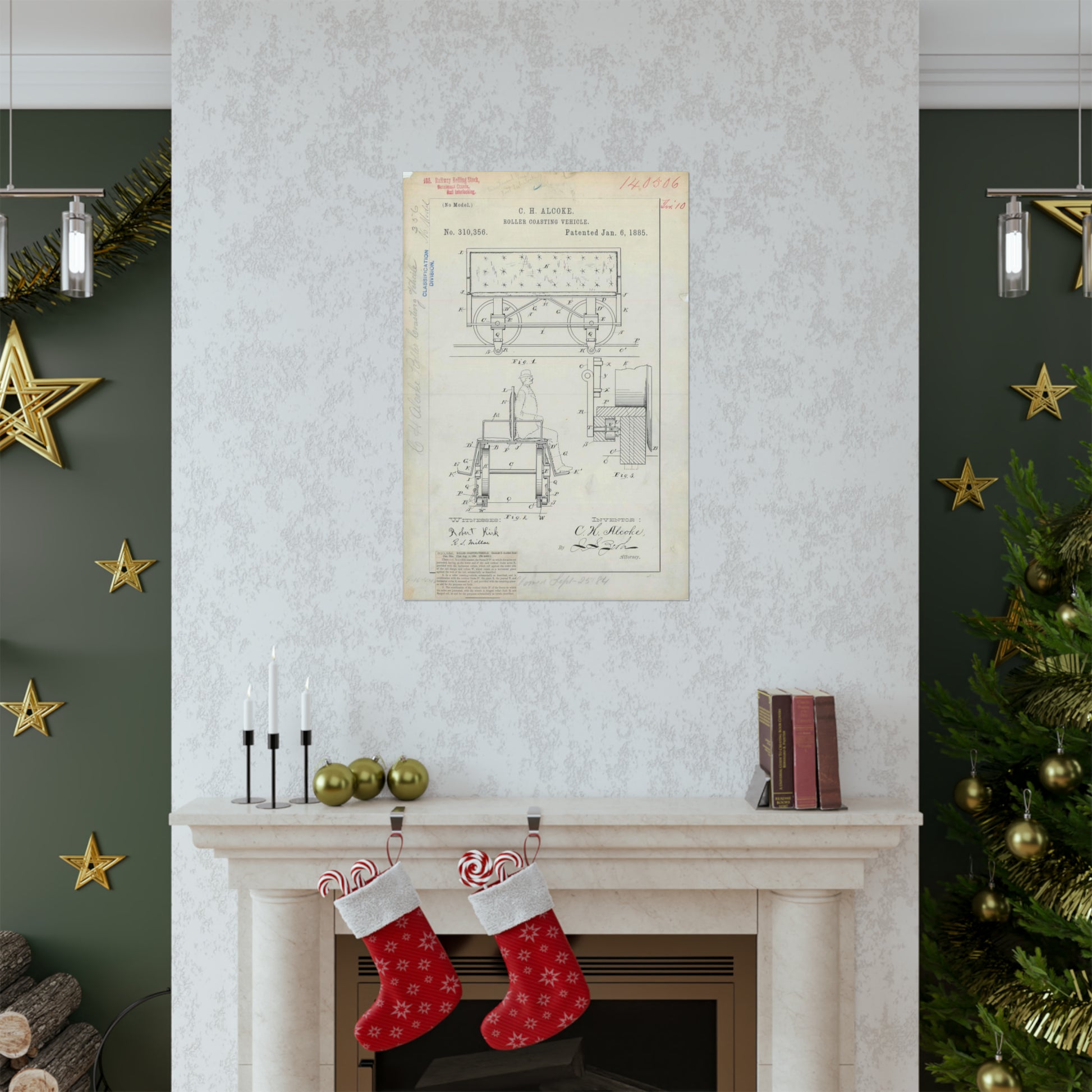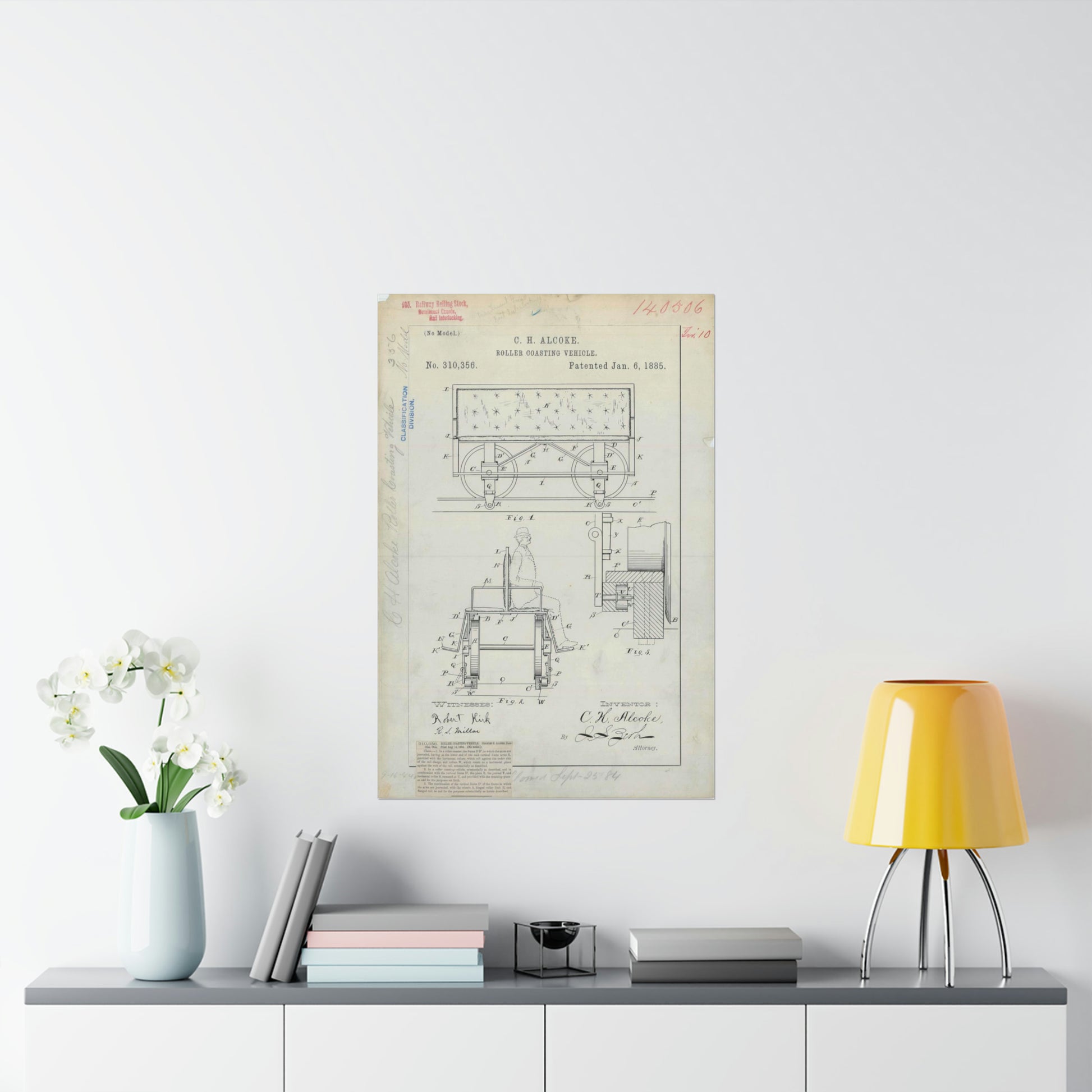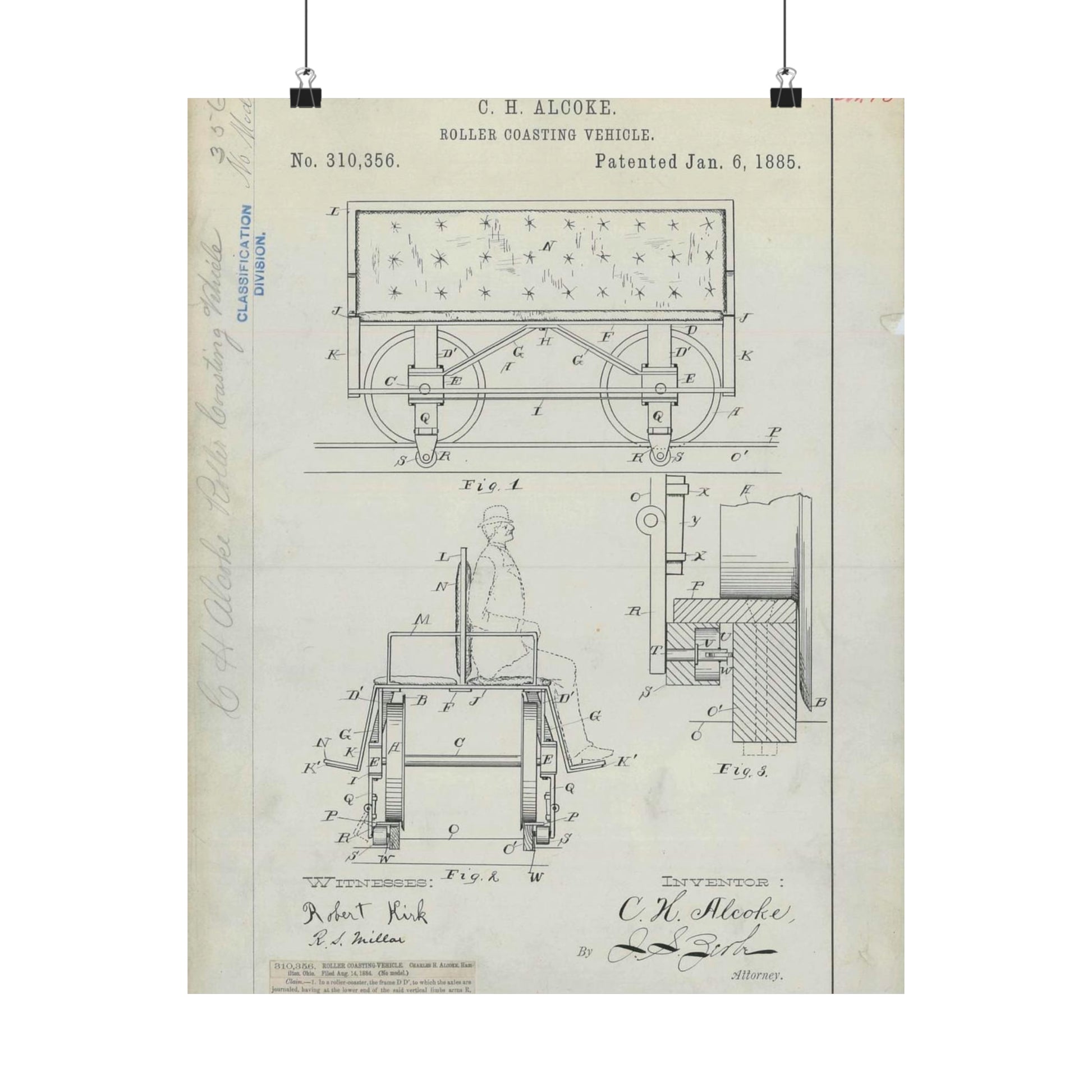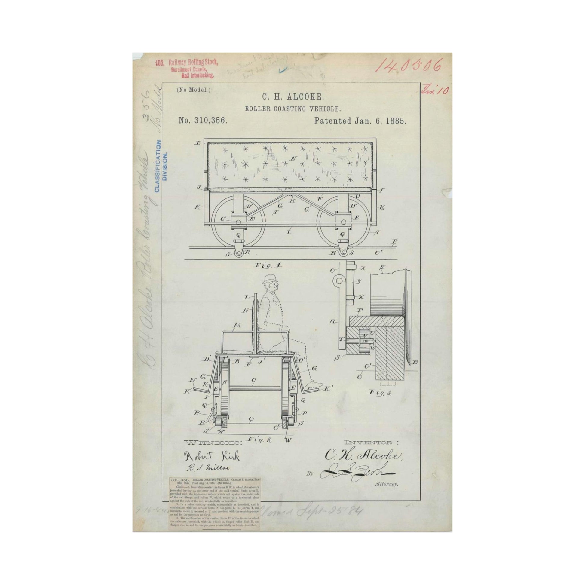 Patent Drawing of Engine - for C. H. Alcoke's Roller Coasting Vehicle Public domain image High Quality Matte Wall Art Poster for Home, Office, Classroom