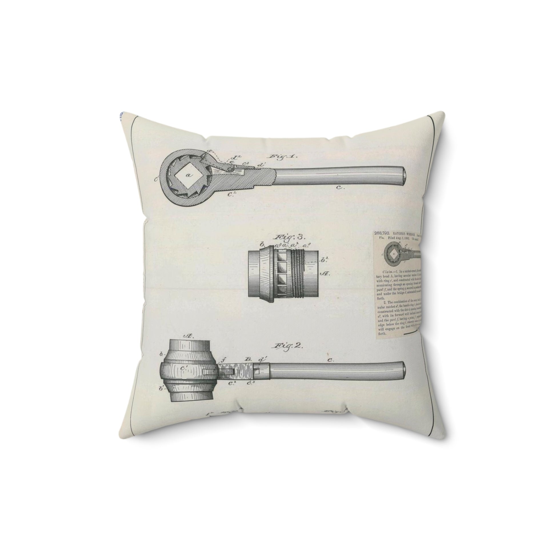 Patent Drawing of Engine - for J. B. Halbert's Ratchet Wrench Public domain image Decorative Accent Square Pillow