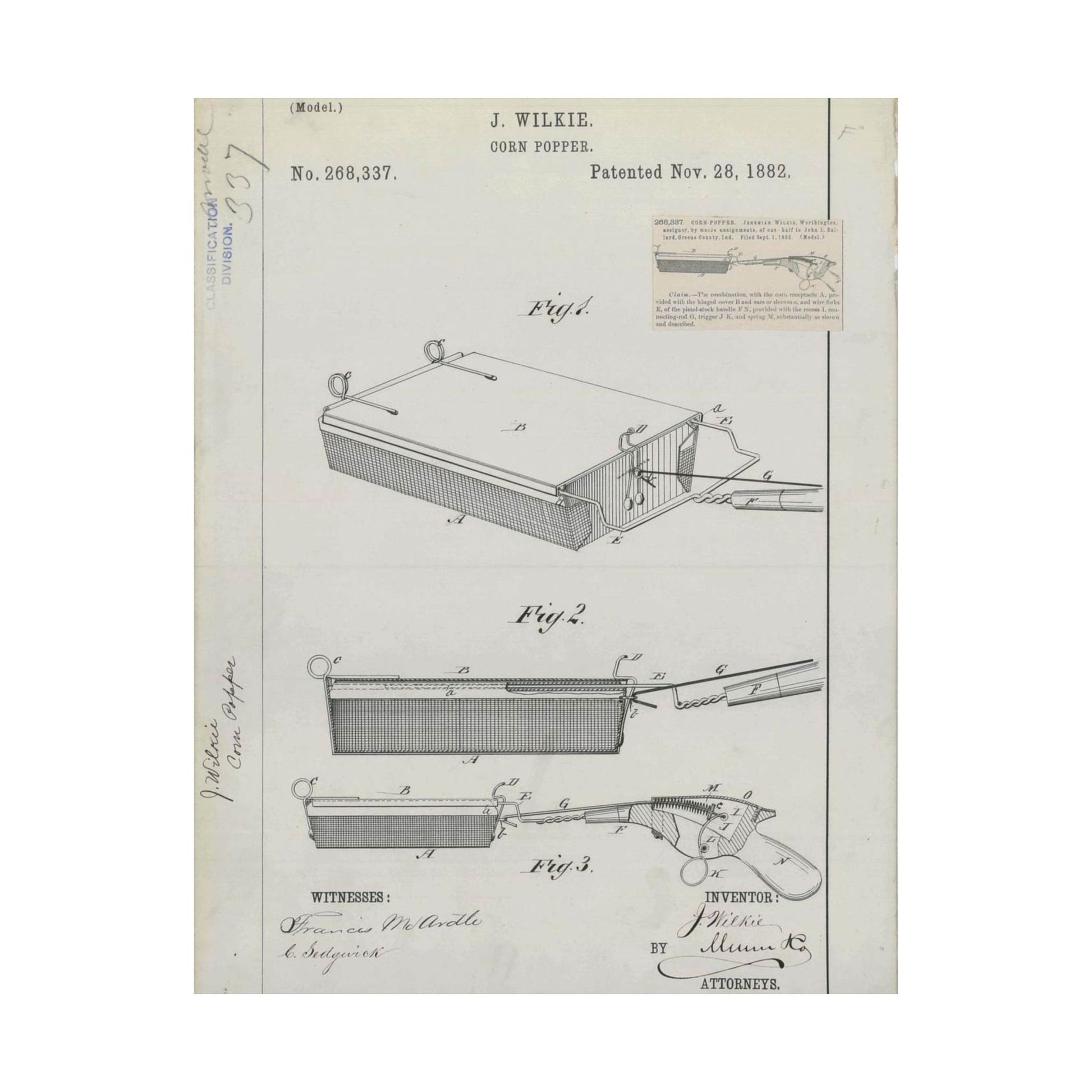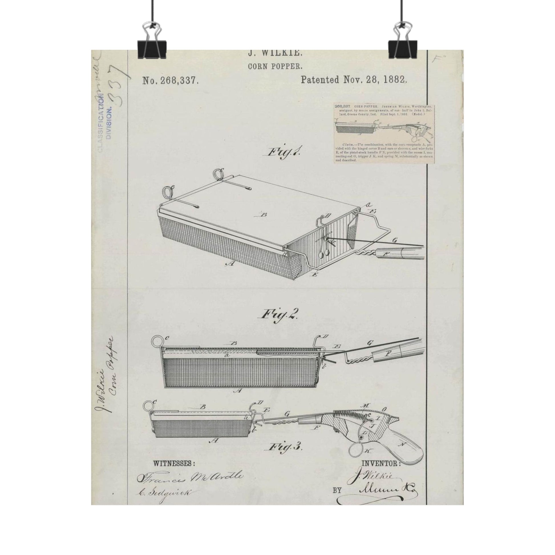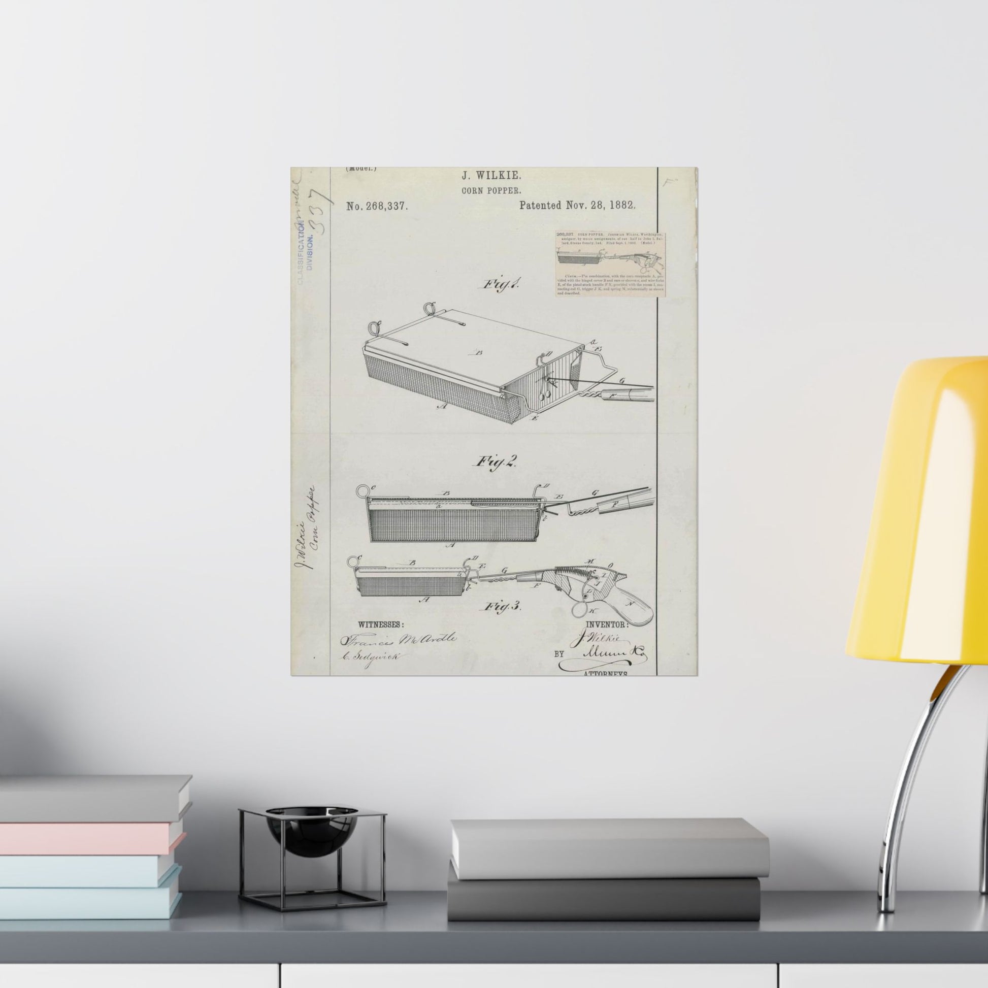 Patent Drawing of Engine - for J. Wilkie's Corn Popper Public domain image High Quality Matte Wall Art Poster for Home, Office, Classroom