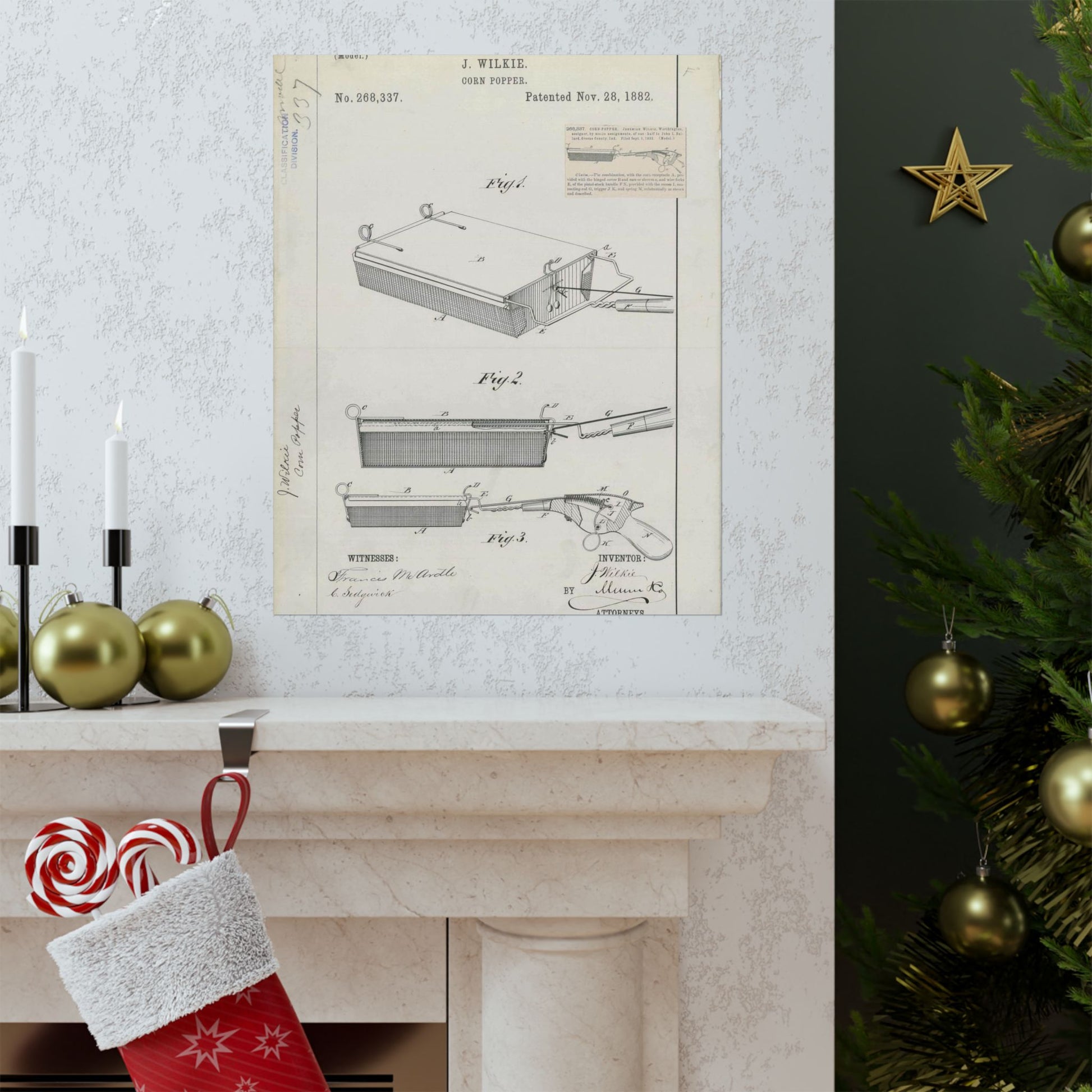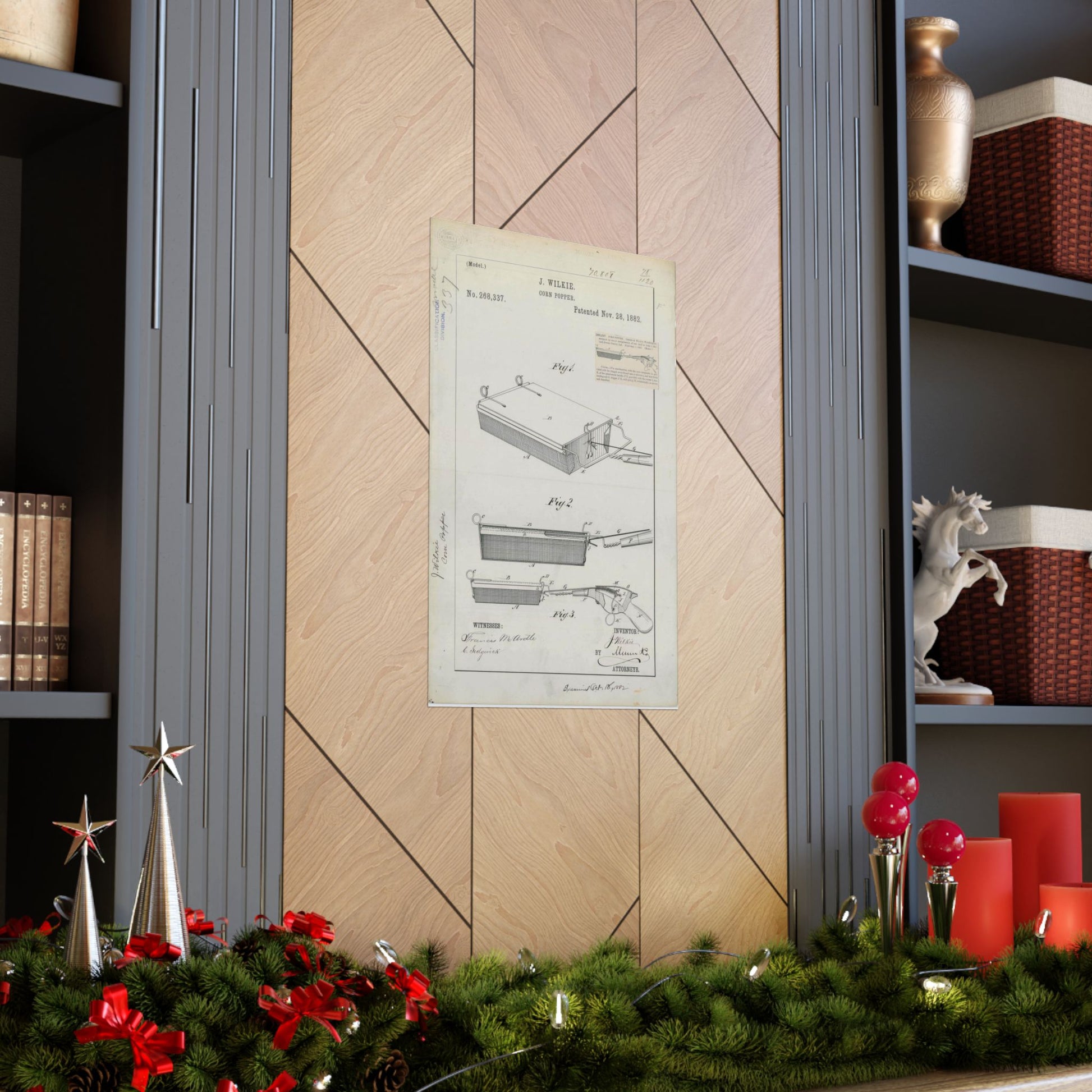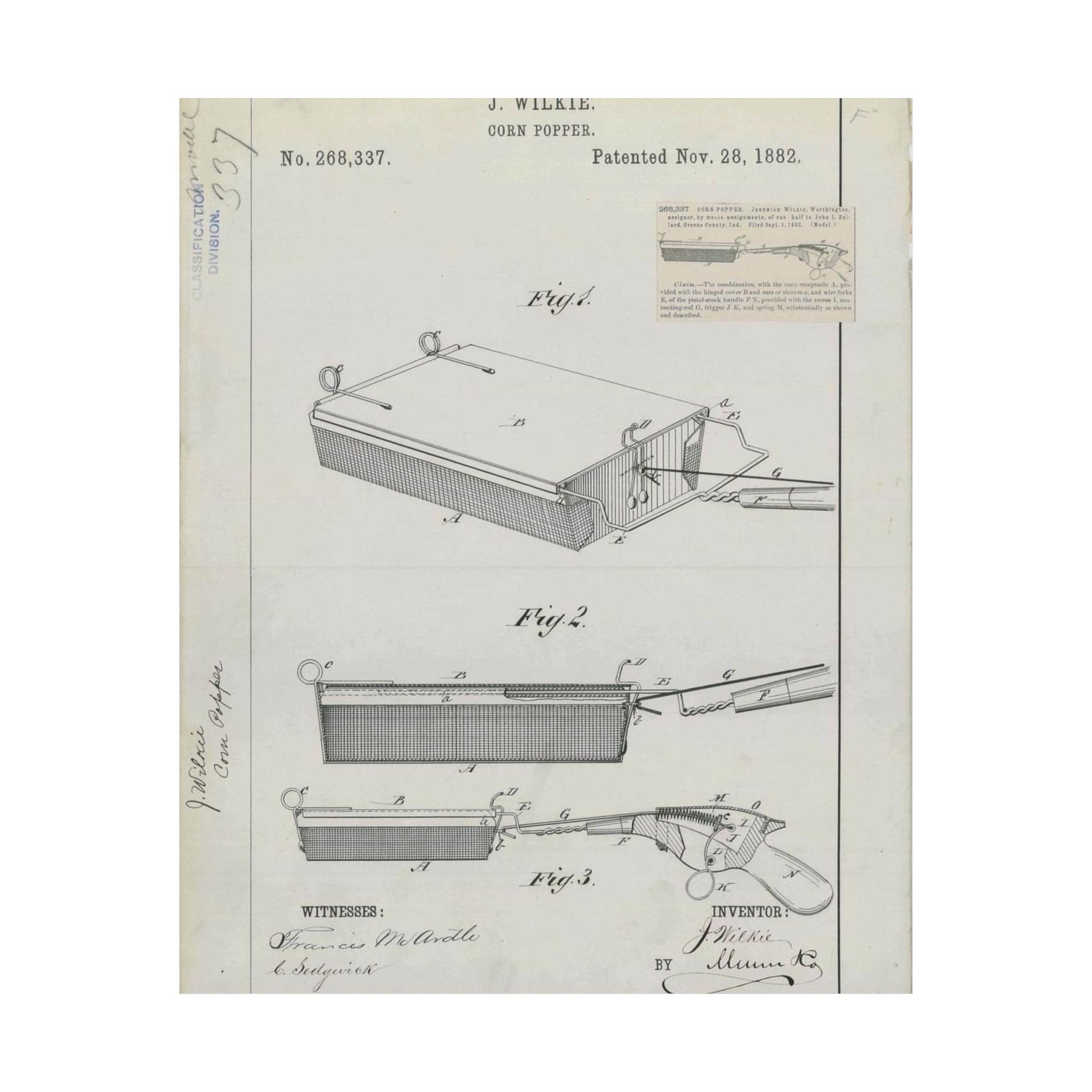 Patent Drawing of Engine - for J. Wilkie's Corn Popper Public domain image High Quality Matte Wall Art Poster for Home, Office, Classroom