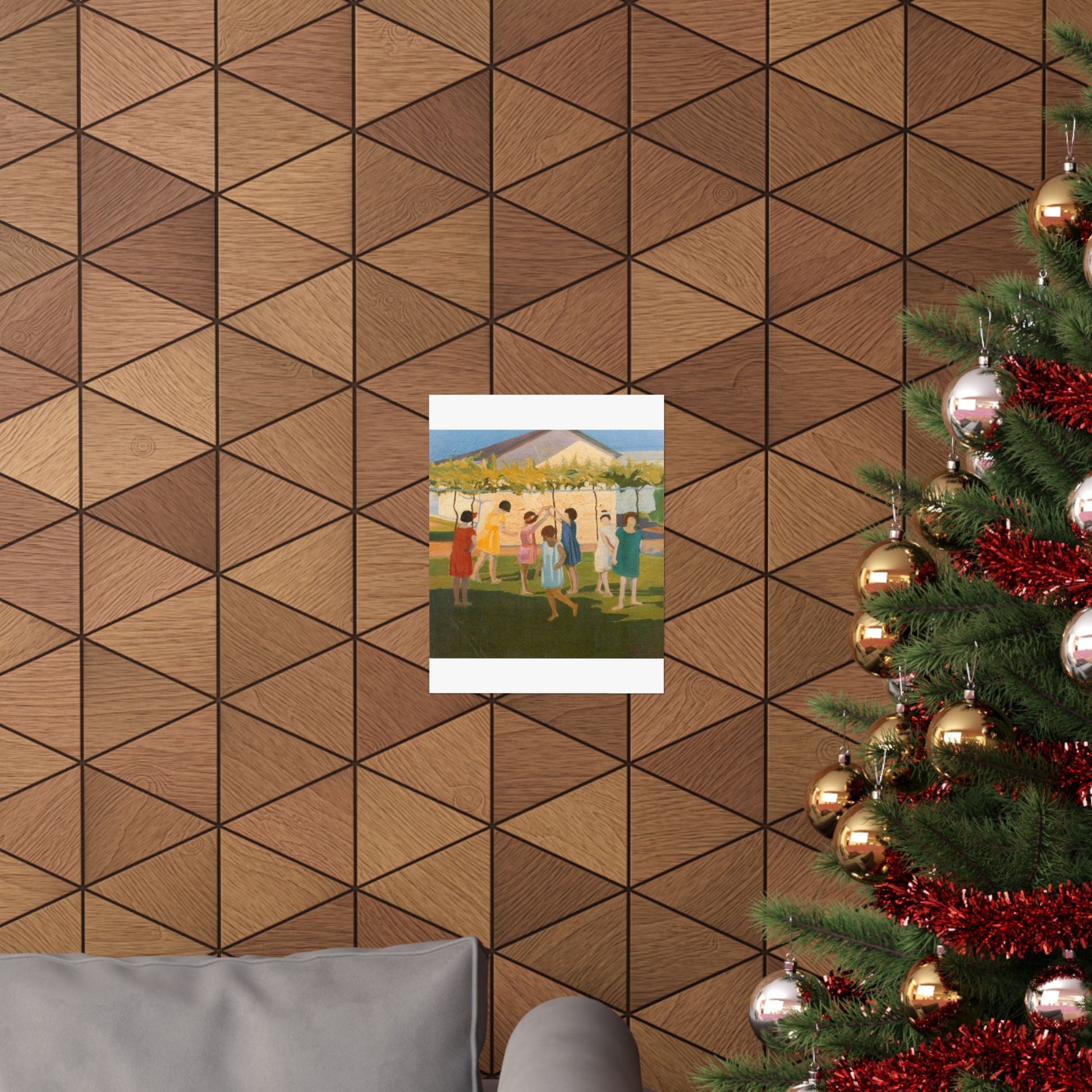 Petrona Viera - A painting of a group of children playing with a kite High Quality Matte Wall Art Poster for Home, Office, Classroom