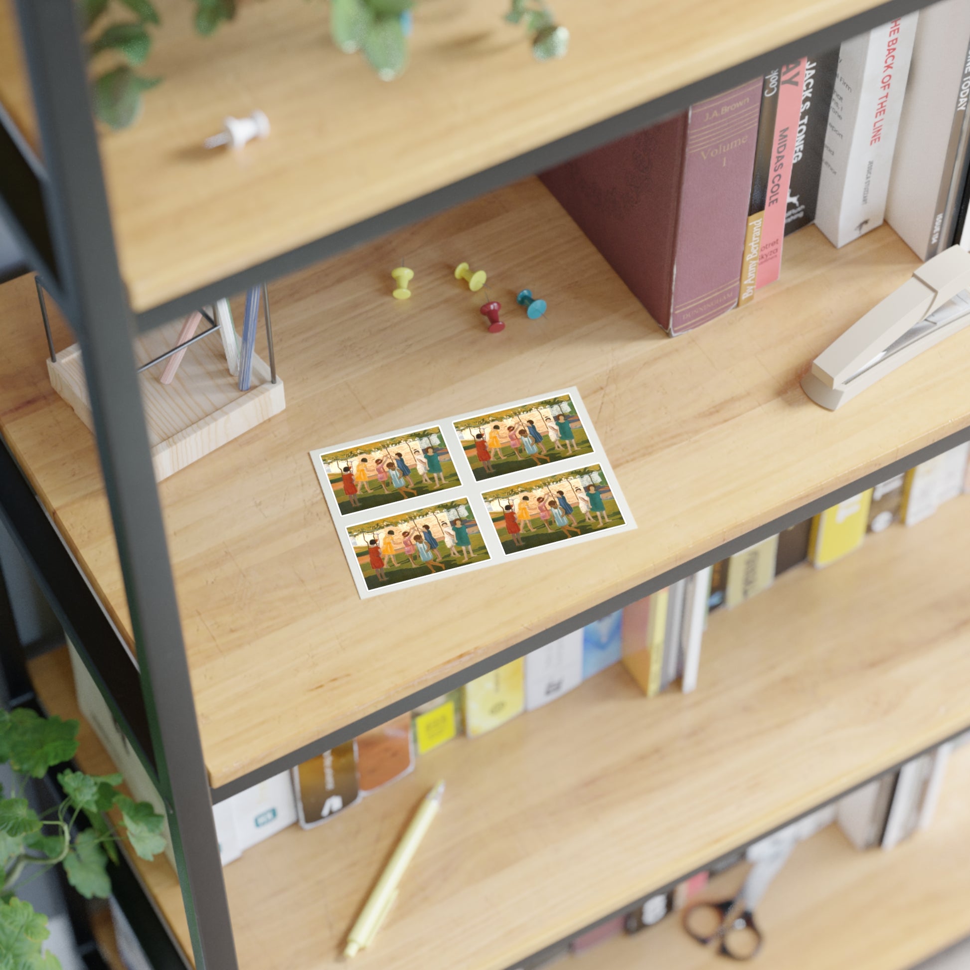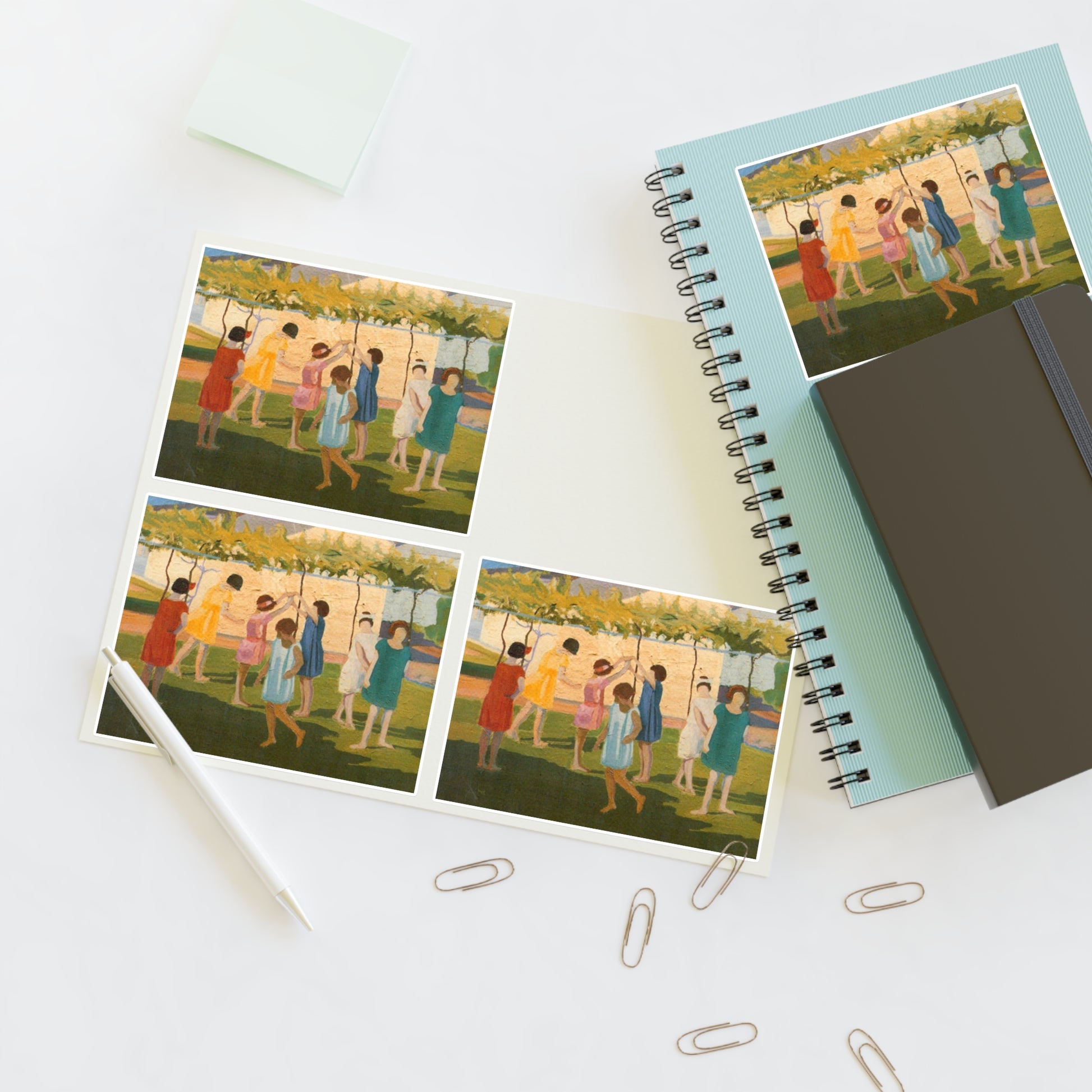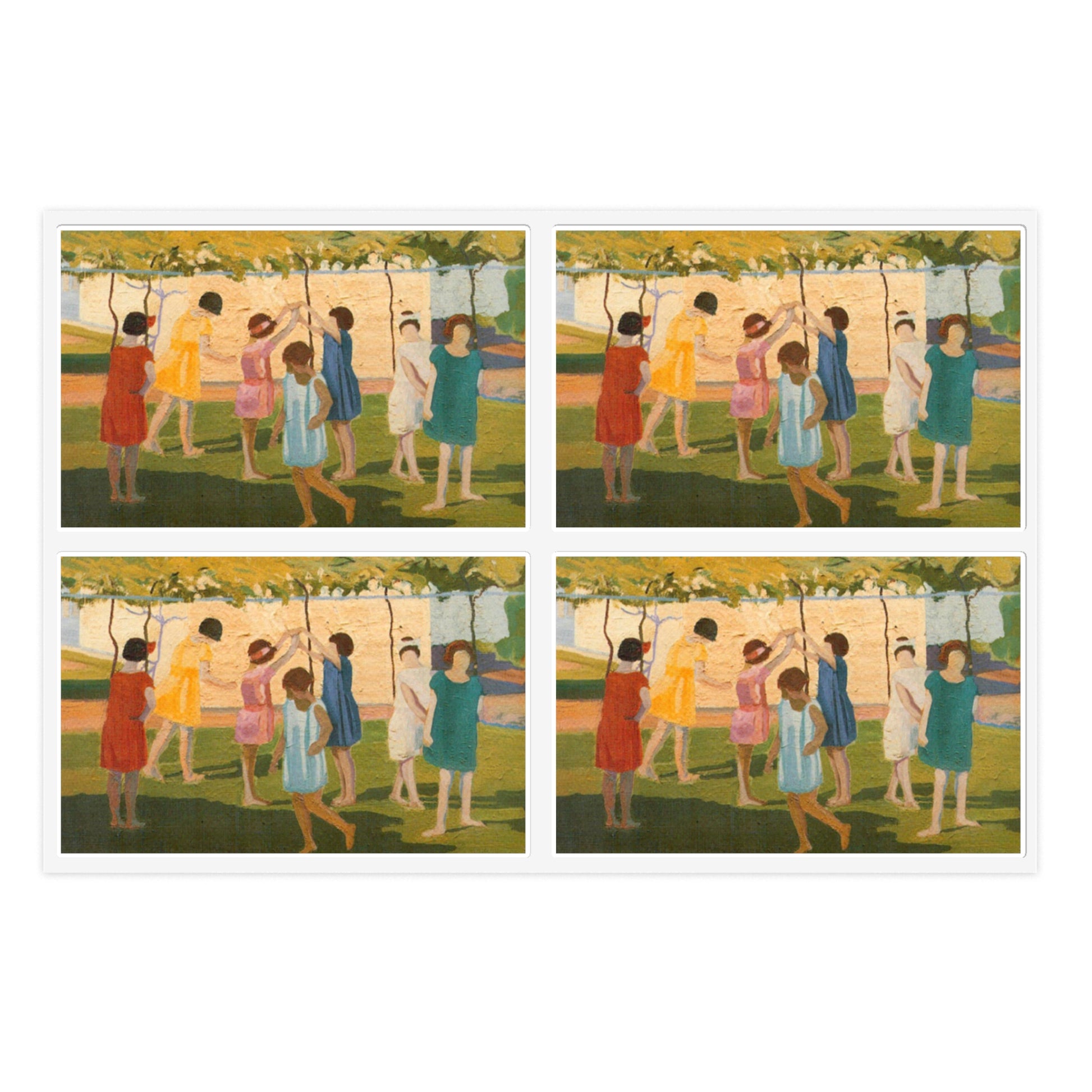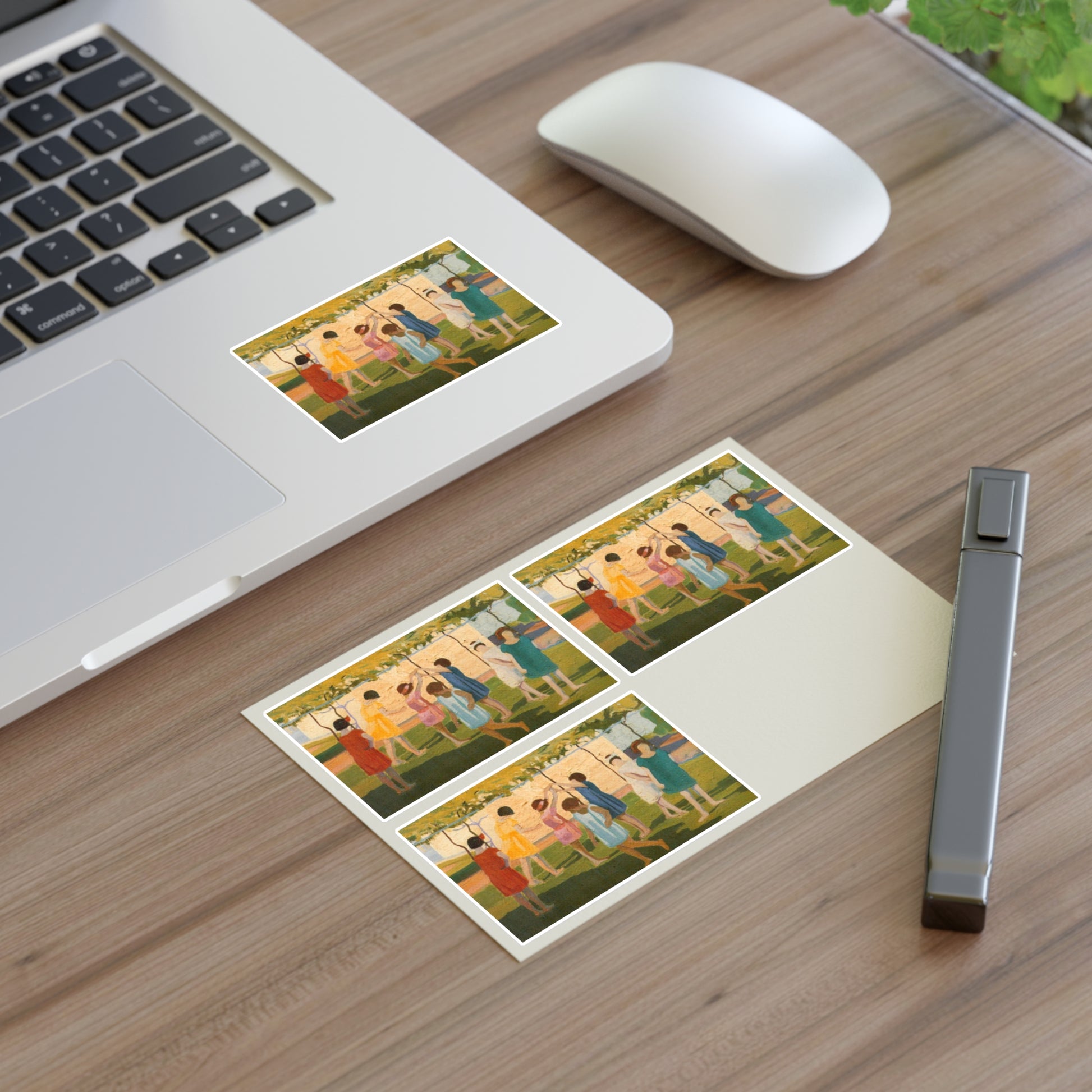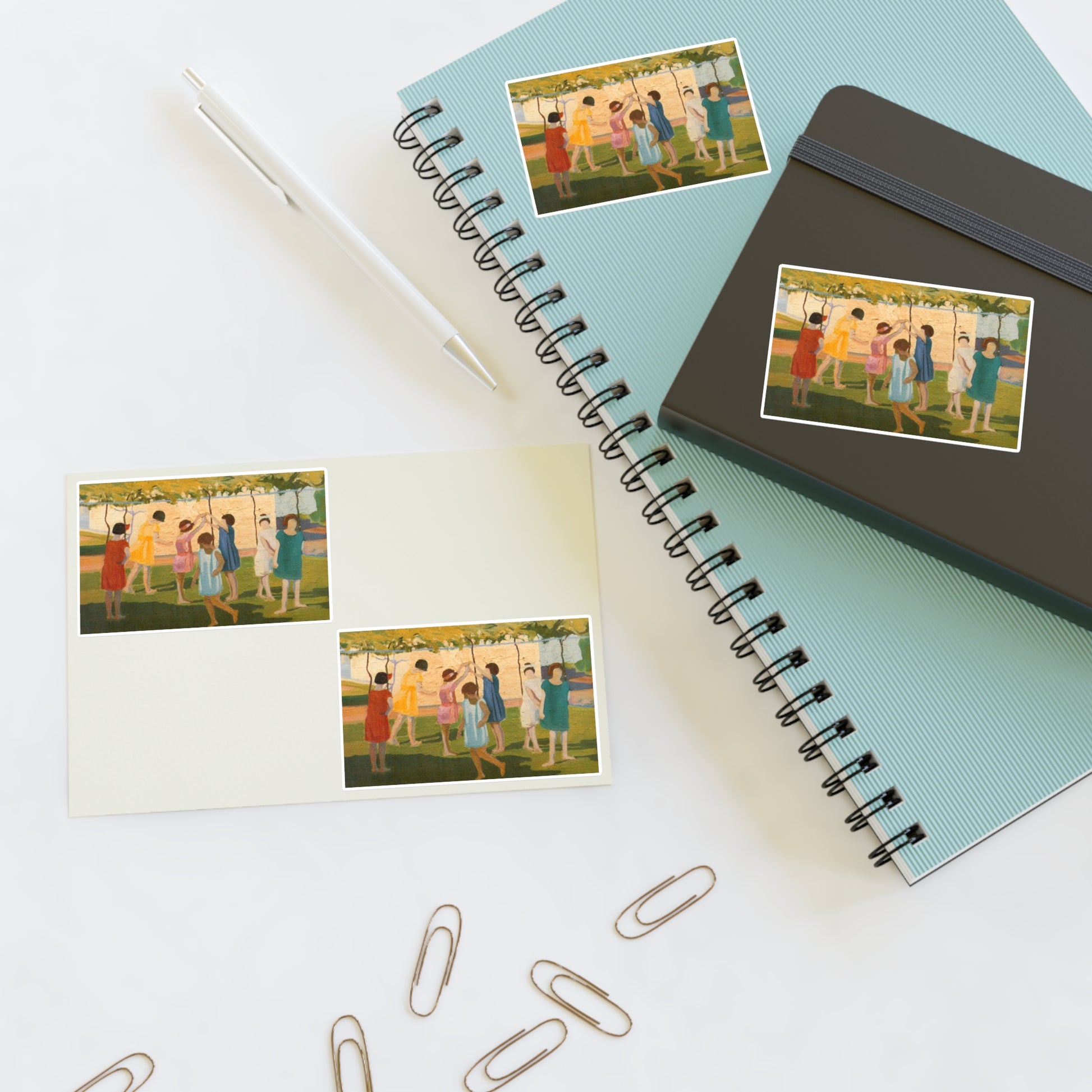 Petrona Viera - A painting of a group of children playing with a kite Laminated UV Protective Vinyl Stickers