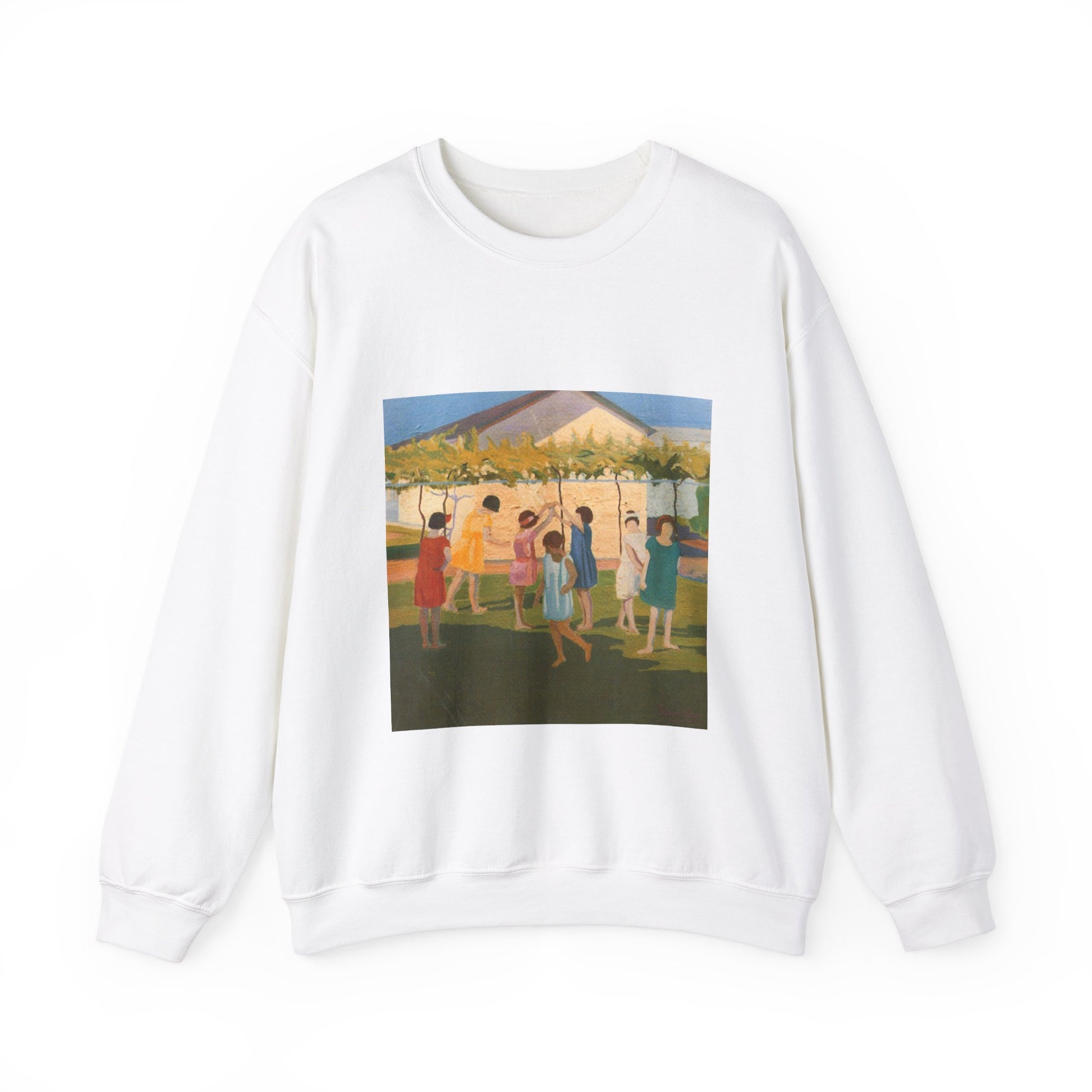 Petrona Viera - A painting of a group of children playing with a kite White Heavy Blend Adult Crew Neck SweatShirt