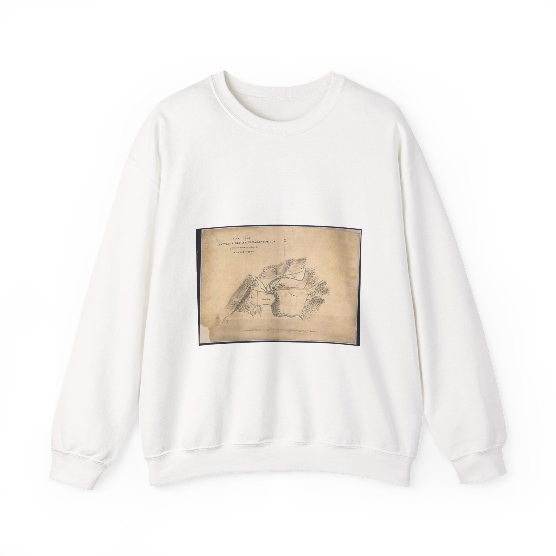 Plan of the Battle Field at Pleasant Mills near Cumberland, Md. August 1st, 1864. White Heavy Blend Adult Crew Neck SweatShirt