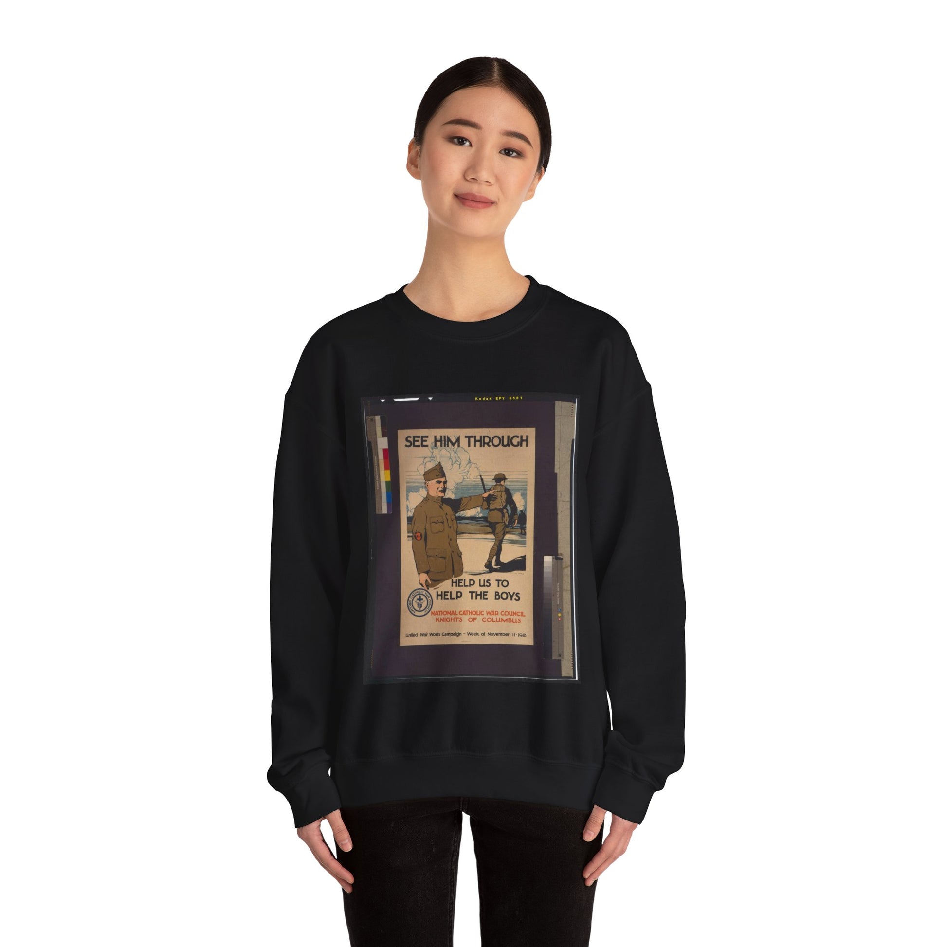 See him through--Help us to help the boys / Burton Rice ; American Lithographic Co., N.Y. Black Heavy Blend Adult Crew Neck SweatShirt