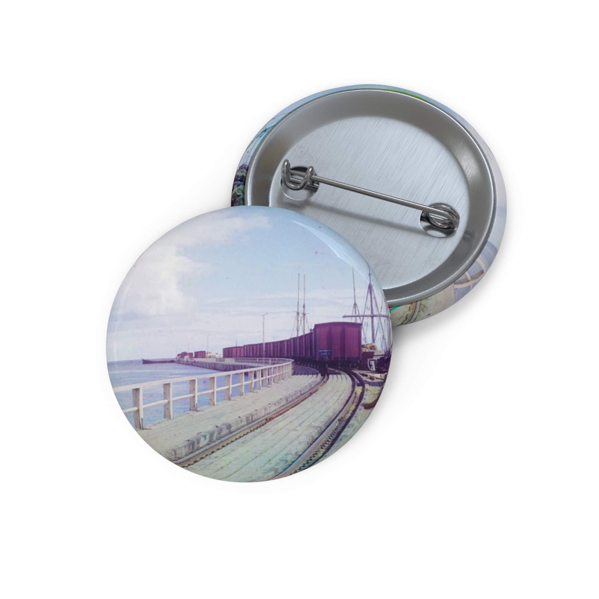 Sorochya Bay. Railroad dam in the Soroka inlet. Arkhangelsk Province, Russia. Pin Buttons with Crisp Design