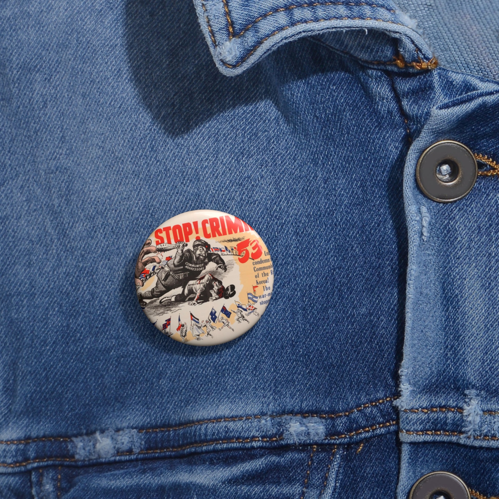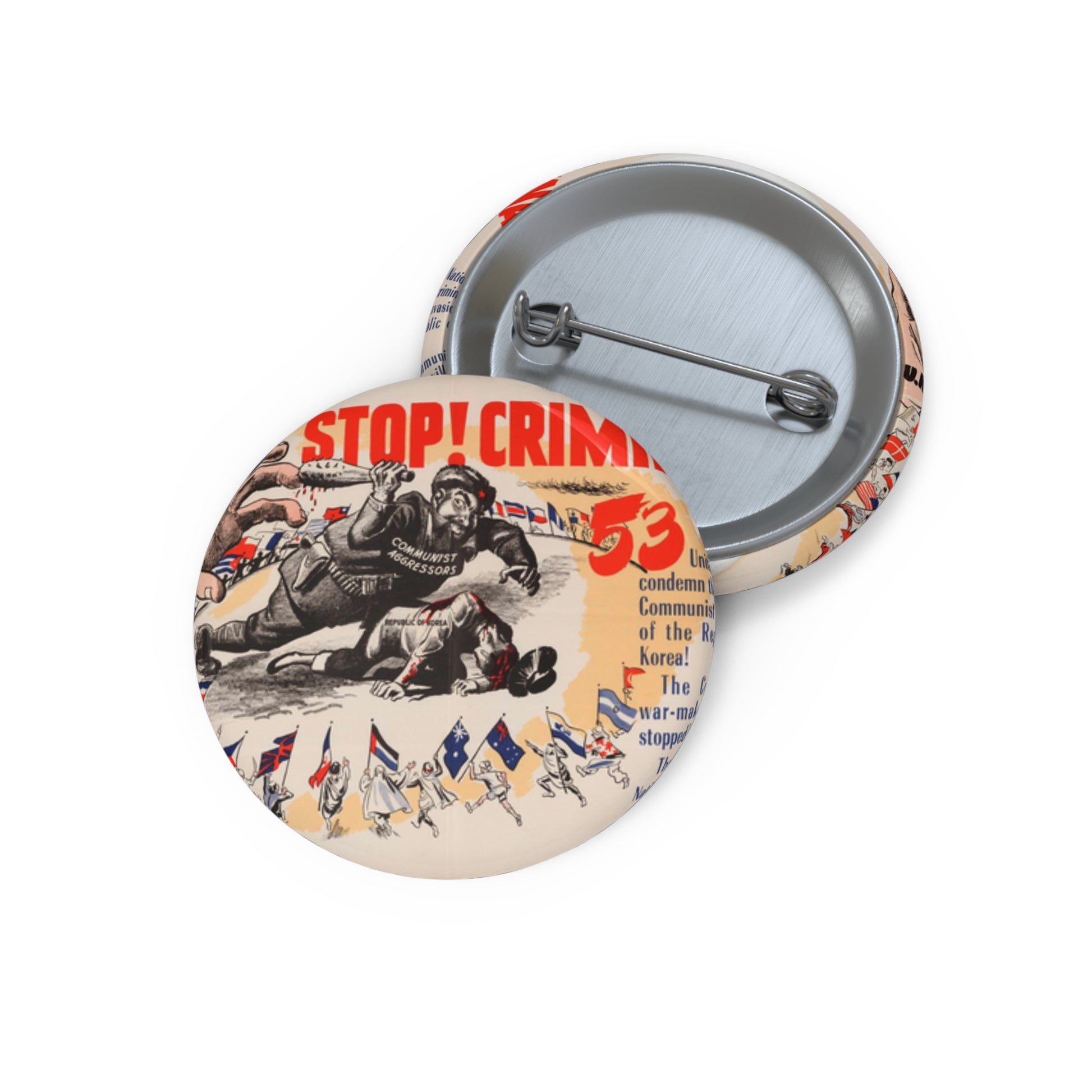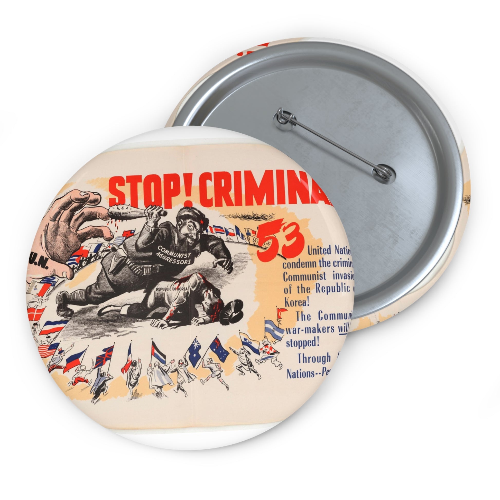 Stop Criminal!, Cold War American Propaganda poster Pin Buttons with Crisp Design