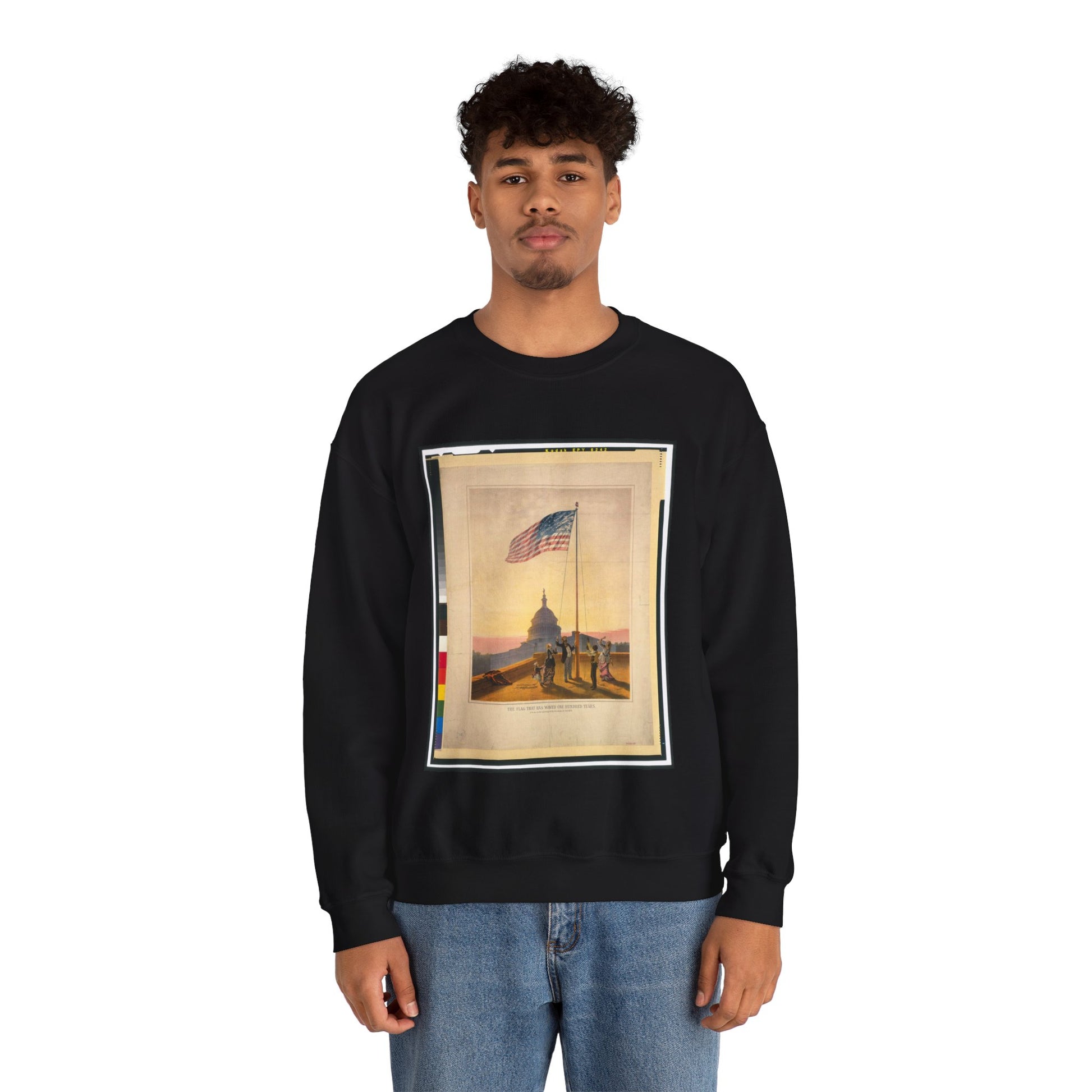 The flag that has waved one hundred years--A scene on the morning of the fourth day of July 1876 / Fabronius ; E.P. & L. Restein's oilchromo, Philadelphia. ; National Chromo Co. pub., Philadelphia. Black Heavy Blend Adult Crew Neck SweatShirt