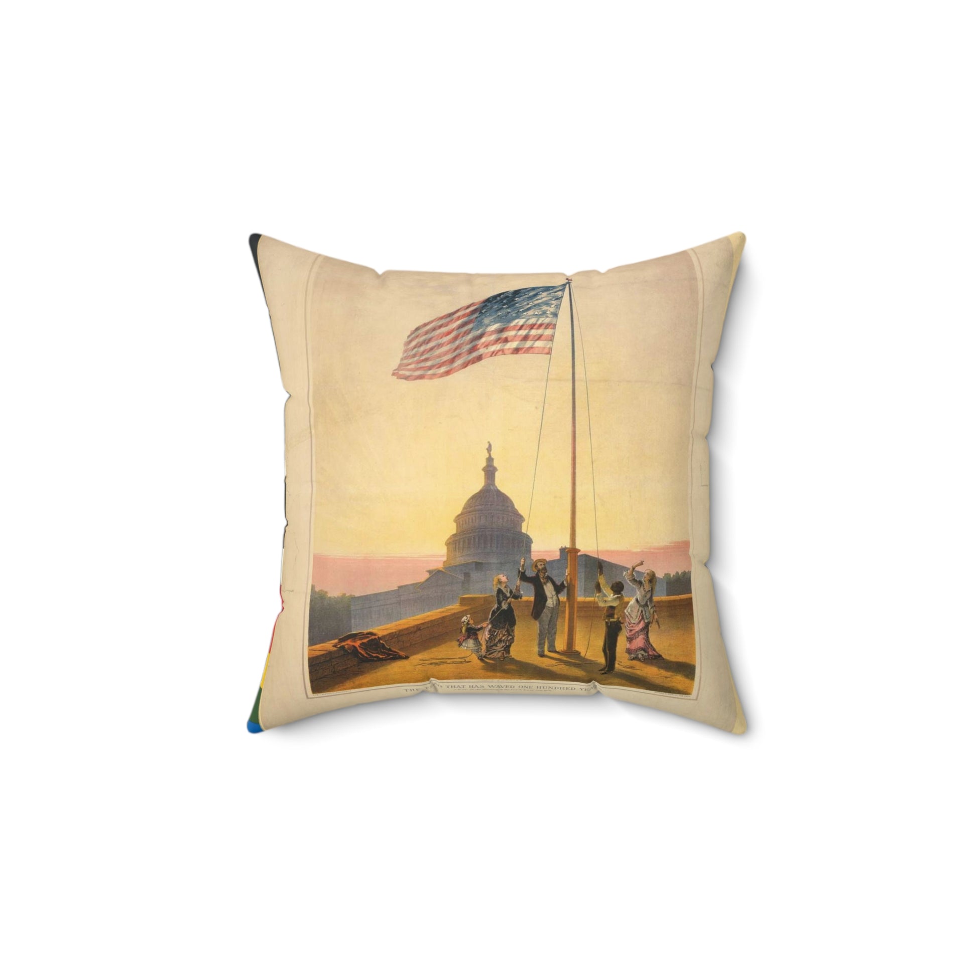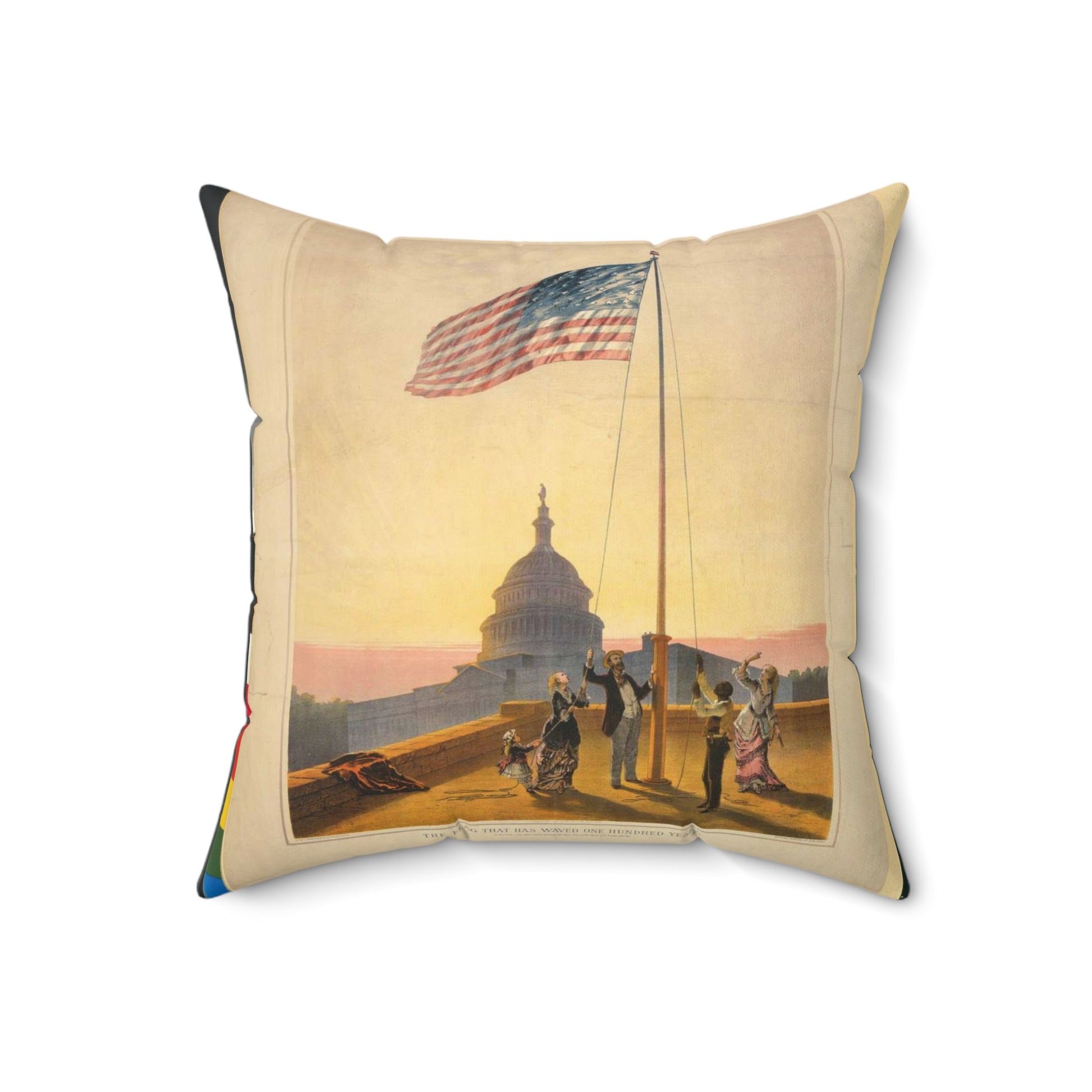 The flag that has waved one hundred years--A scene on the morning of the fourth day of July 1876 / Fabronius ; E.P. & L. Restein's oilchromo, Philadelphia. ; National Chromo Co. pub., Philadelphia. Decorative Accent Square Pillow