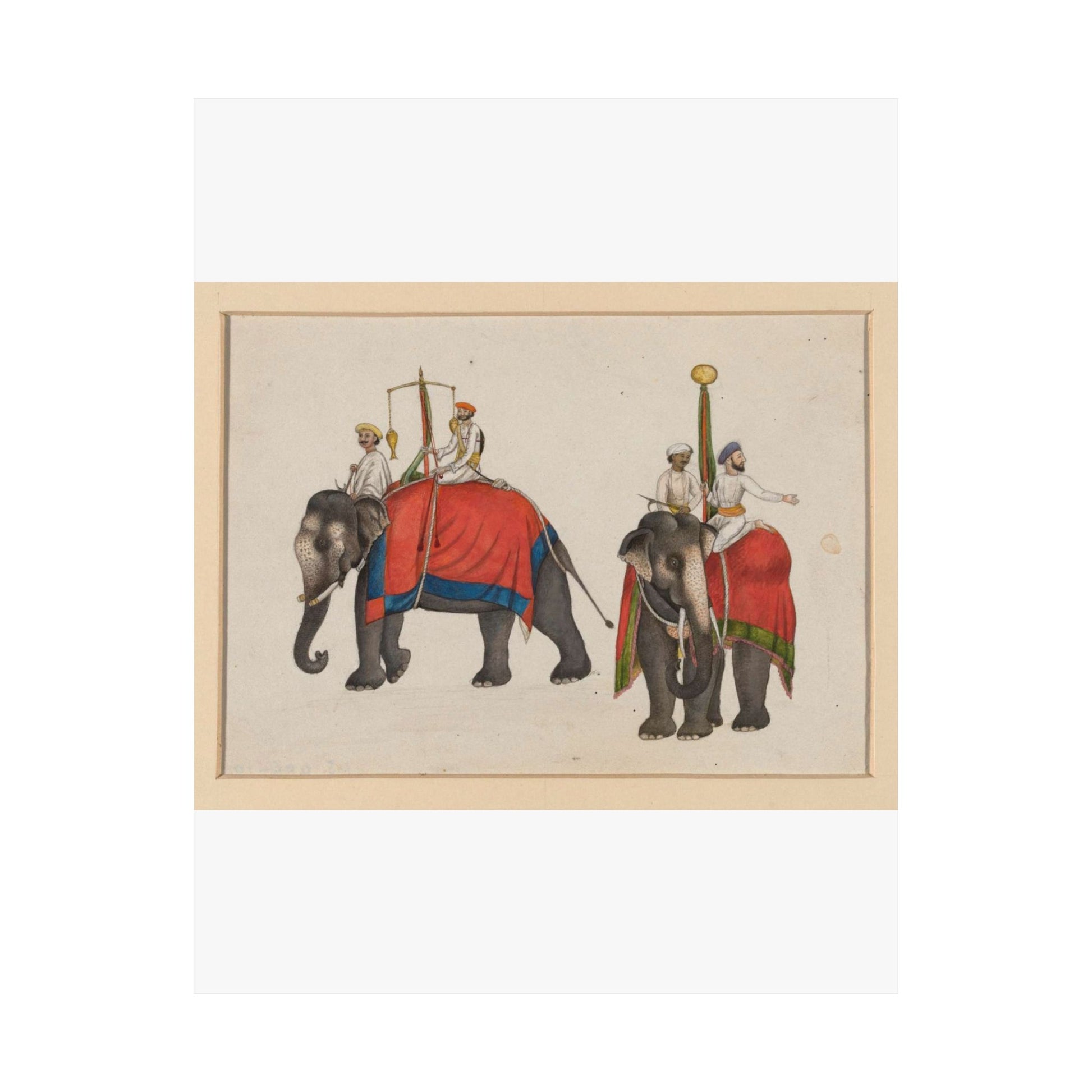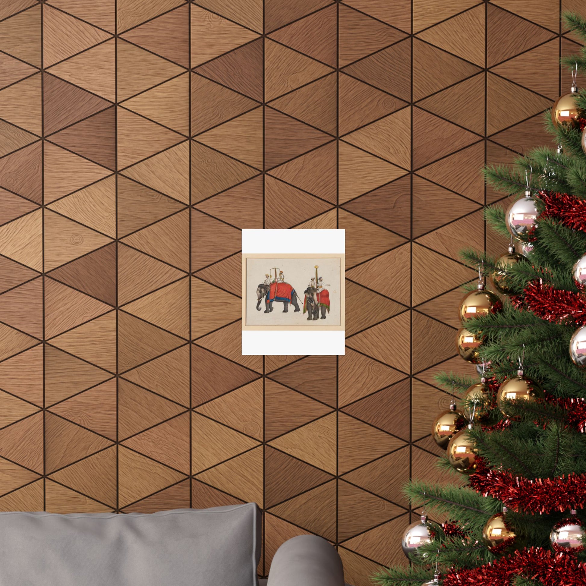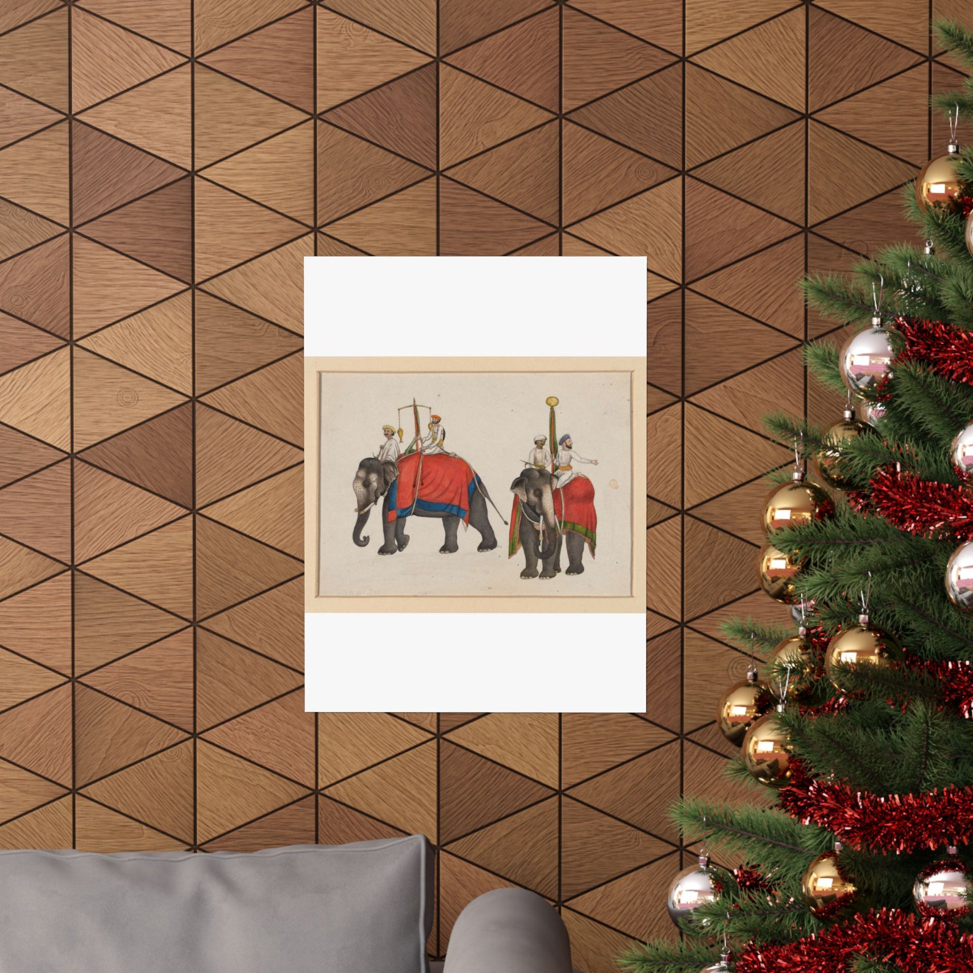 Two elephants carrying the fish and sun insignia of Mughal sovereignty High Quality Matte Wall Art Poster for Home, Office, Classroom