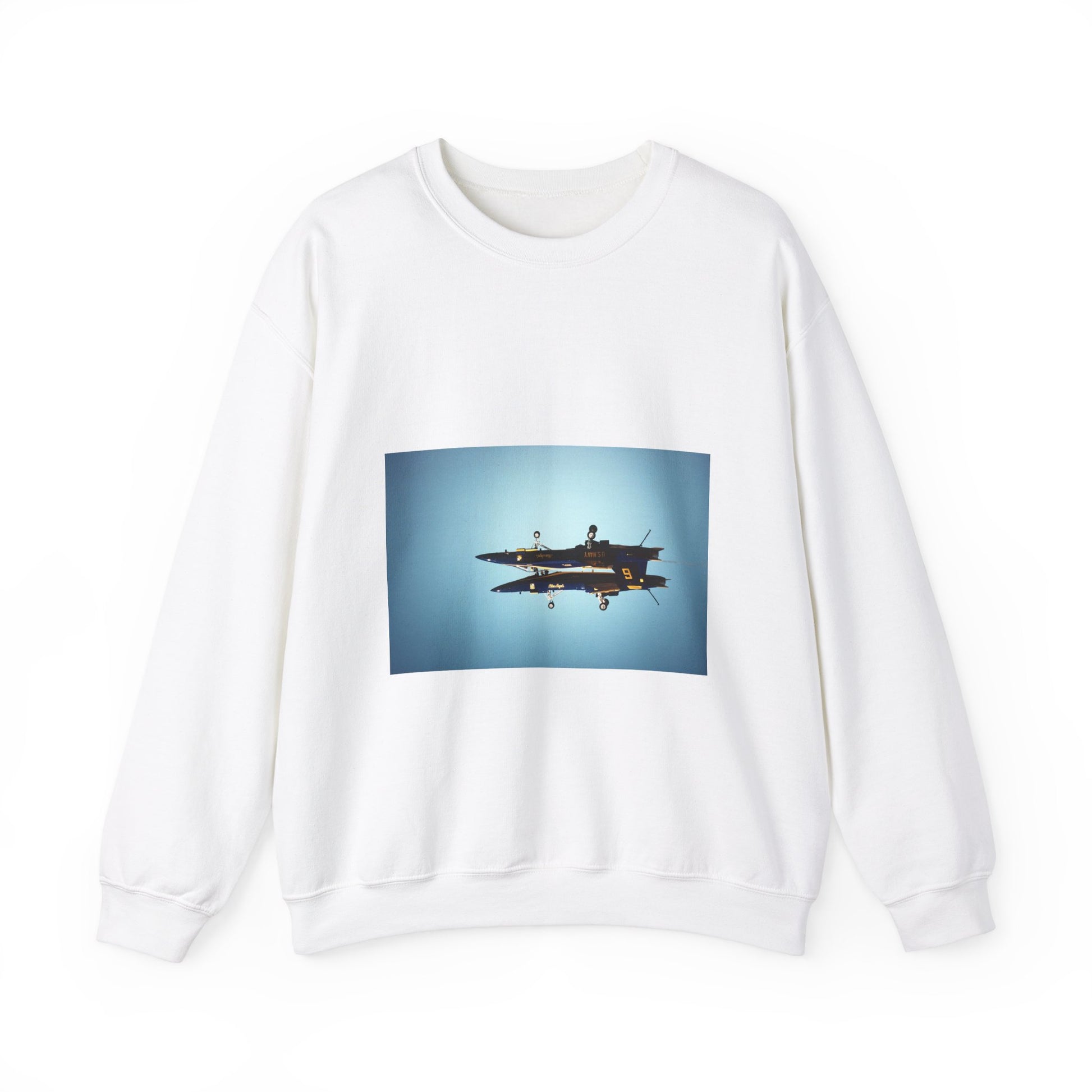Two F/A-18A Hornet aircraft of the Blue Angels Flight Demonstration Squadron execute the Fortus maneuver during an air show White Heavy Blend Adult Crew Neck SweatShirt