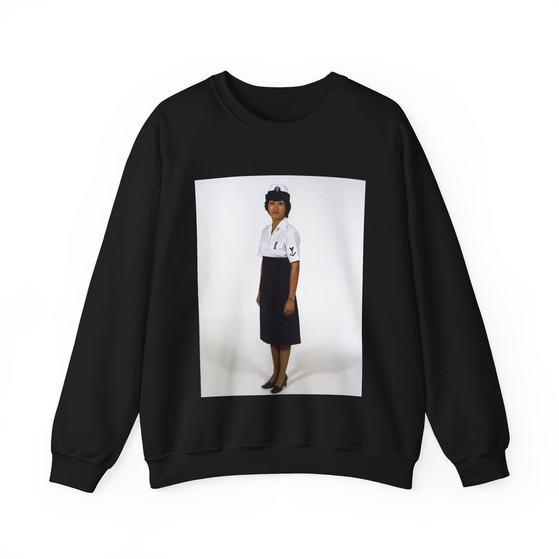 Uniform: Tropical dinner dress blue, Navy enlisted women, ranks E-1 through E-6 Black Heavy Blend Adult Crew Neck SweatShirt
