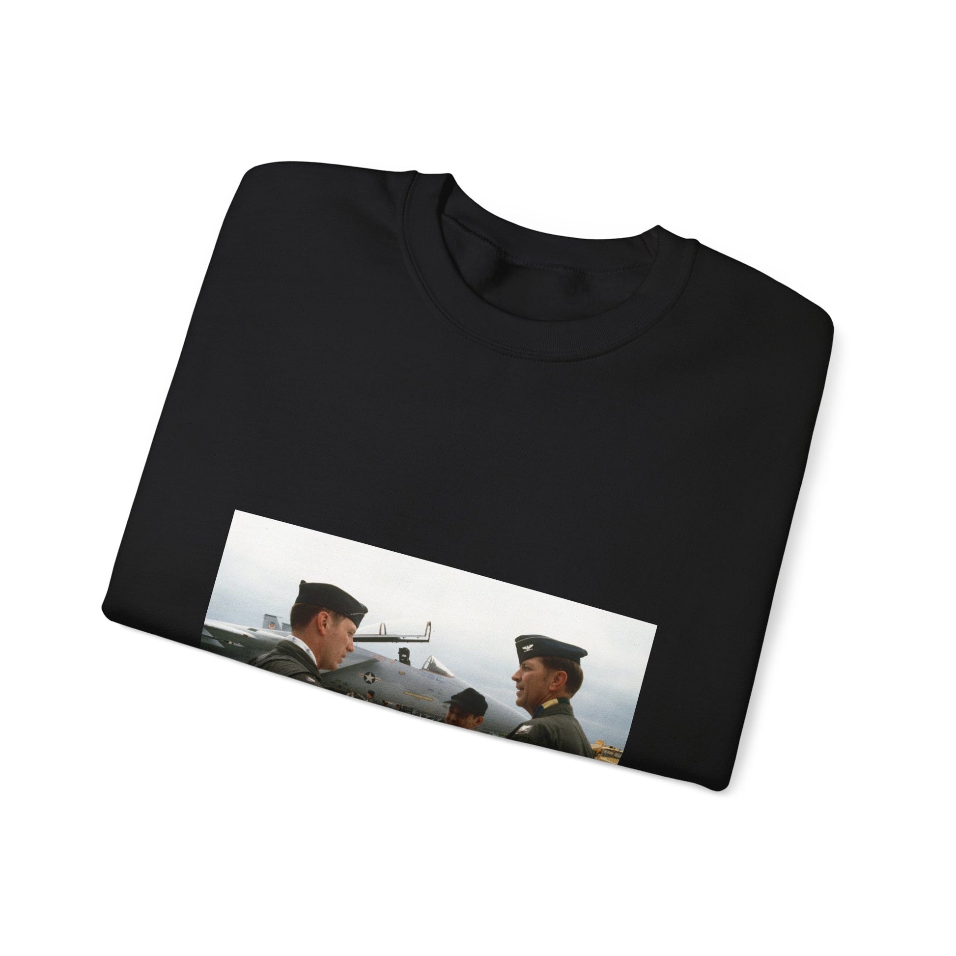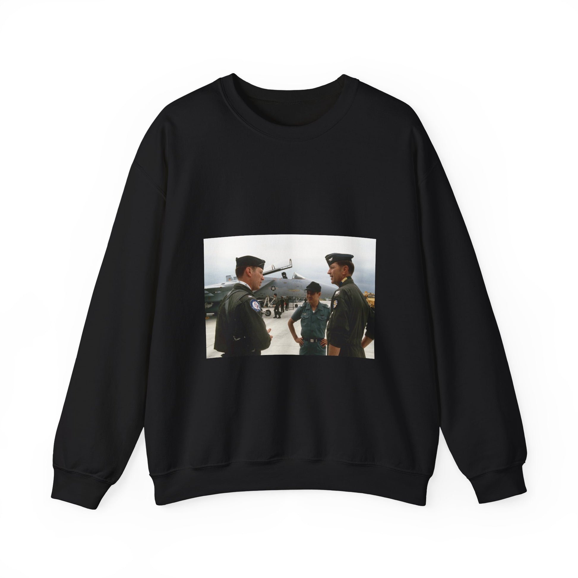 Upon his arrival, LTC Tom Barber (left), is greeted by Exercise Cope North '81-3 directors, COL George Peacock and Japanese Air SelF Defense Force COL V. Nomura Black Heavy Blend Adult Crew Neck SweatShirt
