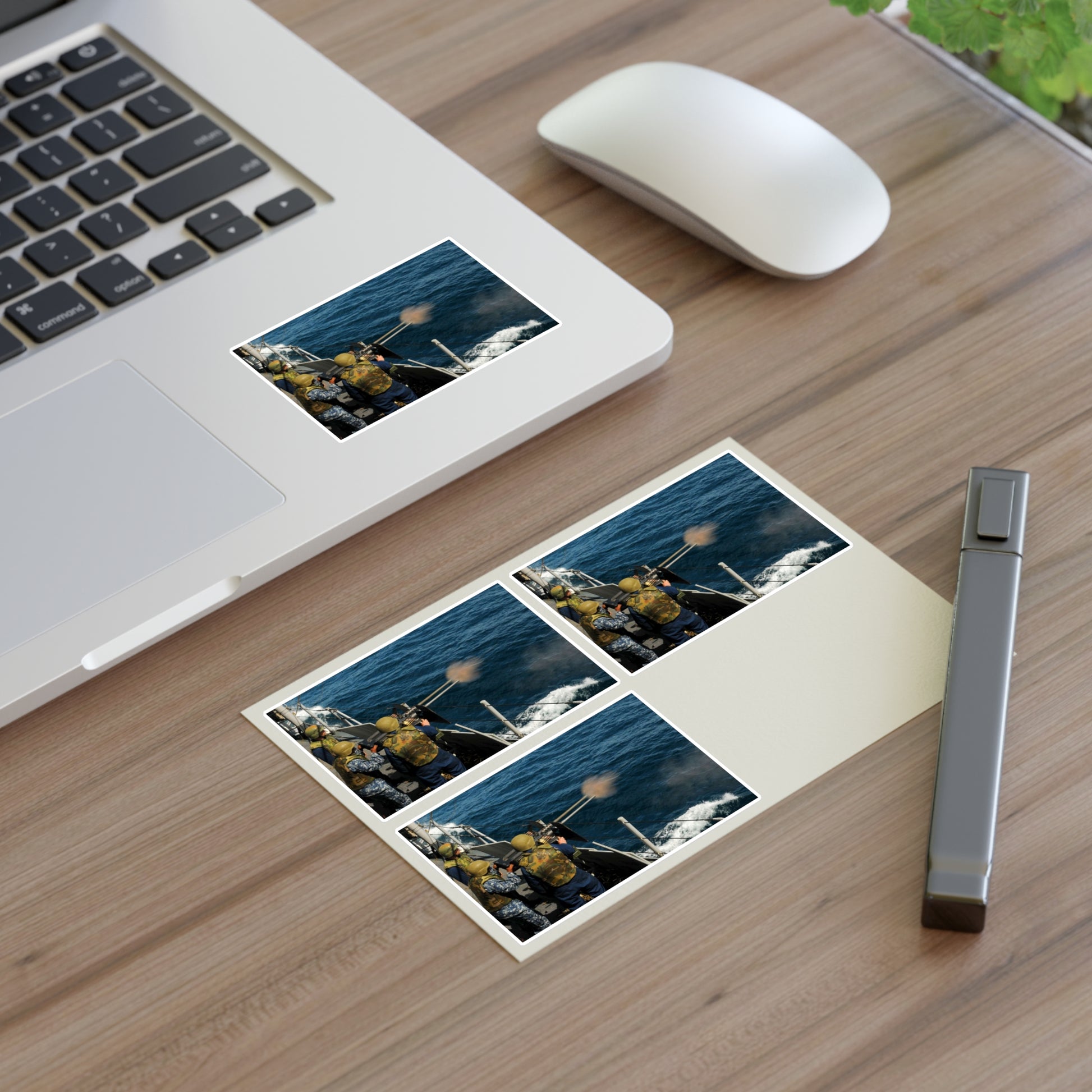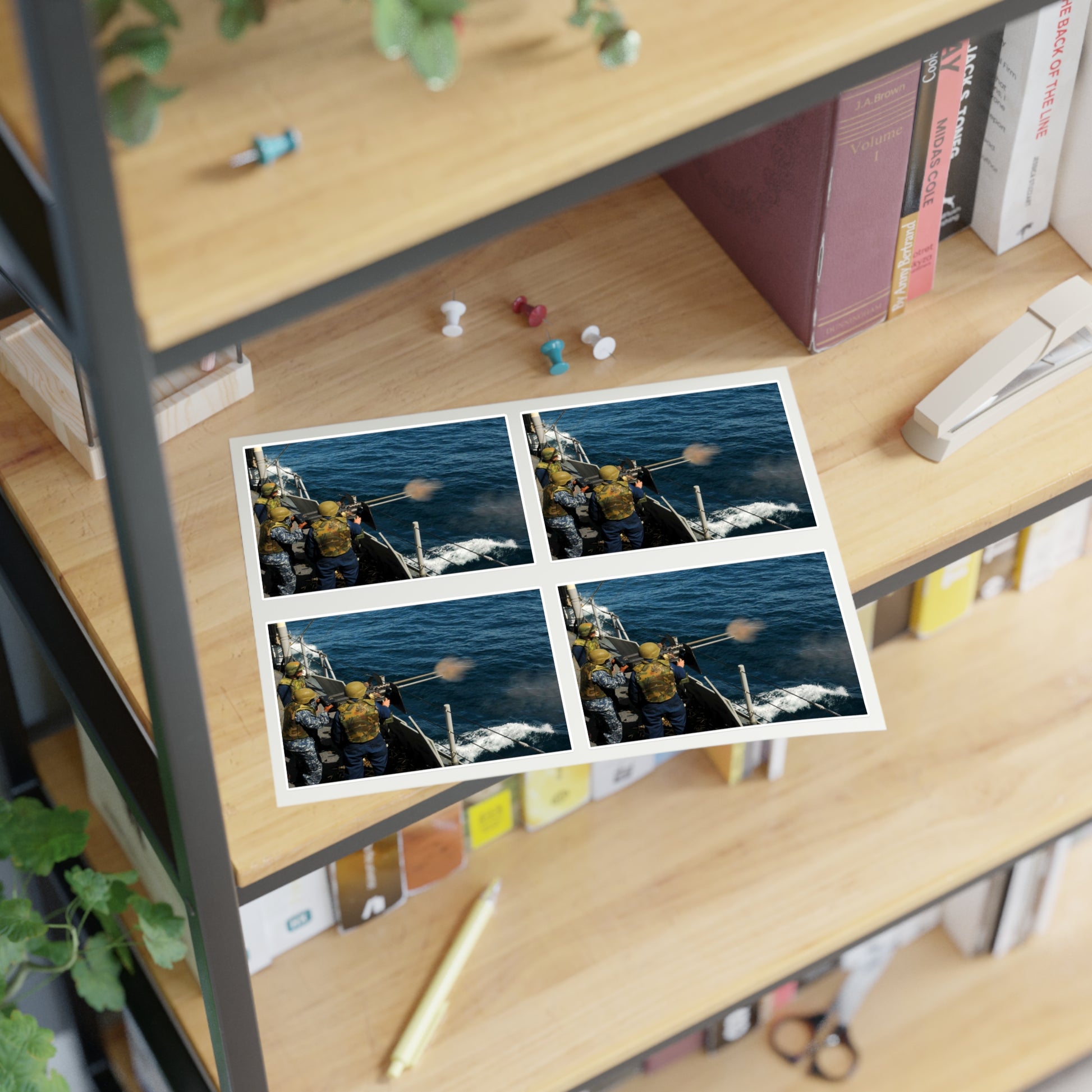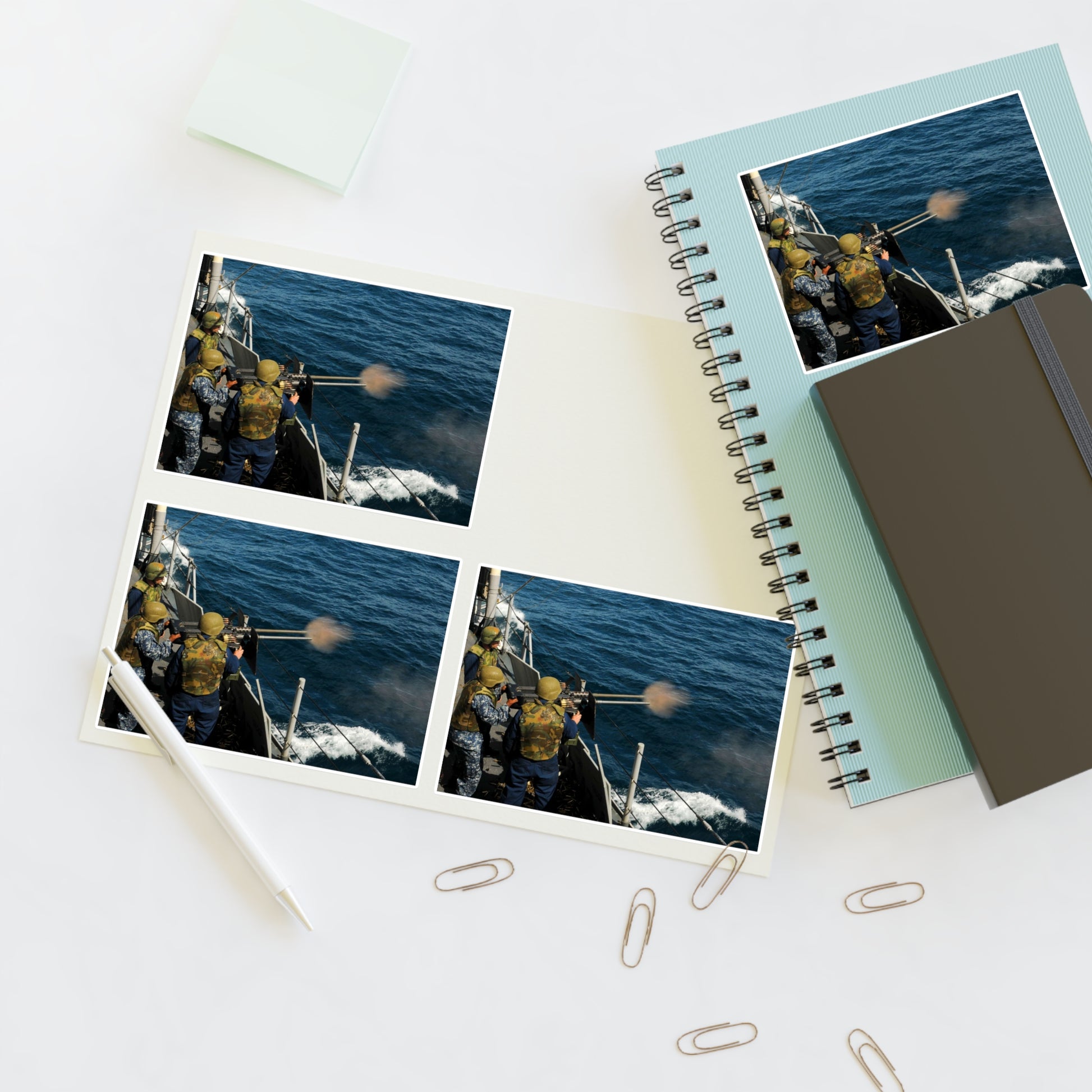 US Navy 110514-N-YM590-214 Gunner's Mate 2nd Class Charles H. Talbert fires a .50-caliber machine gun during a crew-served weapons certification ex Laminated UV Protective Vinyl Stickers