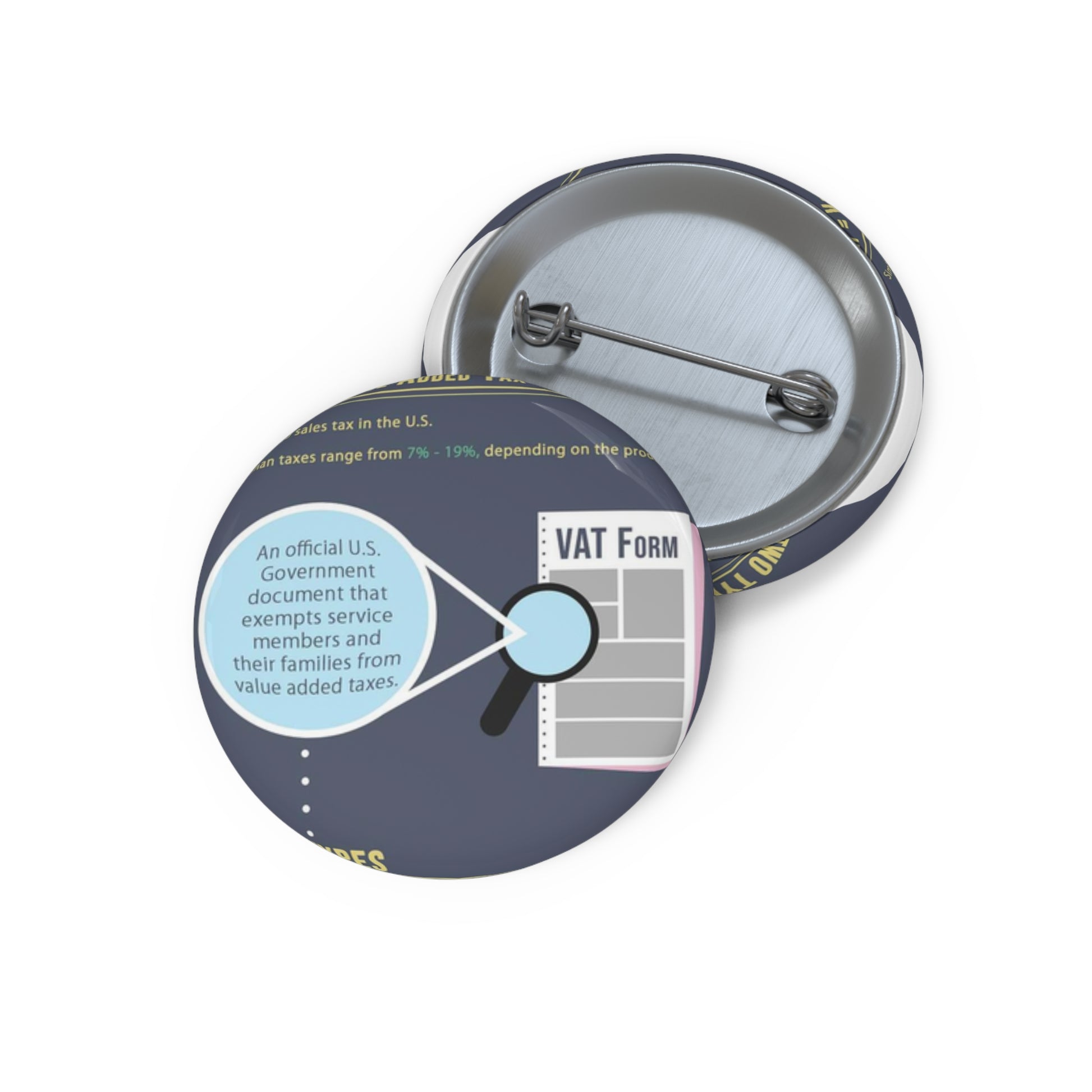 What is VAT? - A poster with a lot of different things on it Pin Buttons with Crisp Design