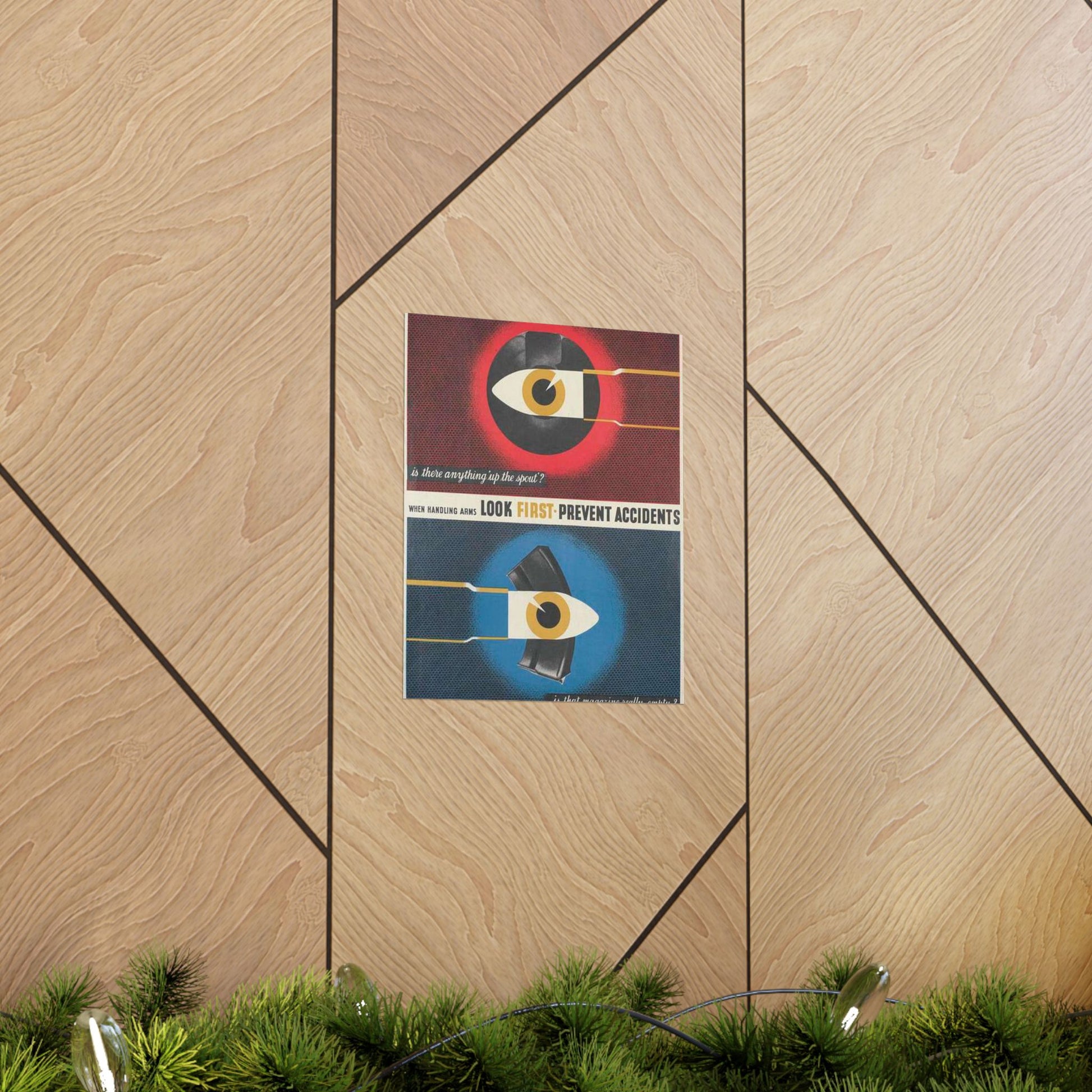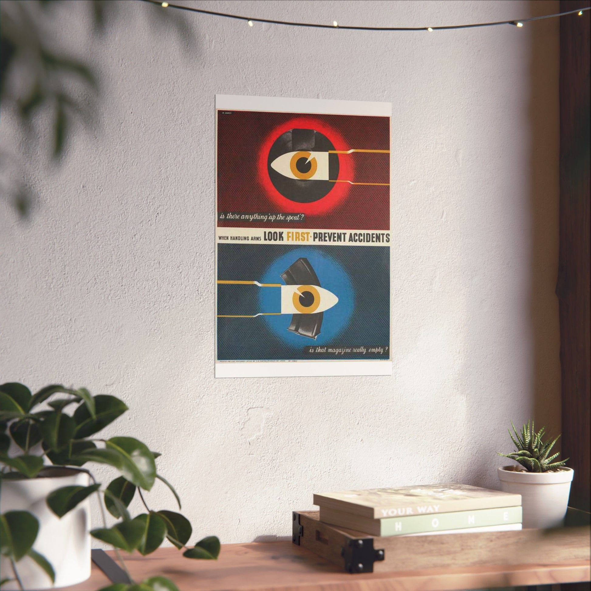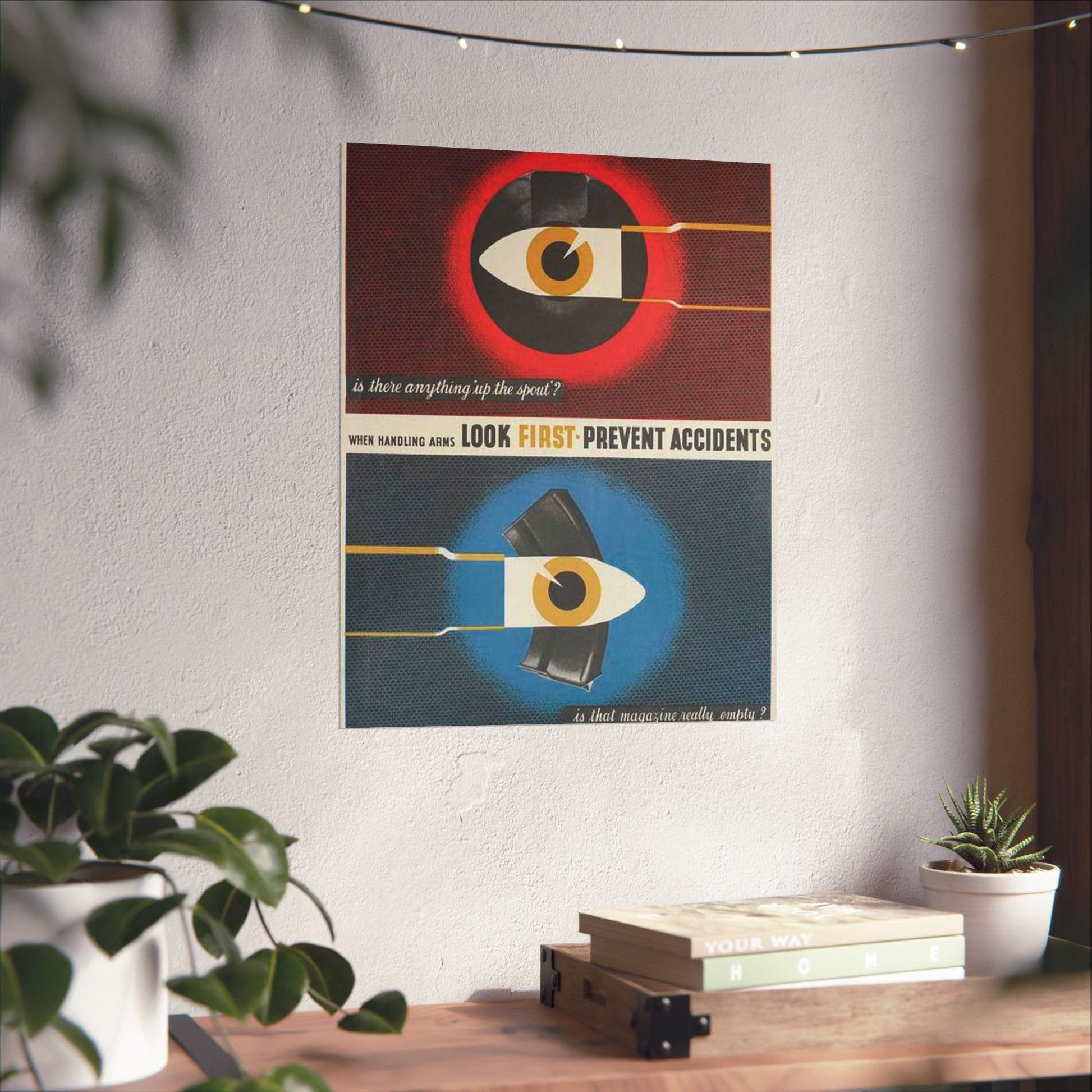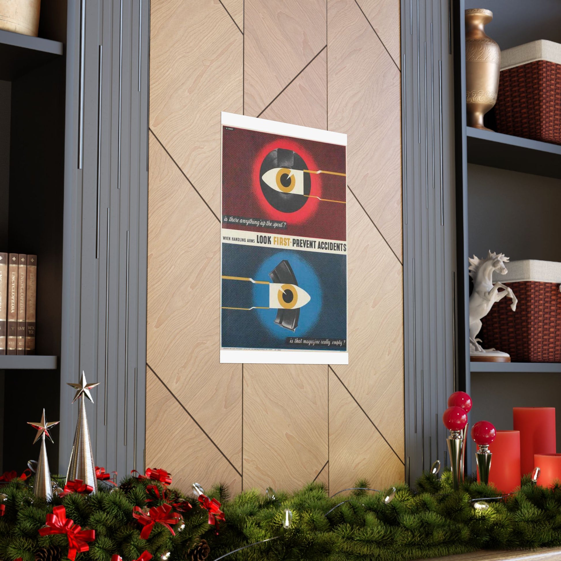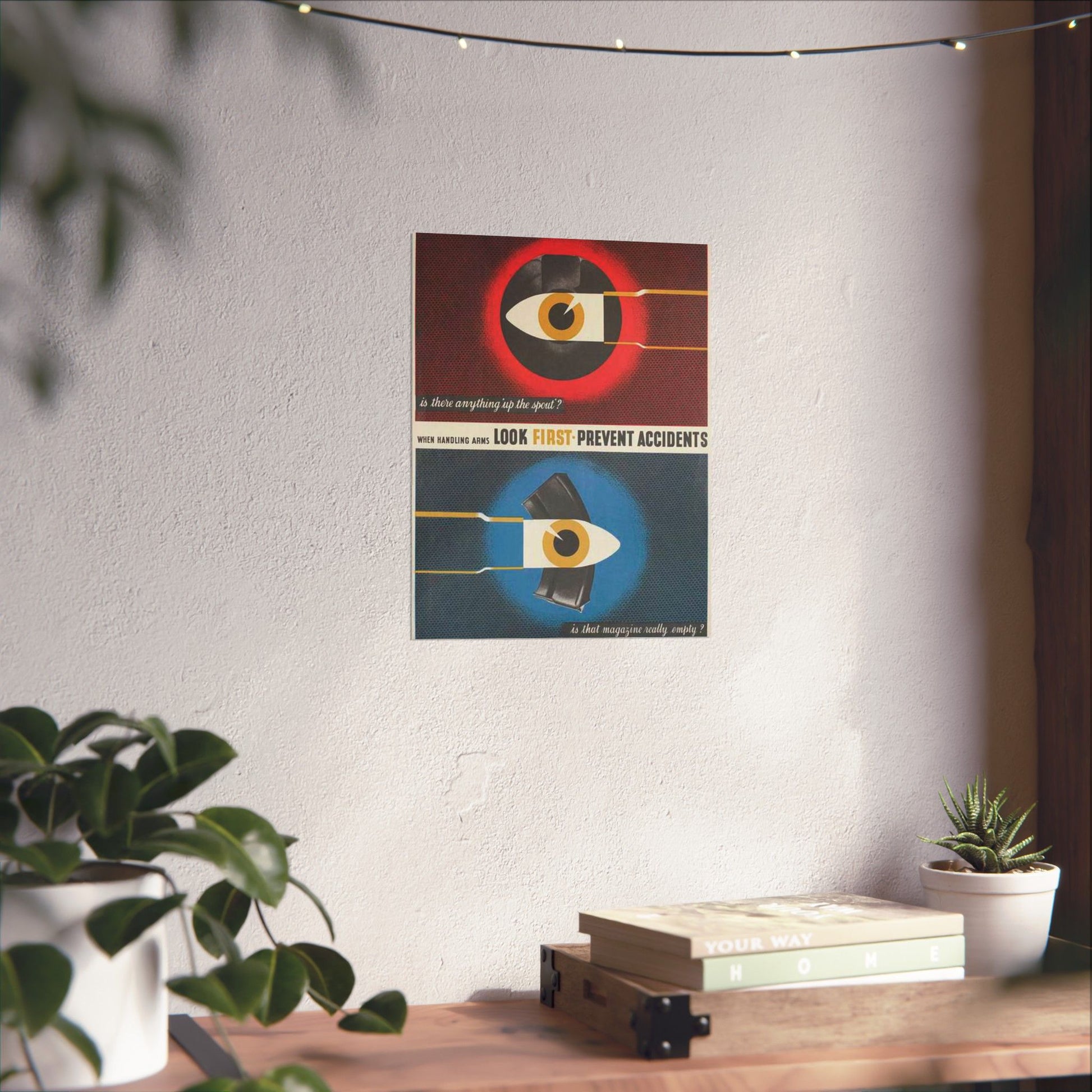 When Handling Arms Look First - Prevent Accidents Art.IWMPST2895 High Quality Matte Wall Art Poster for Home, Office, Classroom