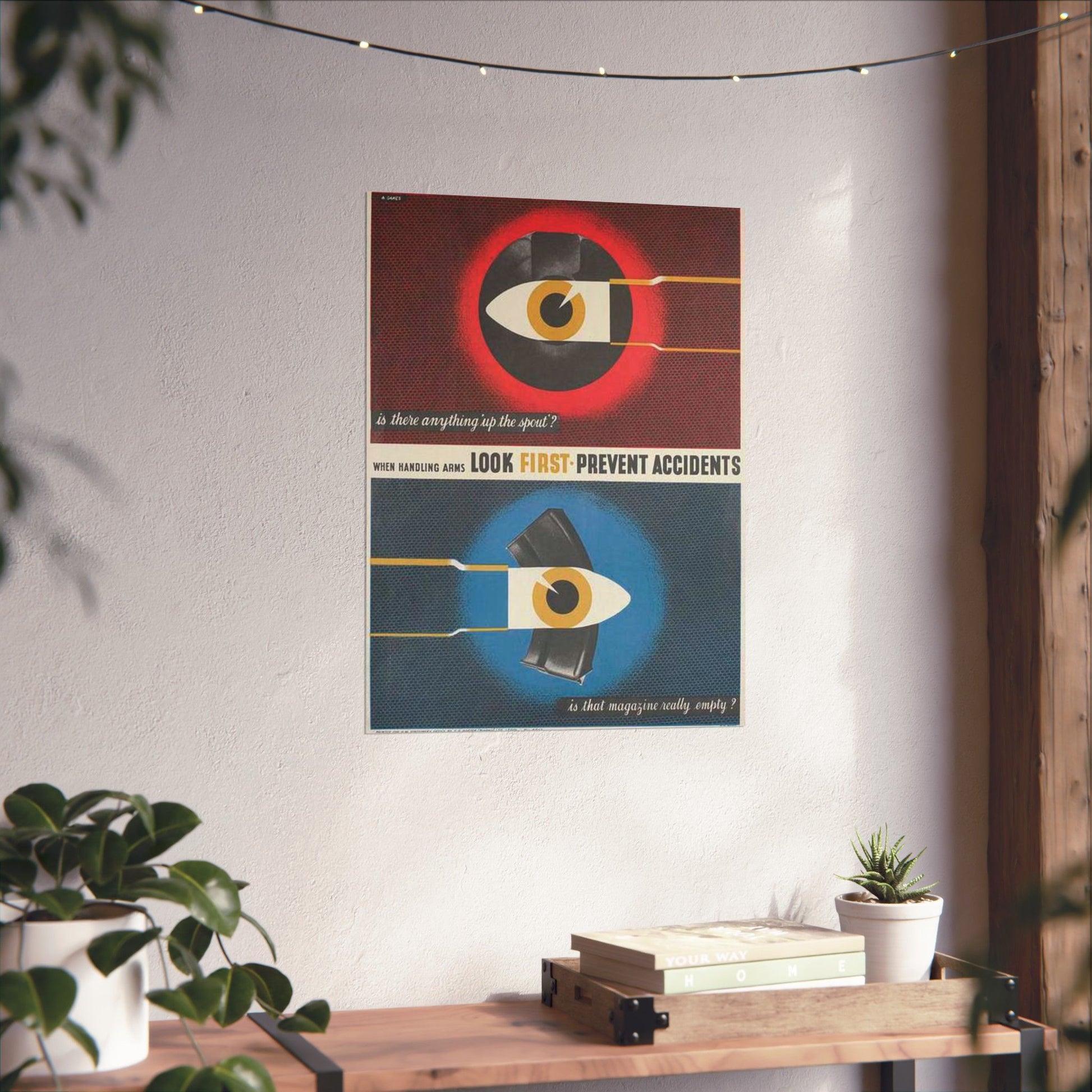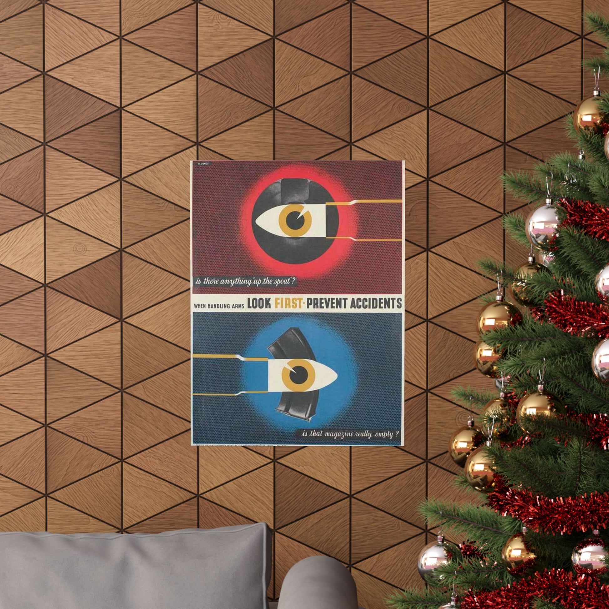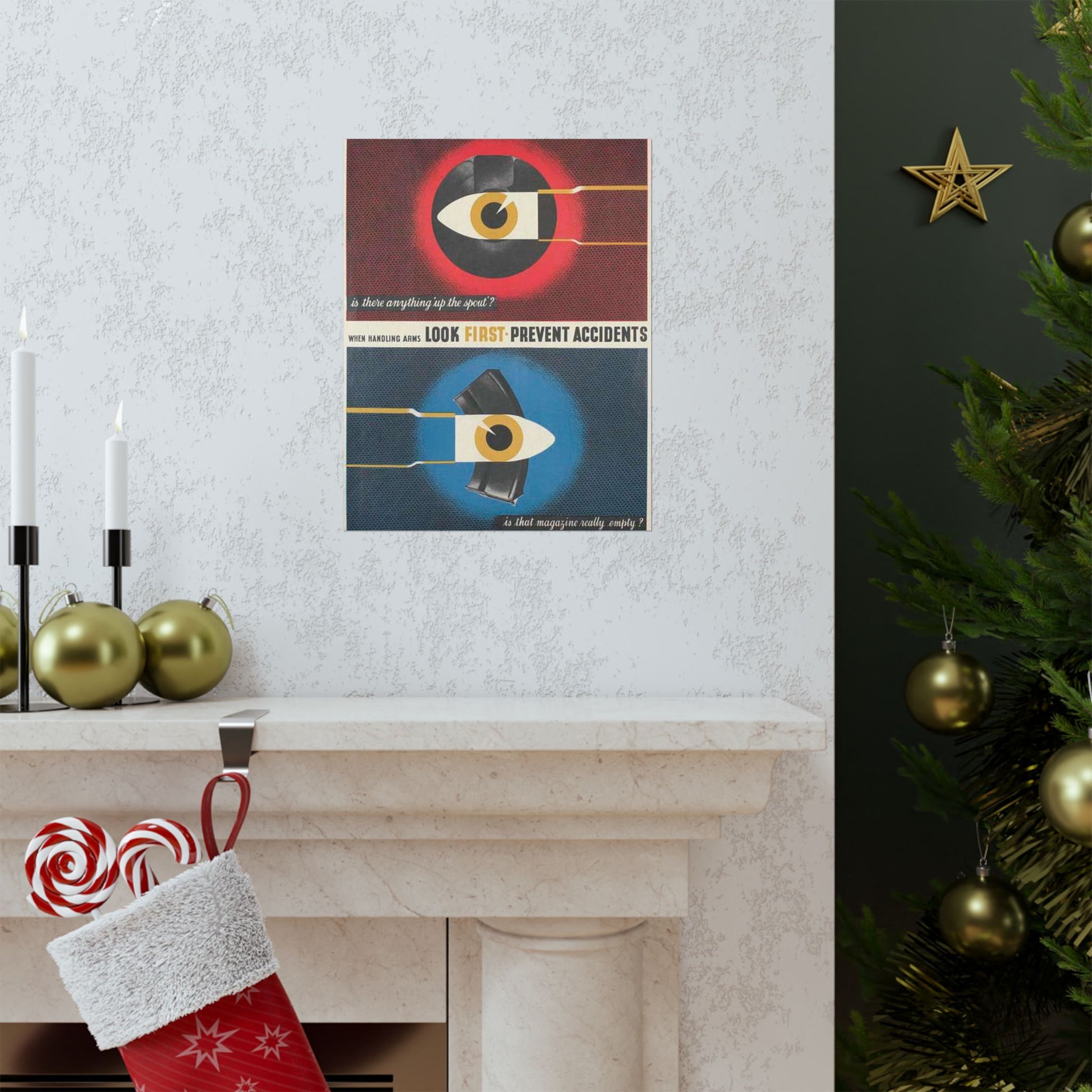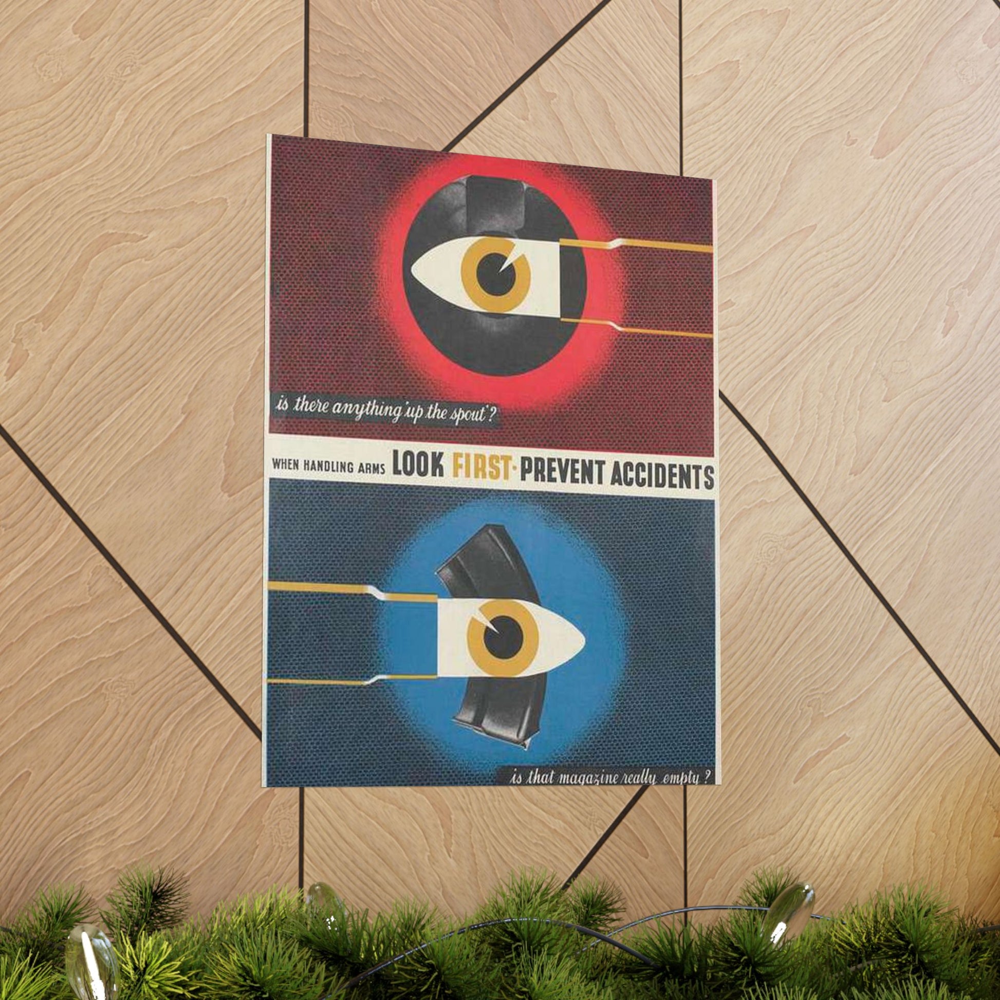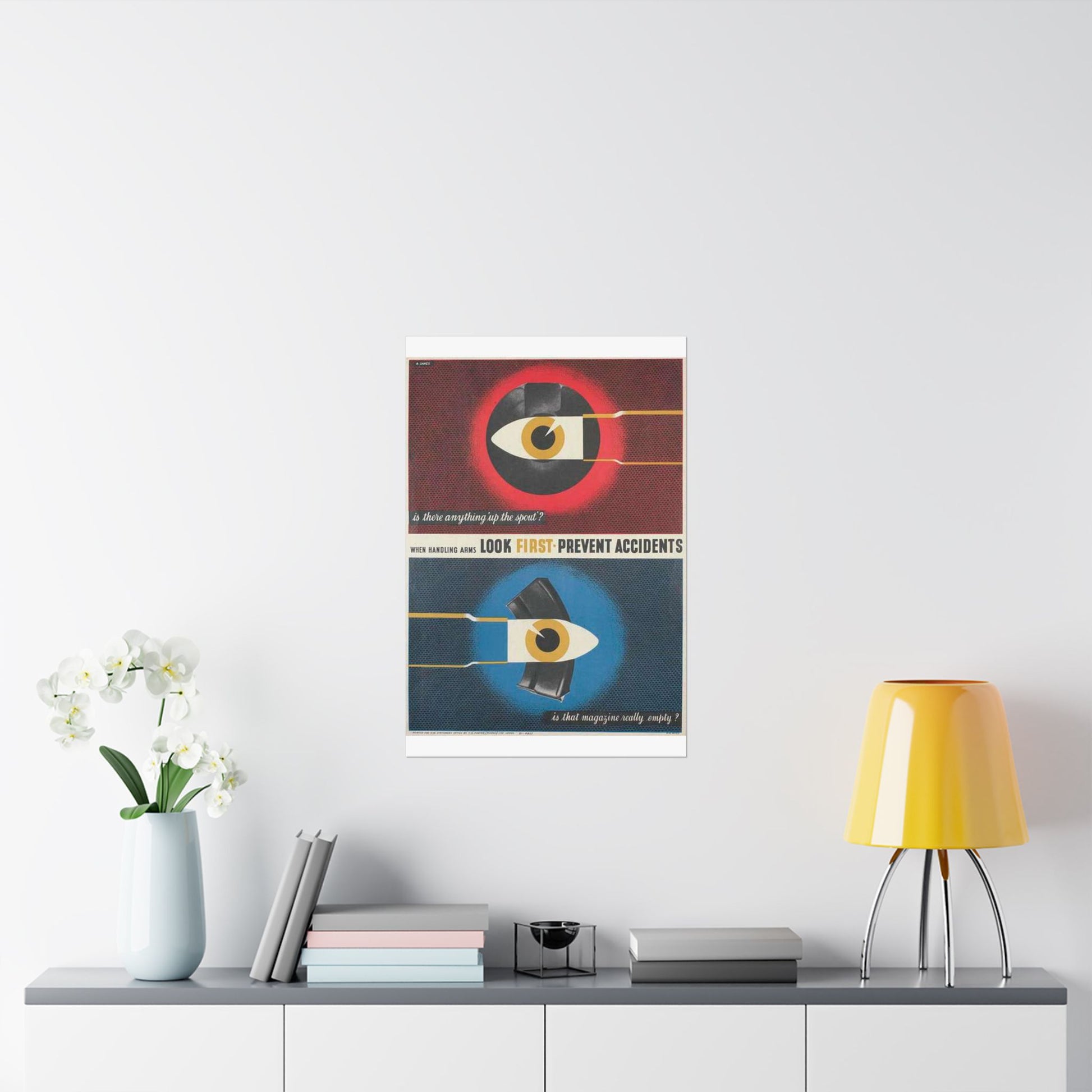 When Handling Arms Look First - Prevent Accidents Art.IWMPST2895 High Quality Matte Wall Art Poster for Home, Office, Classroom